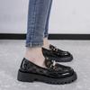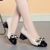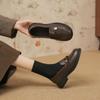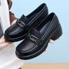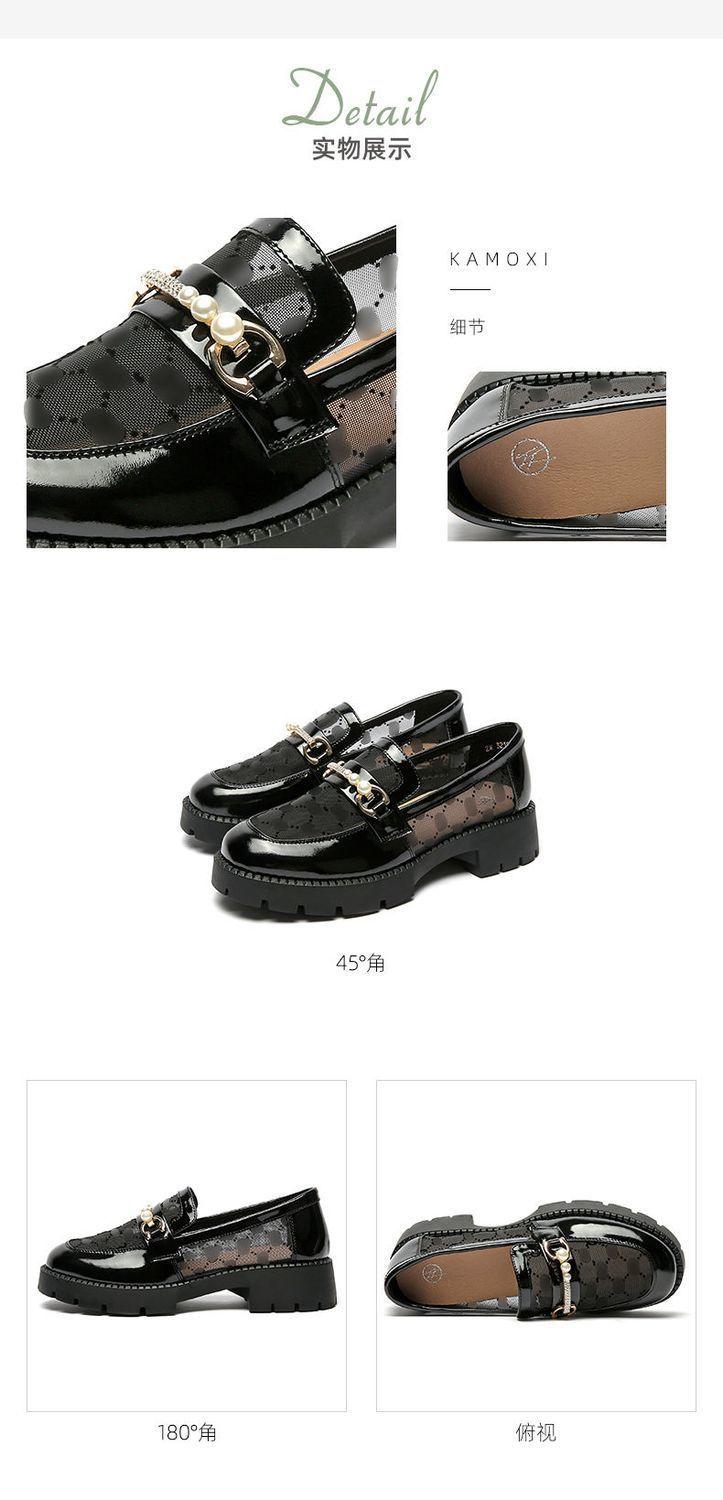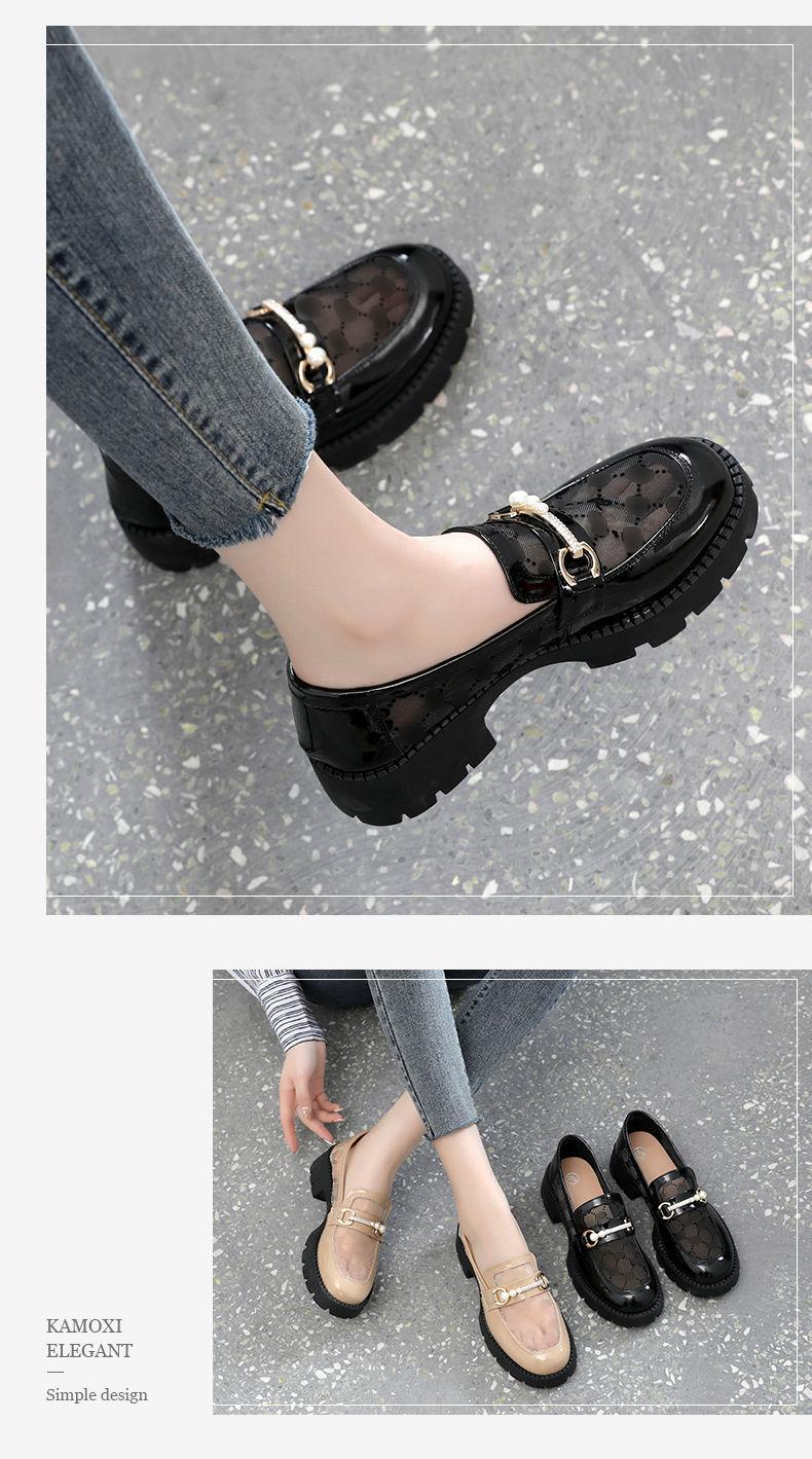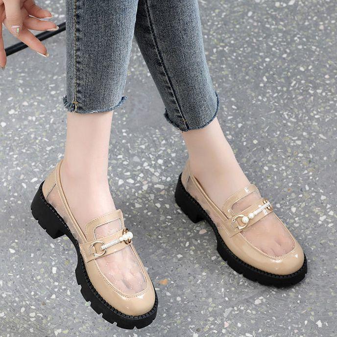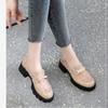 Zapatos de una sola capa para mujer, otoño 2024, nuevos mocasines de punta redonda versátiles de tacón grueso con malla hueca, zapatos pequeños de cuero para mujer