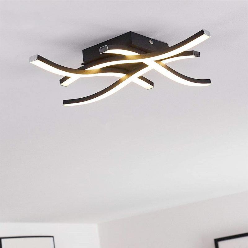 Black cross-shaped wave three-head LED smart three-color dimming