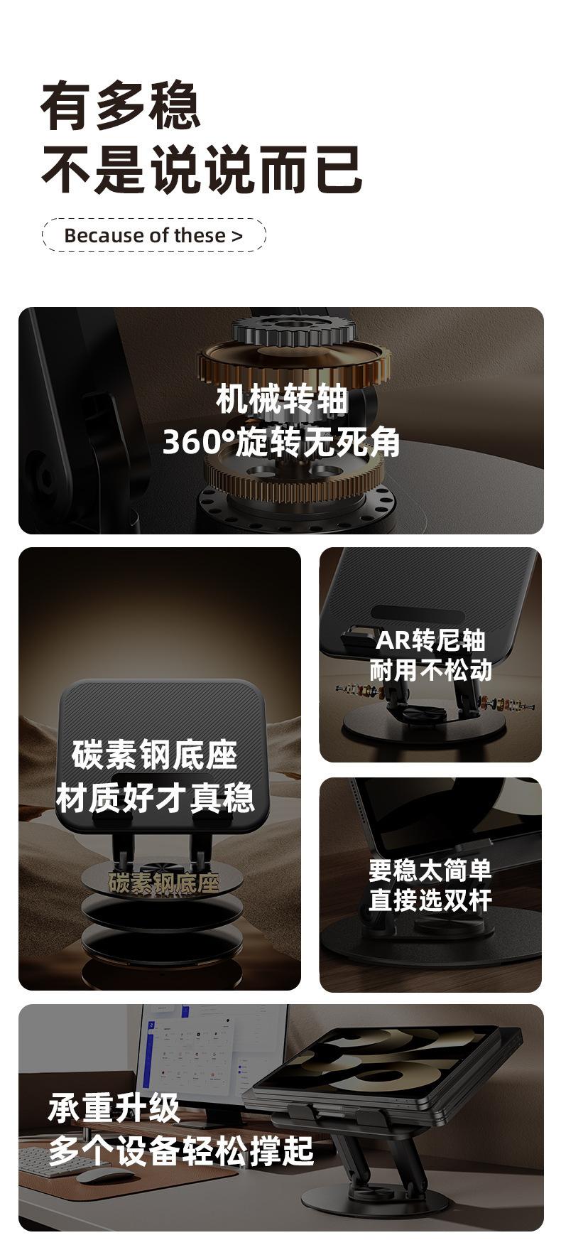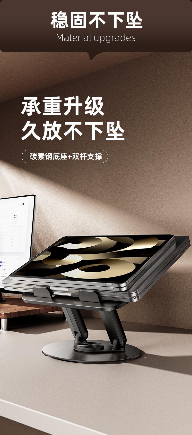 Soporte de Escritorio Metálico Giratorio de Doble Varilla para Tablet, Laptop, Almacenamiento Plegable, Ajustable Multiángulo