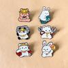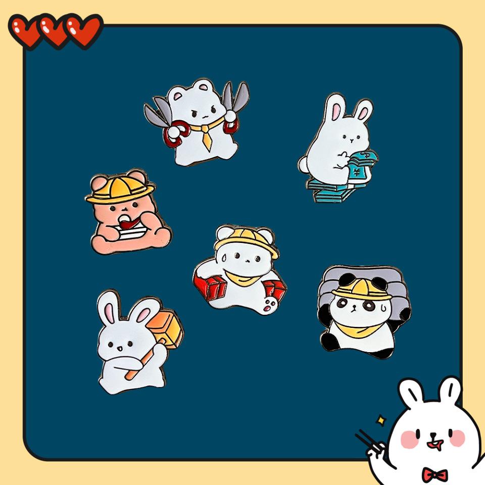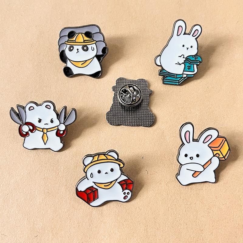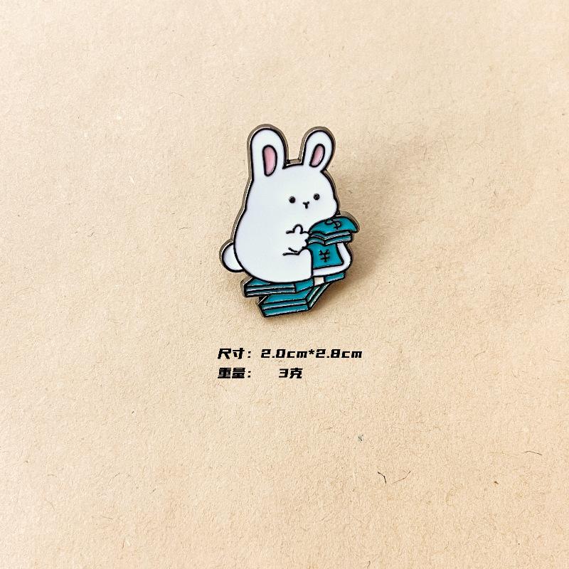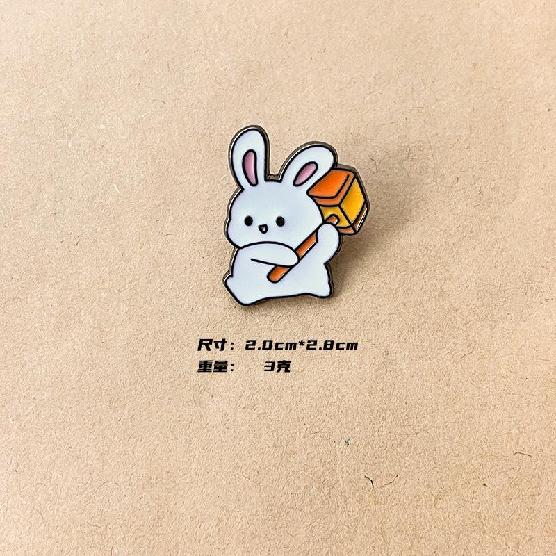 Lindo broche de conejo de dibujos animados para hombres y mujeres, pequeño conejo blanco, insignia de metal, bolso de estudiante, embalaje, joyería, pin, accesorios