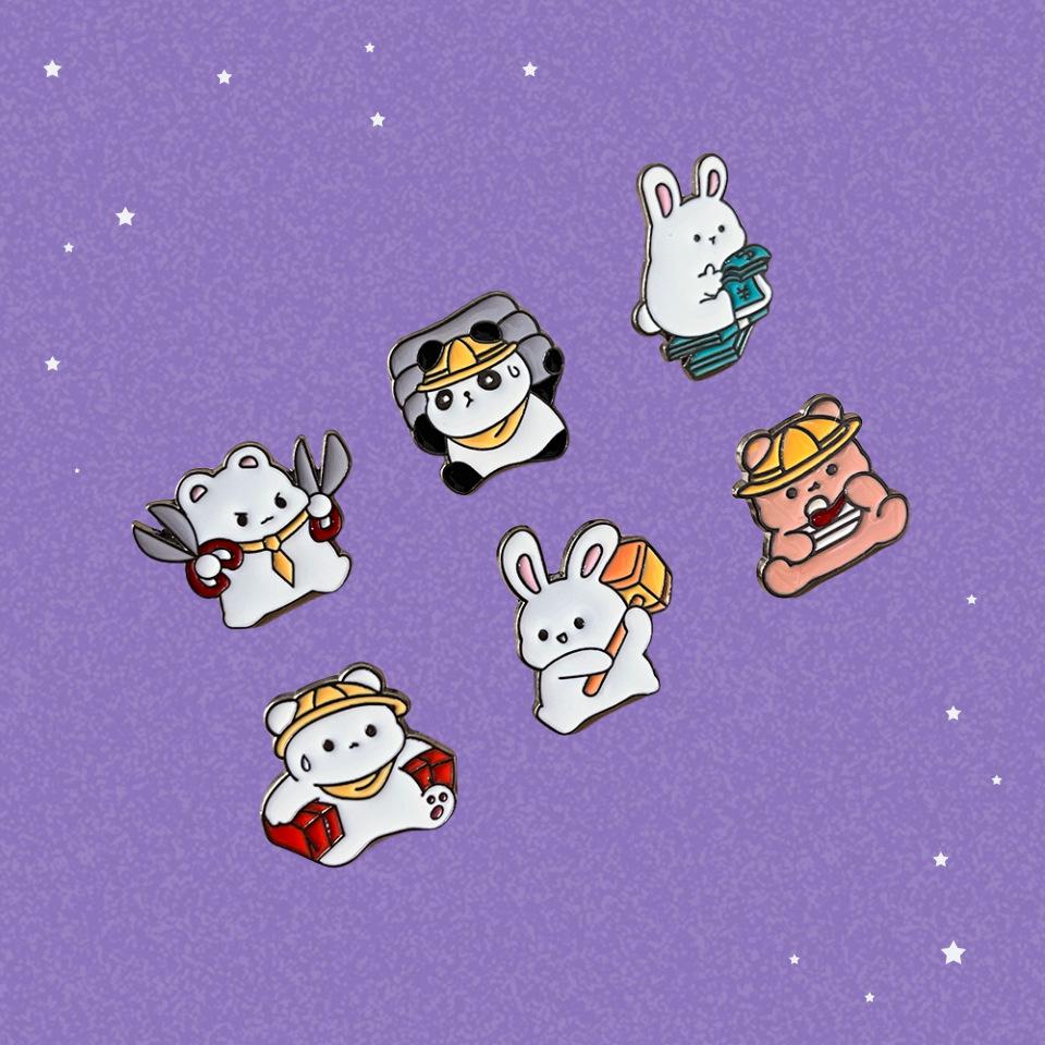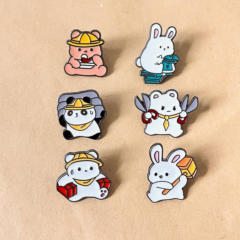 1# hammer rabbit, 2# brick-moving bear, 3# scissors rabbit, 4# Bear with lunch box, 5# Back cement panda, 6# c...