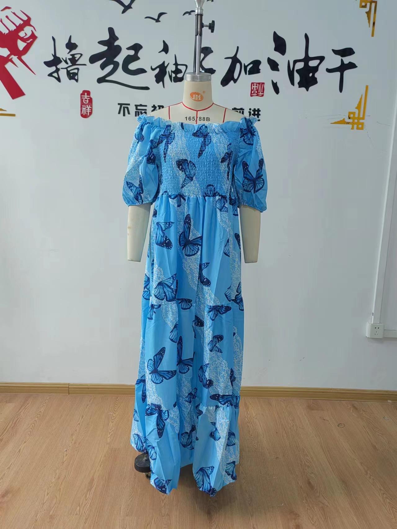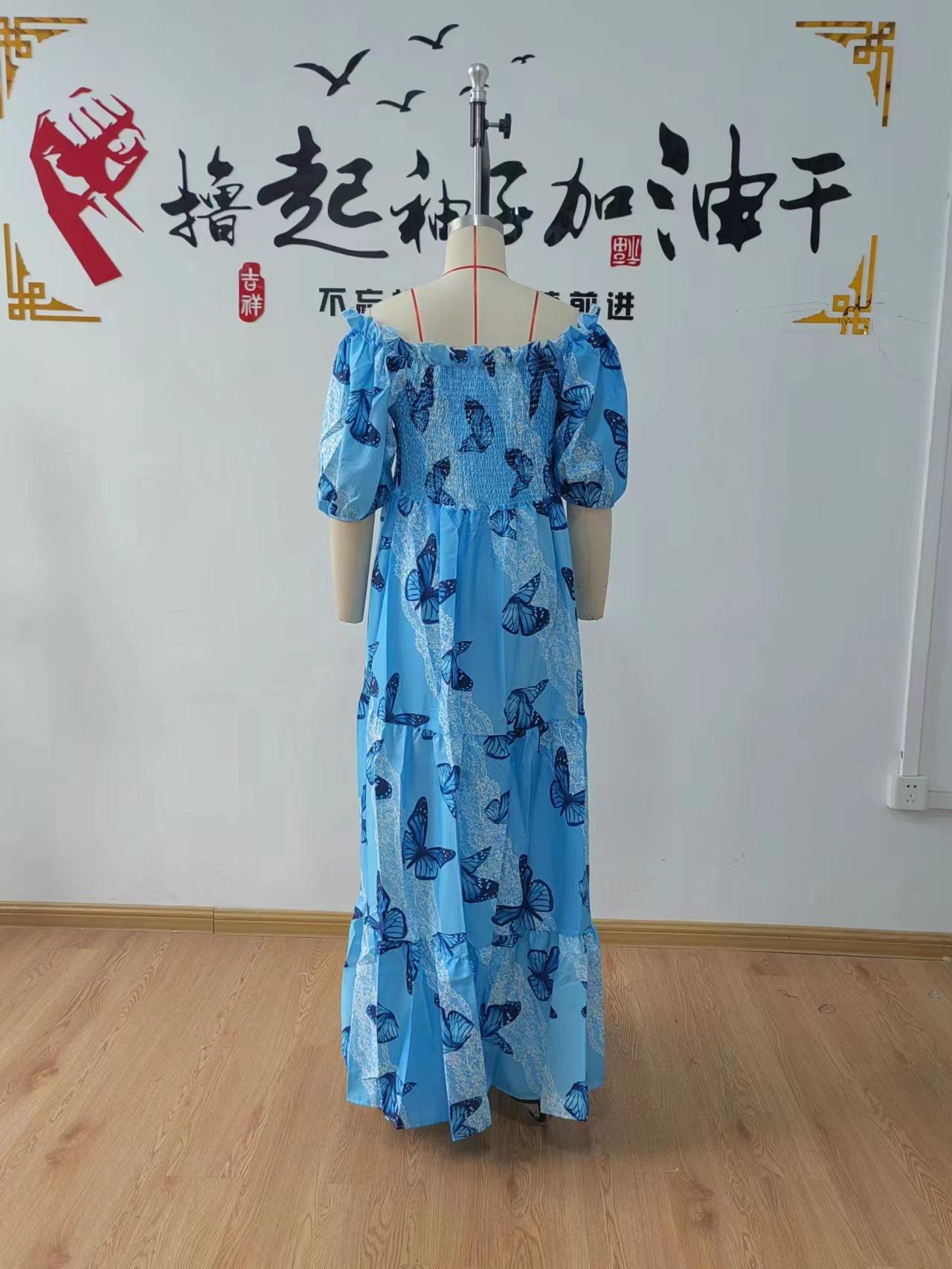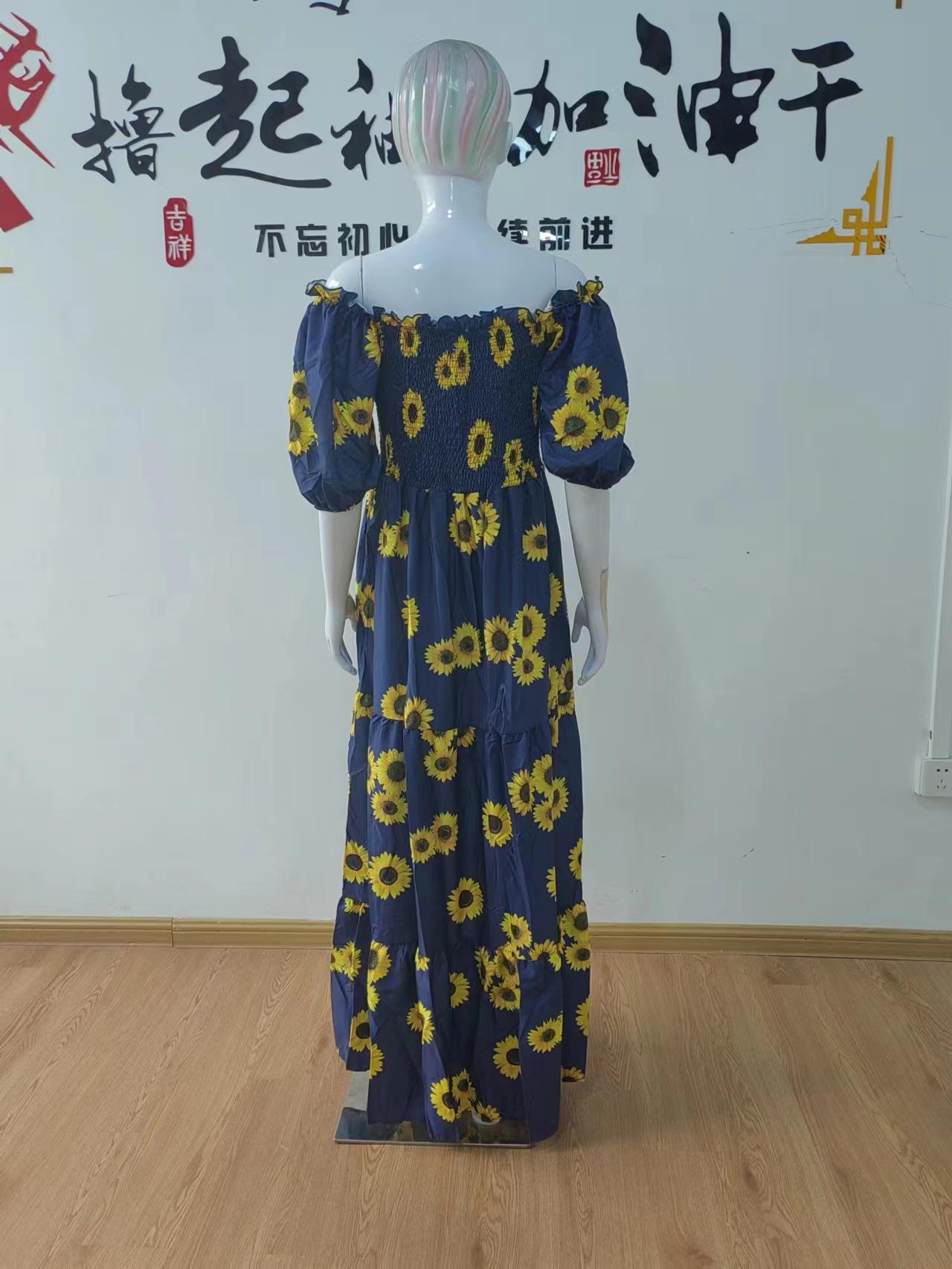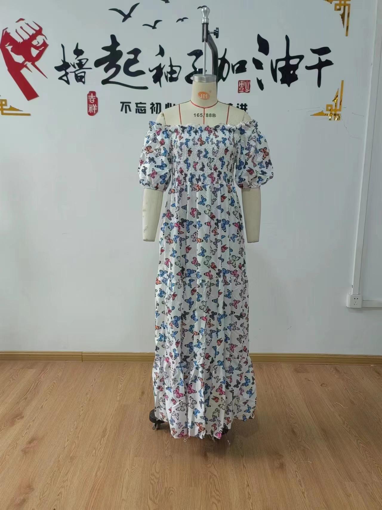 Vestido de mujer europeo y americano de primavera y verano 2025 con hombros descubiertos y estampado floral, falda de hadas larga