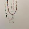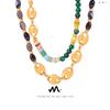 Collar largo con cuentas de cristal y piedra natural apiladas, estilo europeo y americano, cadena de lana, accesorios bohemios transfronterizos para mujer.