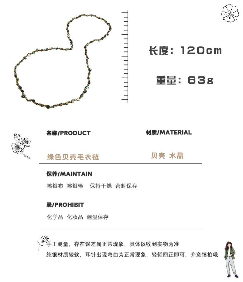Collar largo de lana con cuentas de cristal de concha verde, estilo bohemio de verano europeo y americano, estilo étnico, productos transfronterizos.