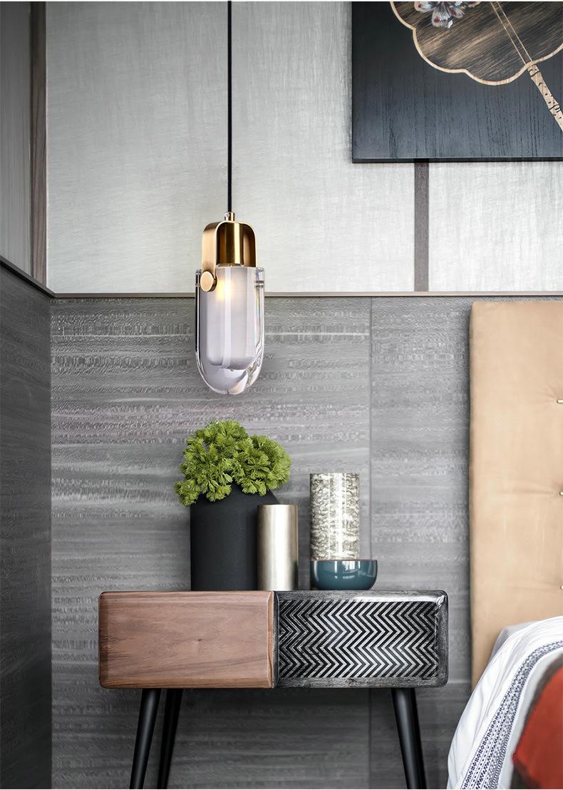 Lujo Ligero Minimalista Moderno Minimalista Pequeño Candelabro Dormitorio Lámpara de Noche Candelabro de Cable Largo Lámpara de Noche Lámparas de Cristal Todo Cobre
