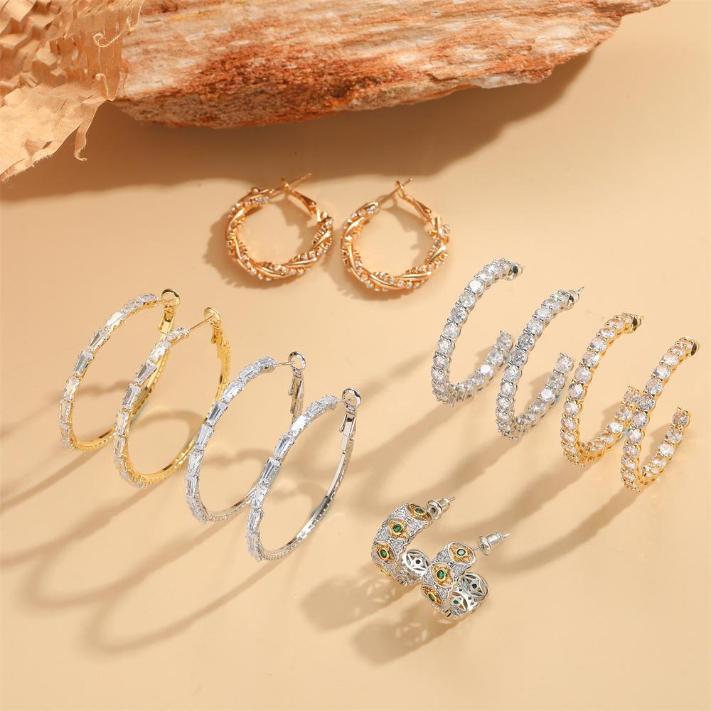 [Nombre del producto] Aretes de personalidad exagerados de tendencia superventas transfronterizos de cobre chapado en oro real de 14 quilates, versátiles y minimalistas