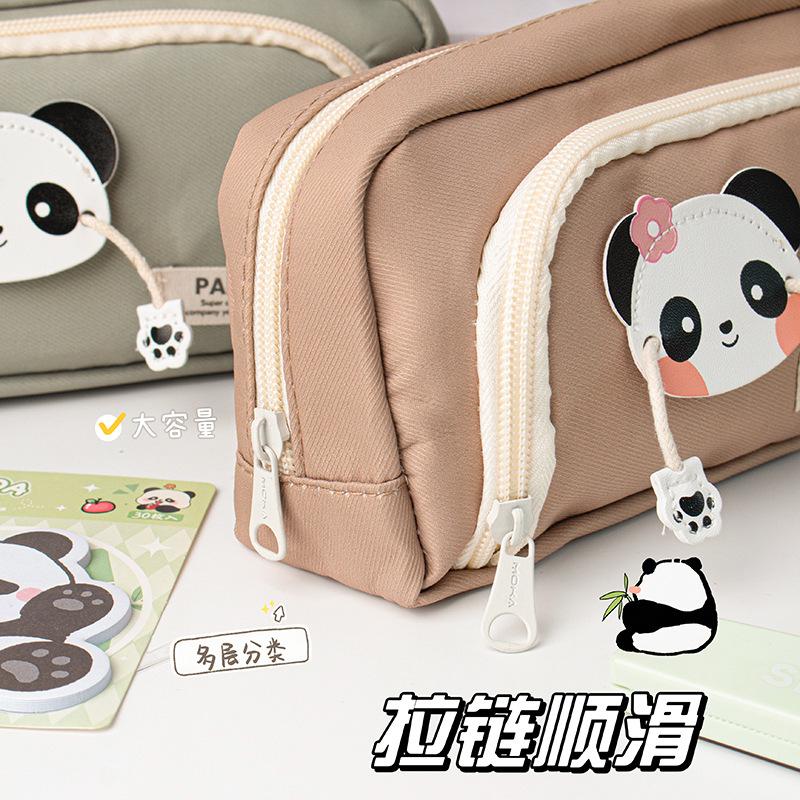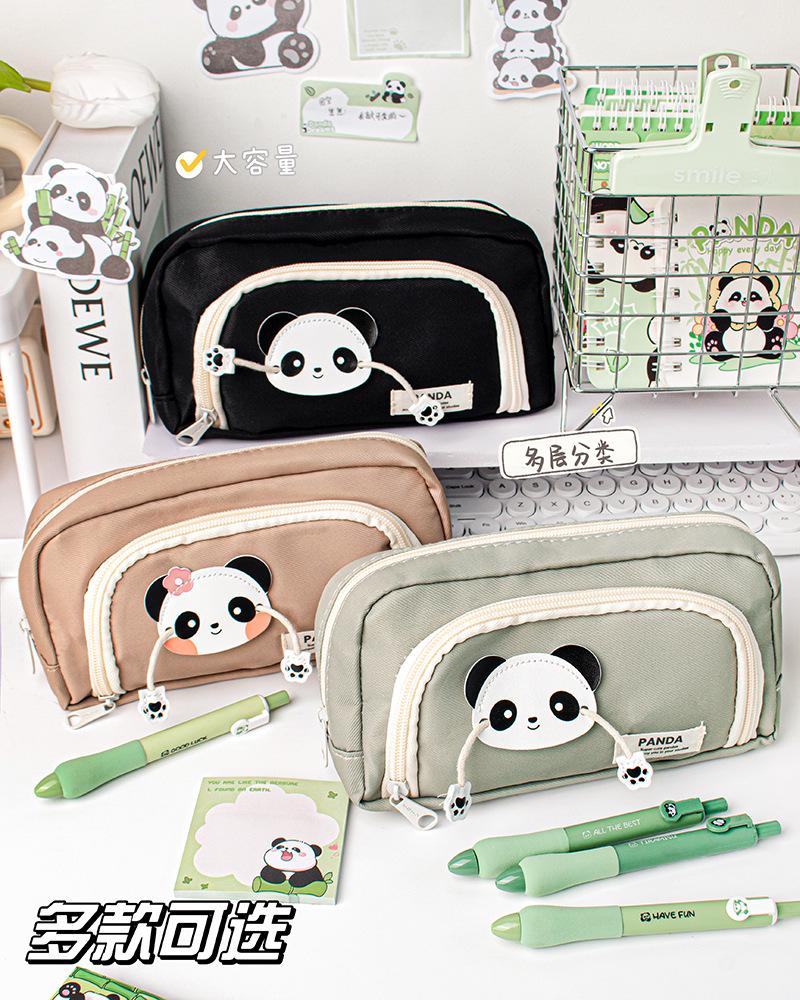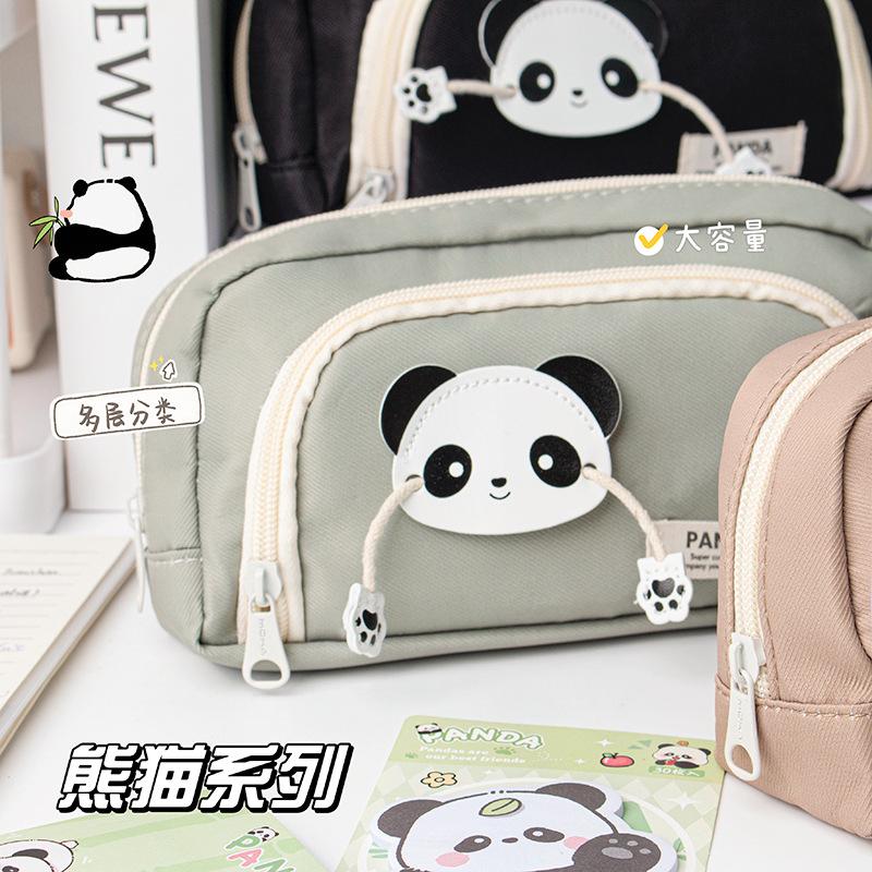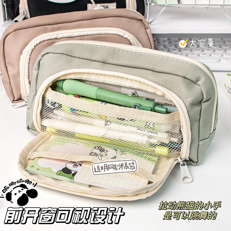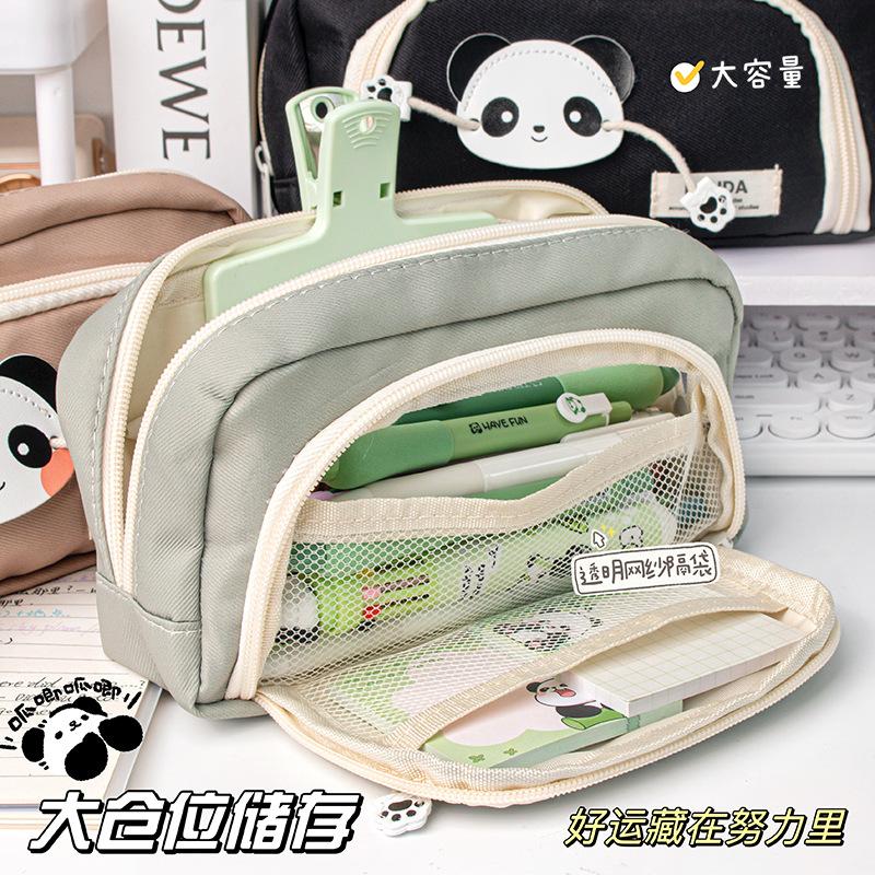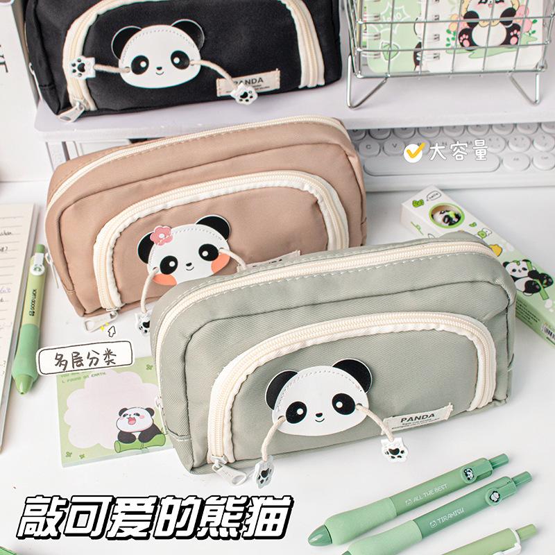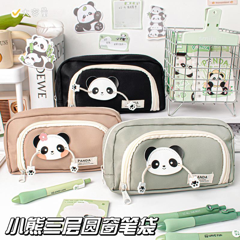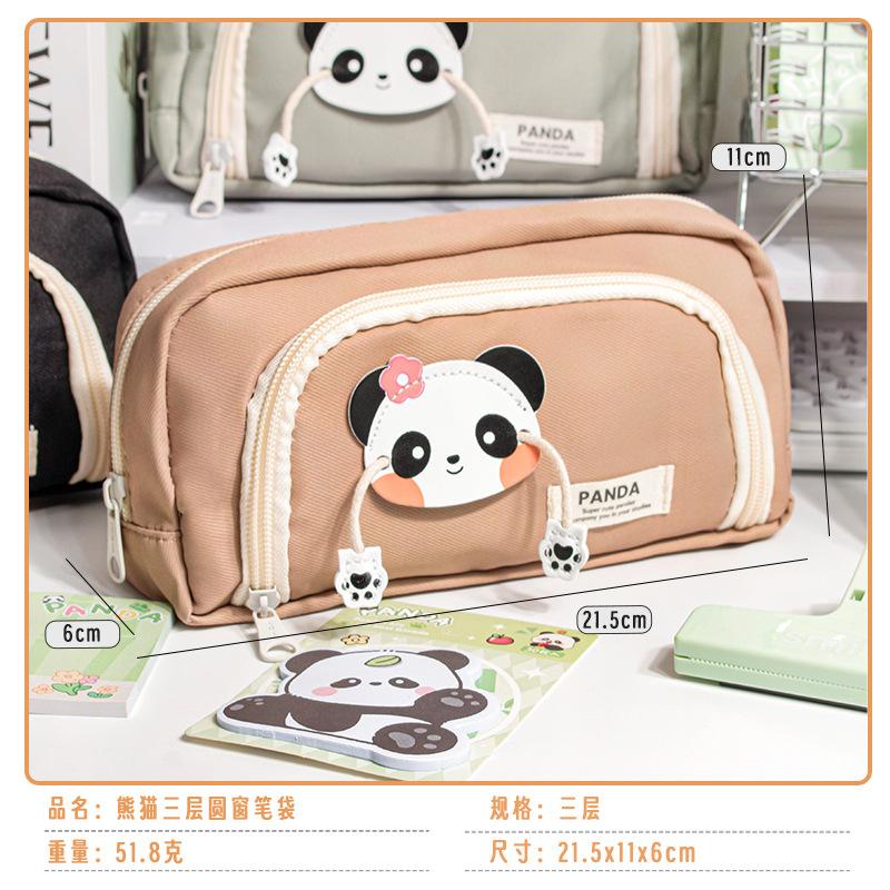 Lindo Estuche de Lápices Panda de Tres Capas con Ventana Redonda Estuche de Papelería de Alto Valor Estuche de Lápices de Almacenamiento para Estudiantes Estuche de Lápices de Dibujos Animados de Gran Capacidad