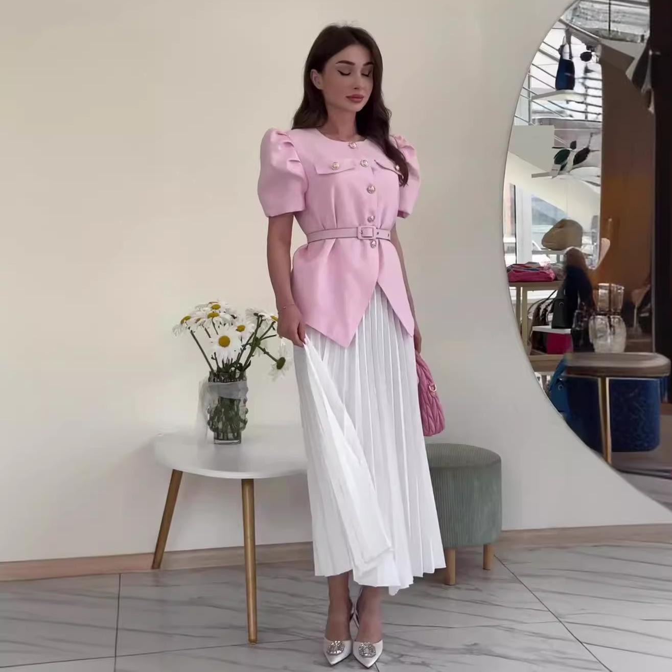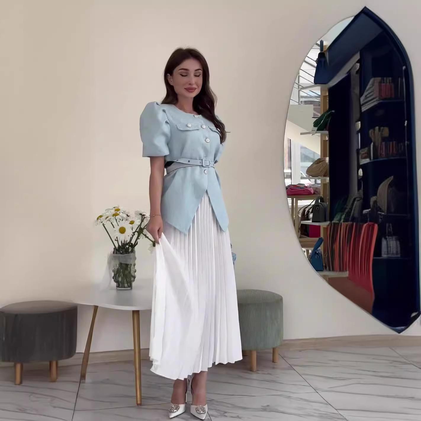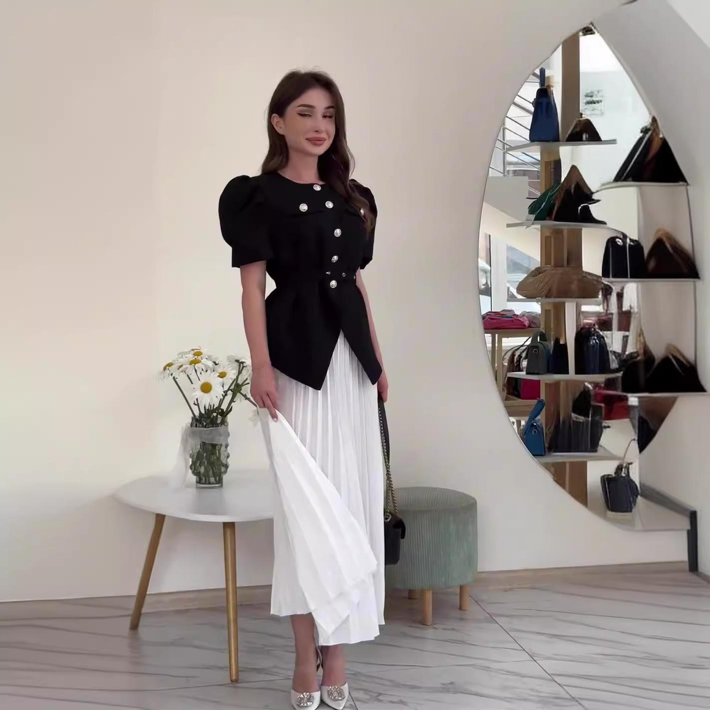 Verano 2024 Nuevo Europeo y Americano Transfronterizo Amazon Transfronterizo Socialité Estilo Chanel Elegante Top Joker Traje de falda