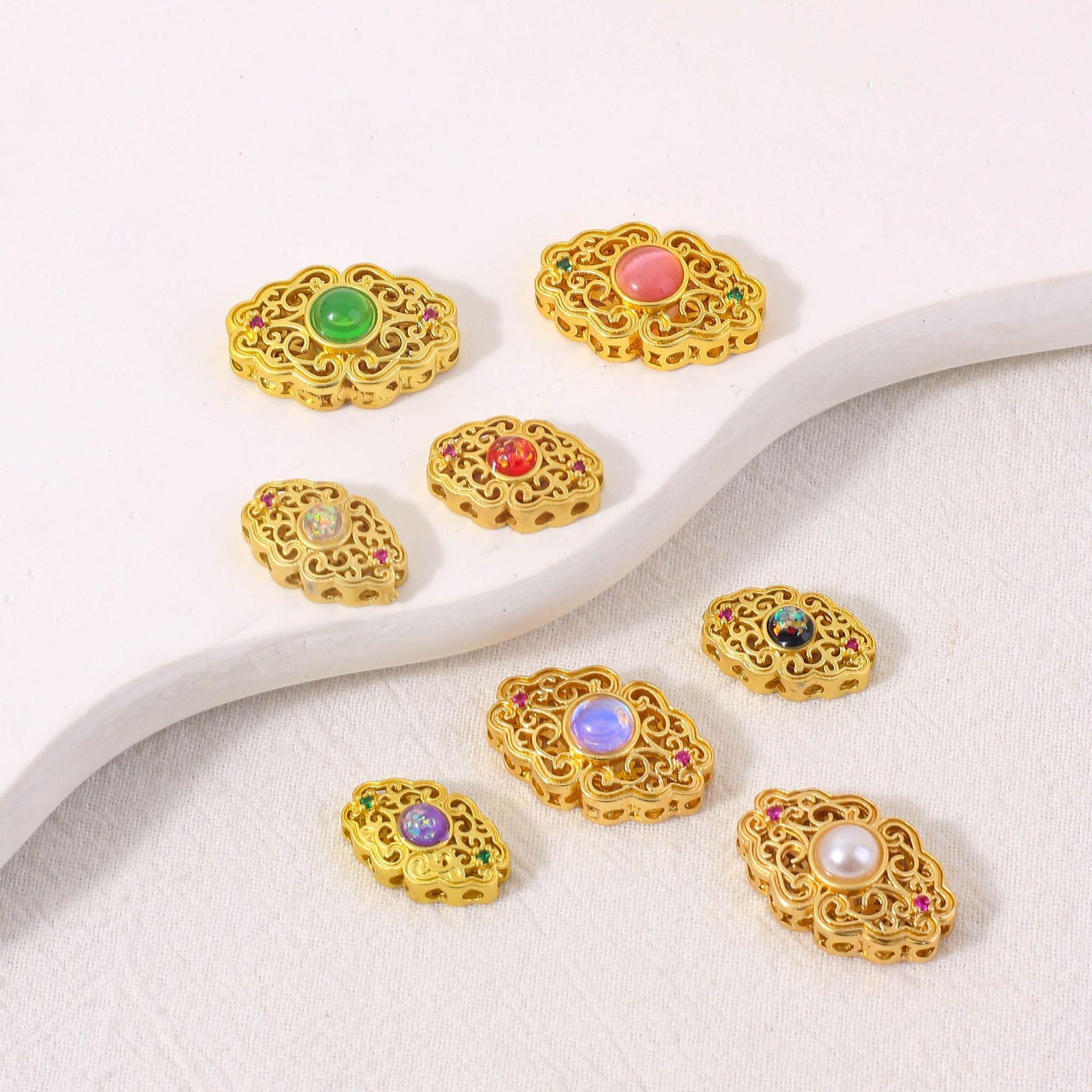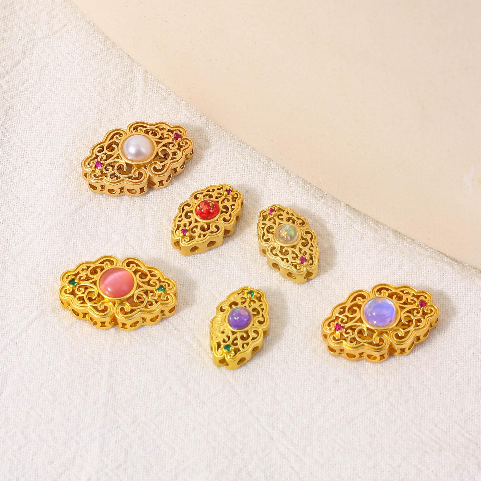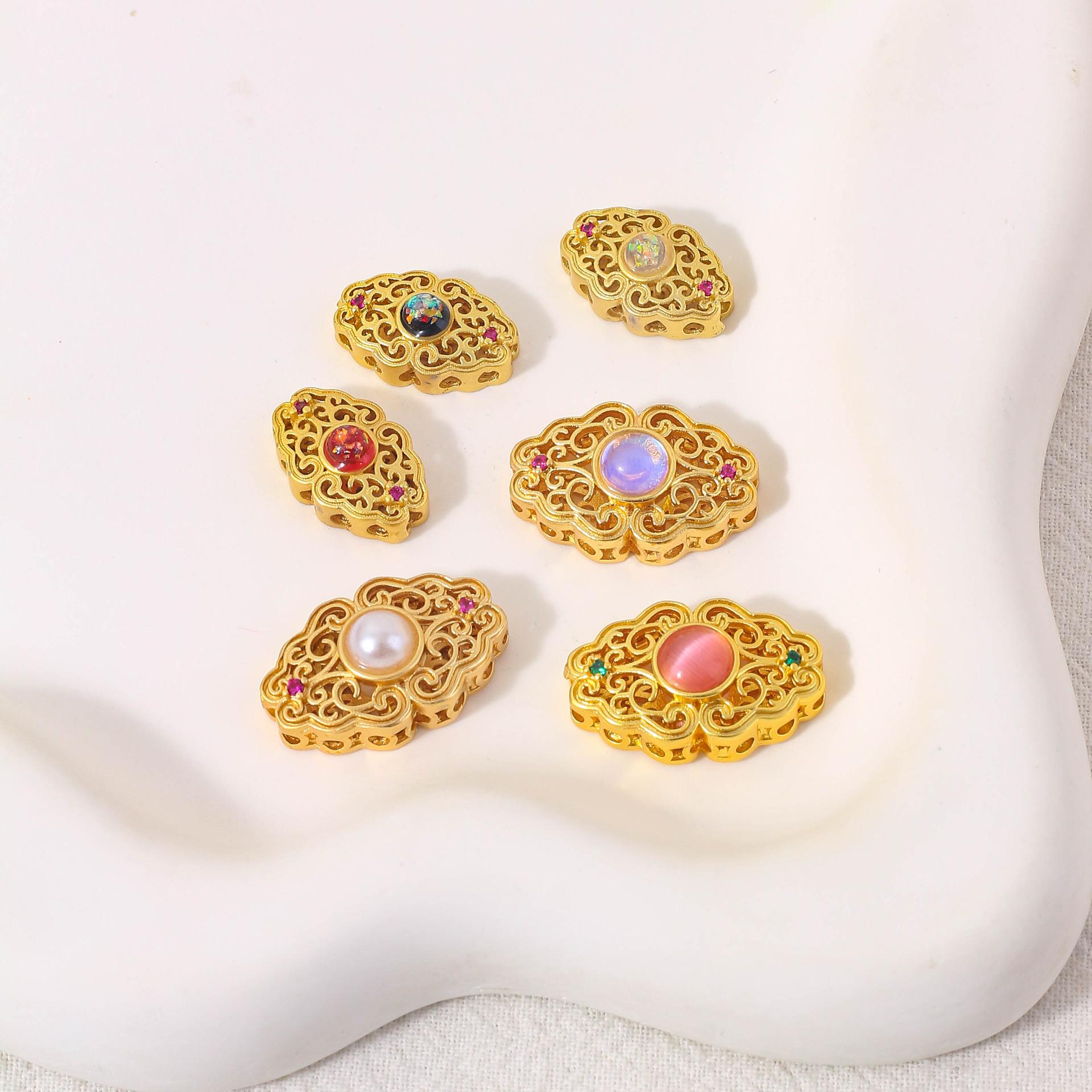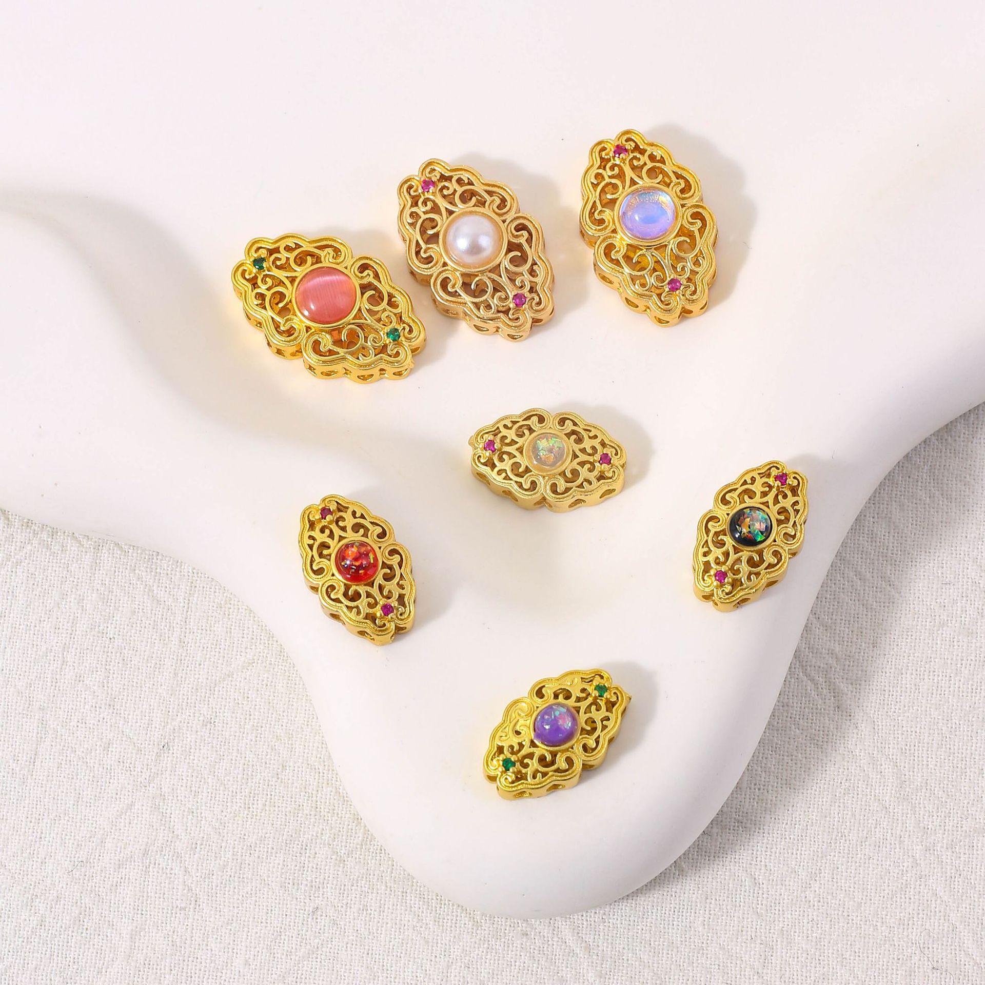 Cuentas de Shajin con orificios pasantes incrustadas con ojo de gato, accesorios para pulseras y collares, accesorios de ropa cheongsam antiguos.