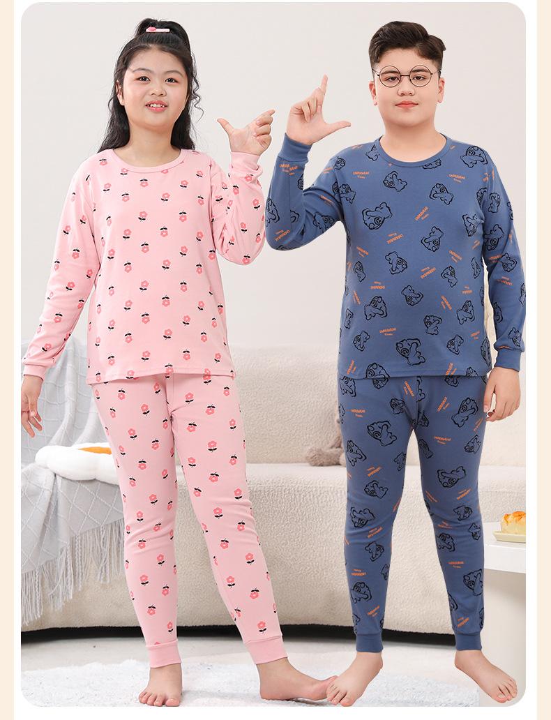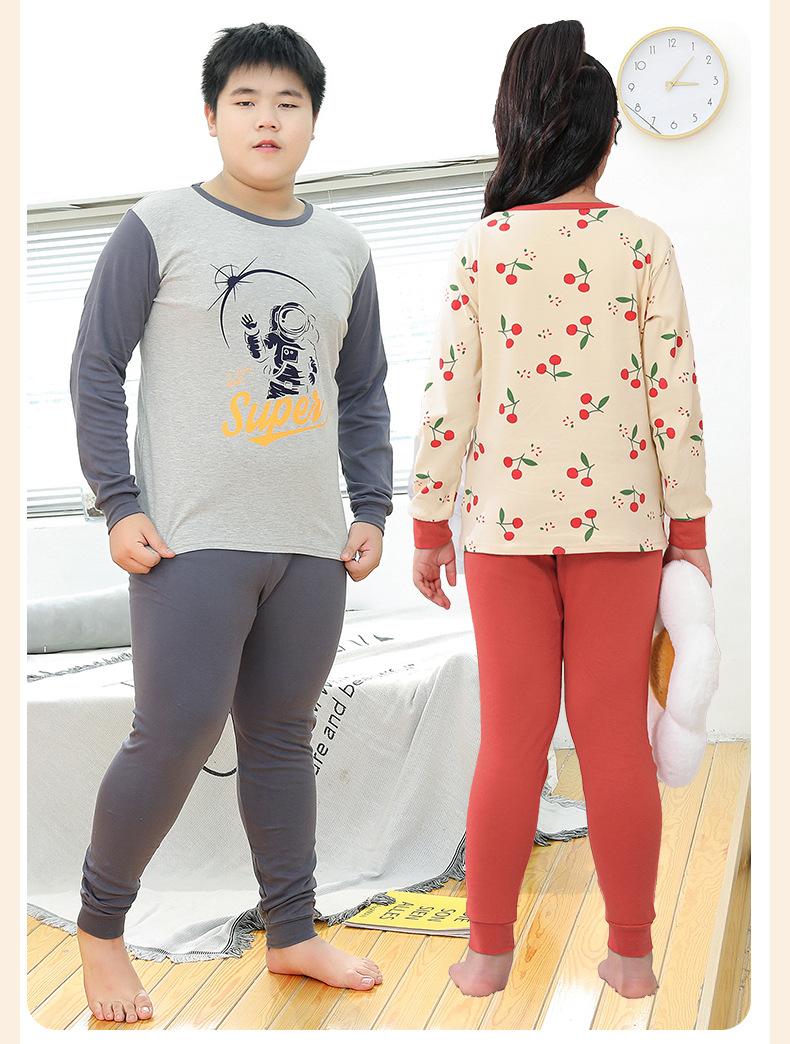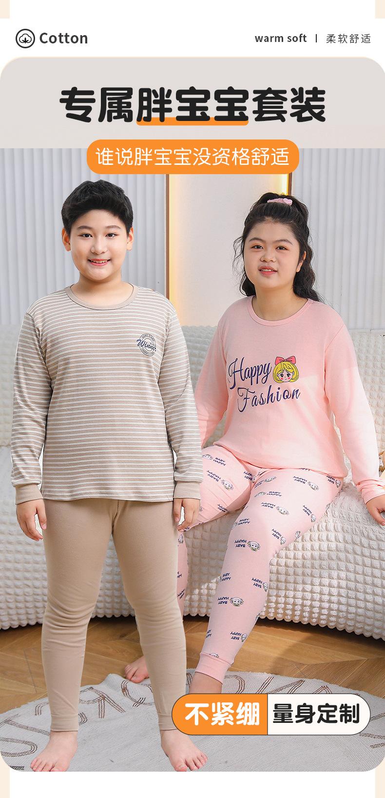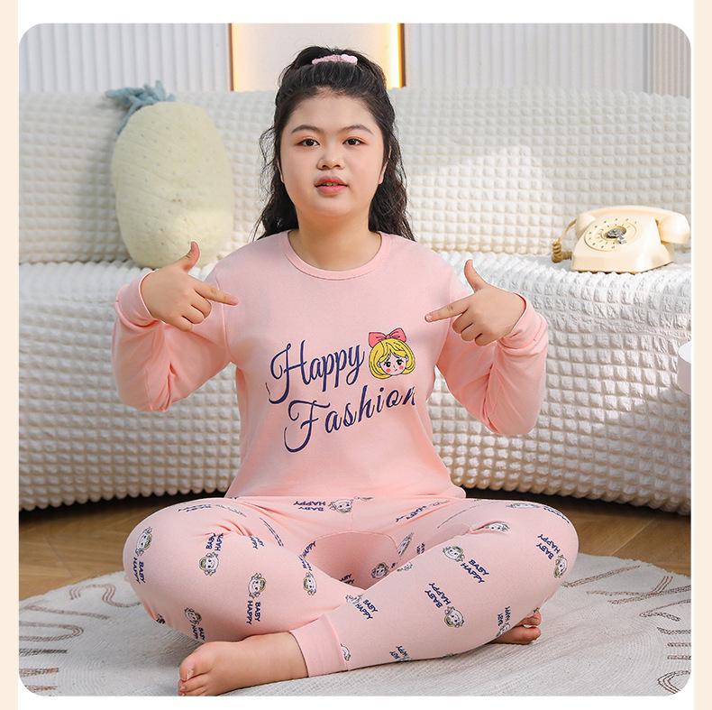 Ropa de Otoño y Pantalón para Niños Gorditos Traje de Algodón Puro Pijamas para Niños Grandes Niñas Talla Extra Suéter de Algodón Ropa Interior para Niños