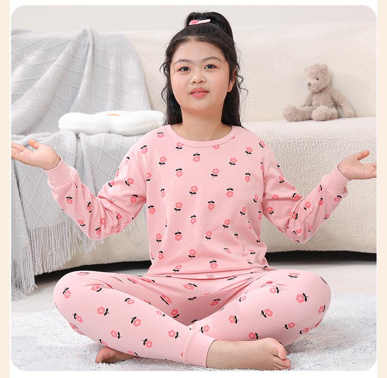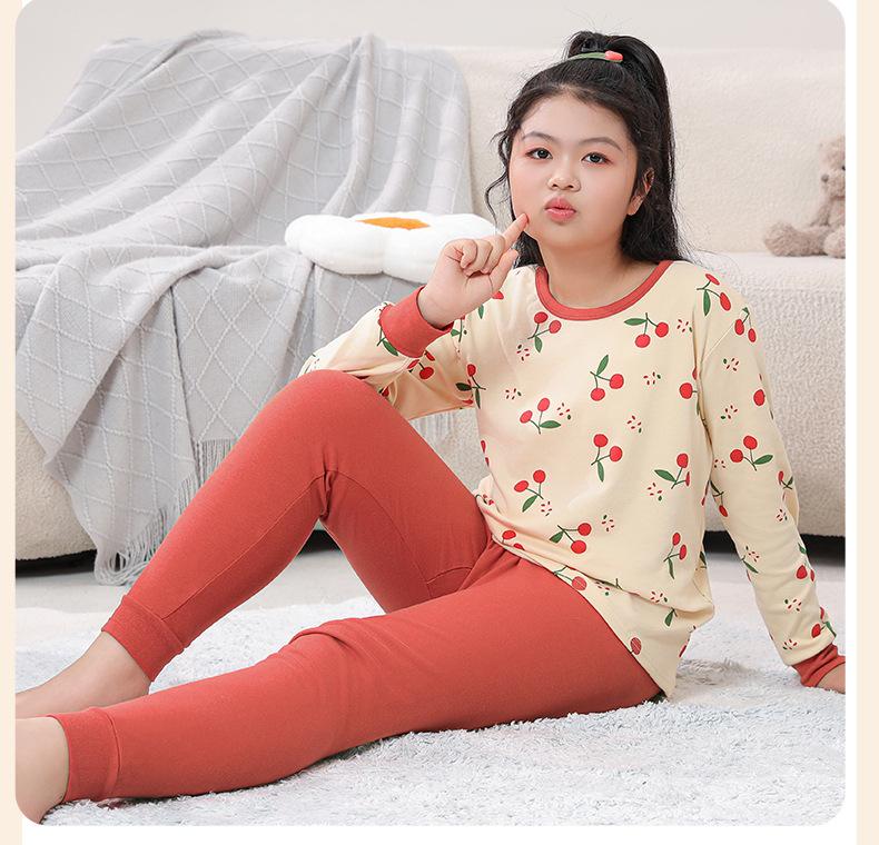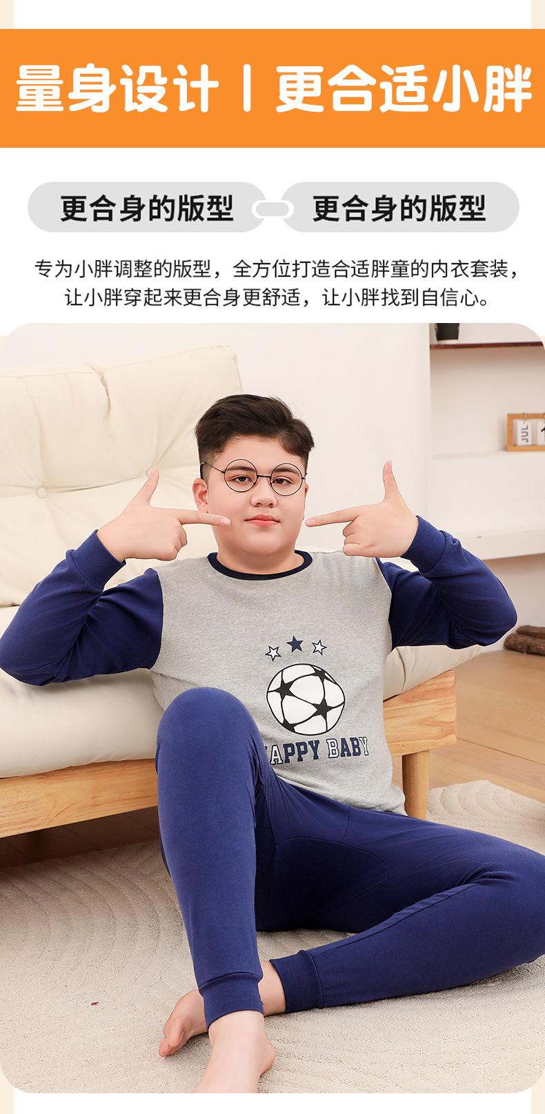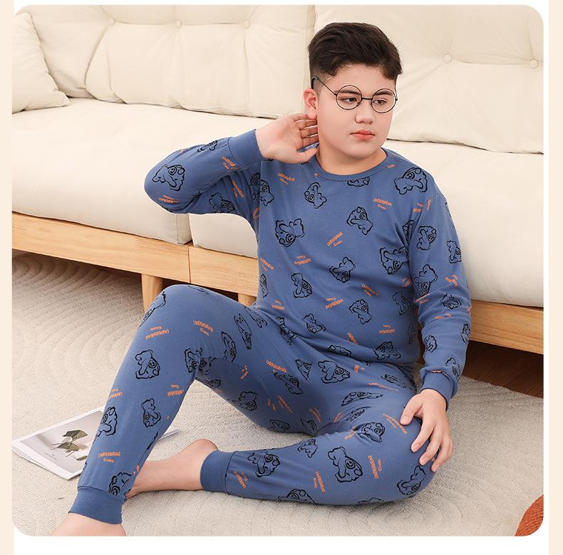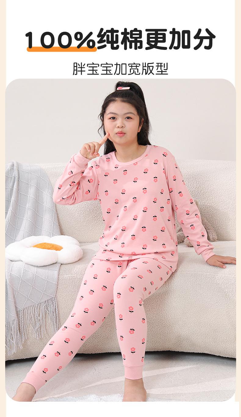 Ropa de Otoño y Pantalón para Niños Gorditos Traje de Algodón Puro Pijamas para Niños Grandes Niñas Talla Extra Suéter de Algodón Ropa Interior para Niños