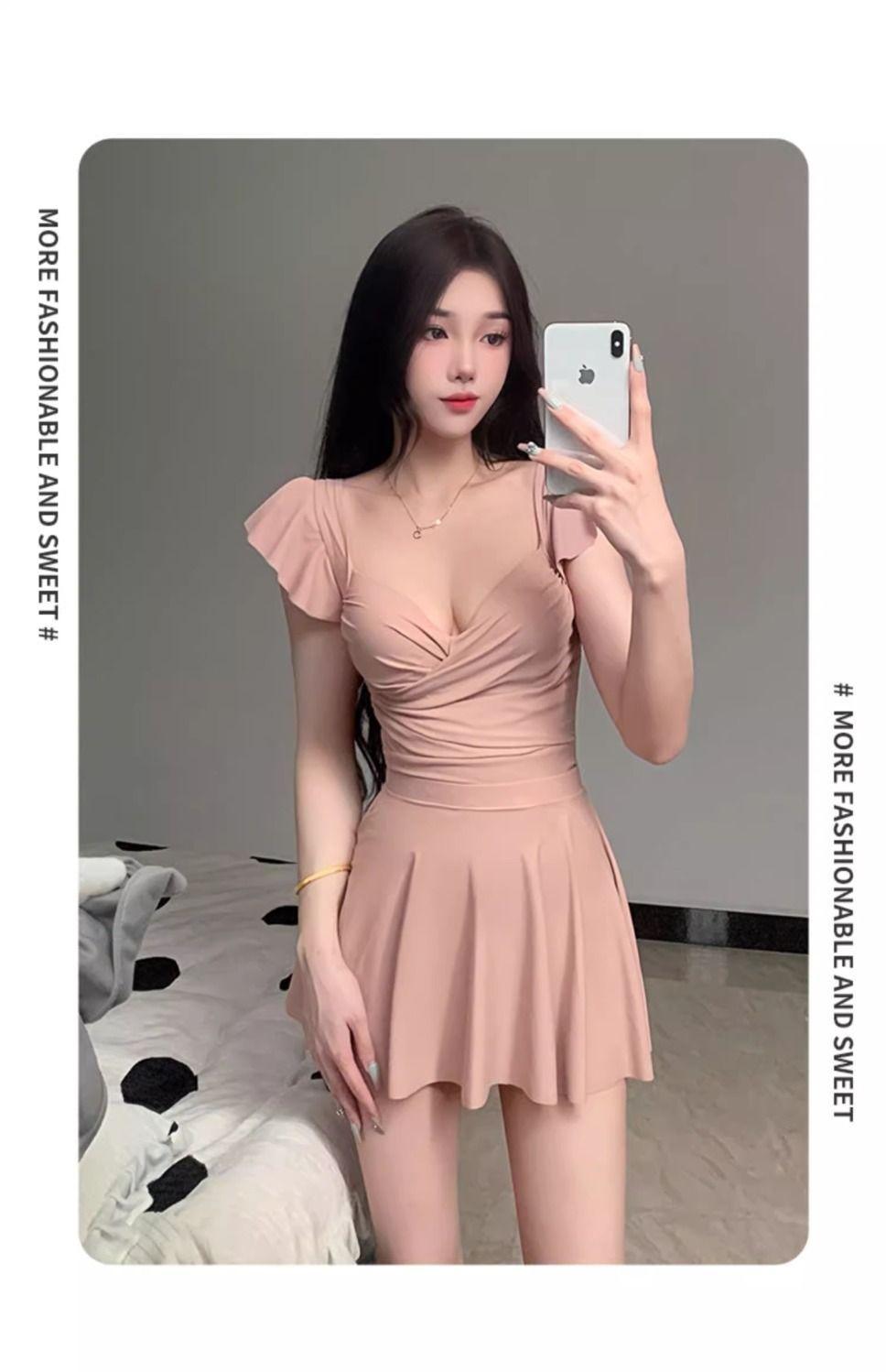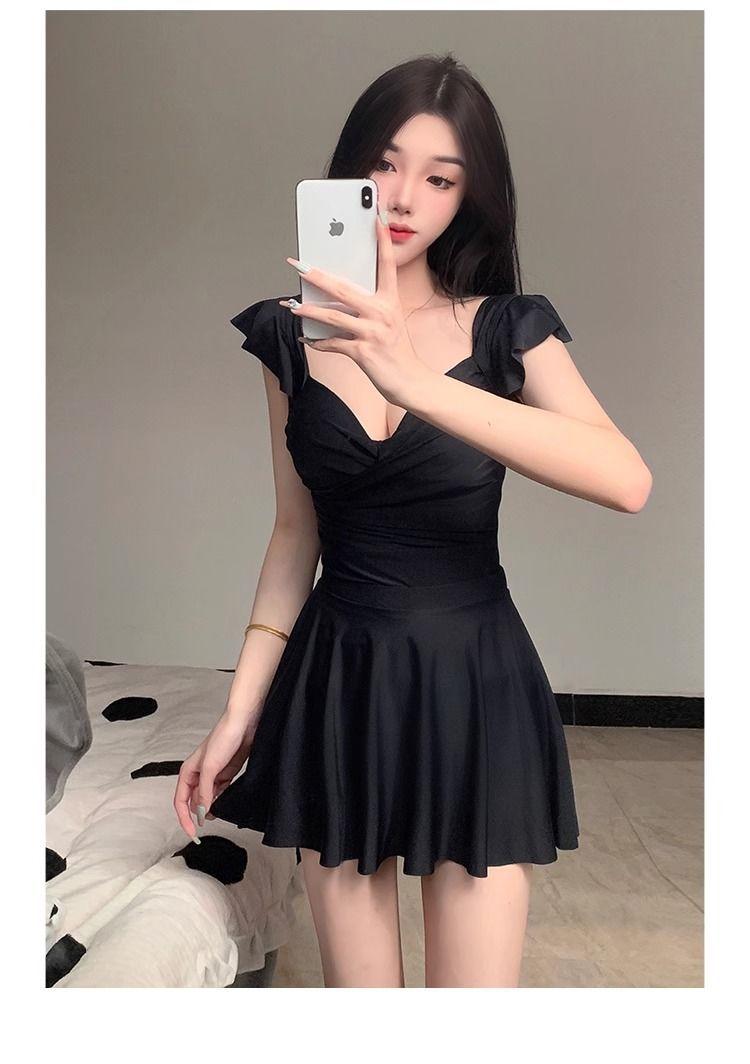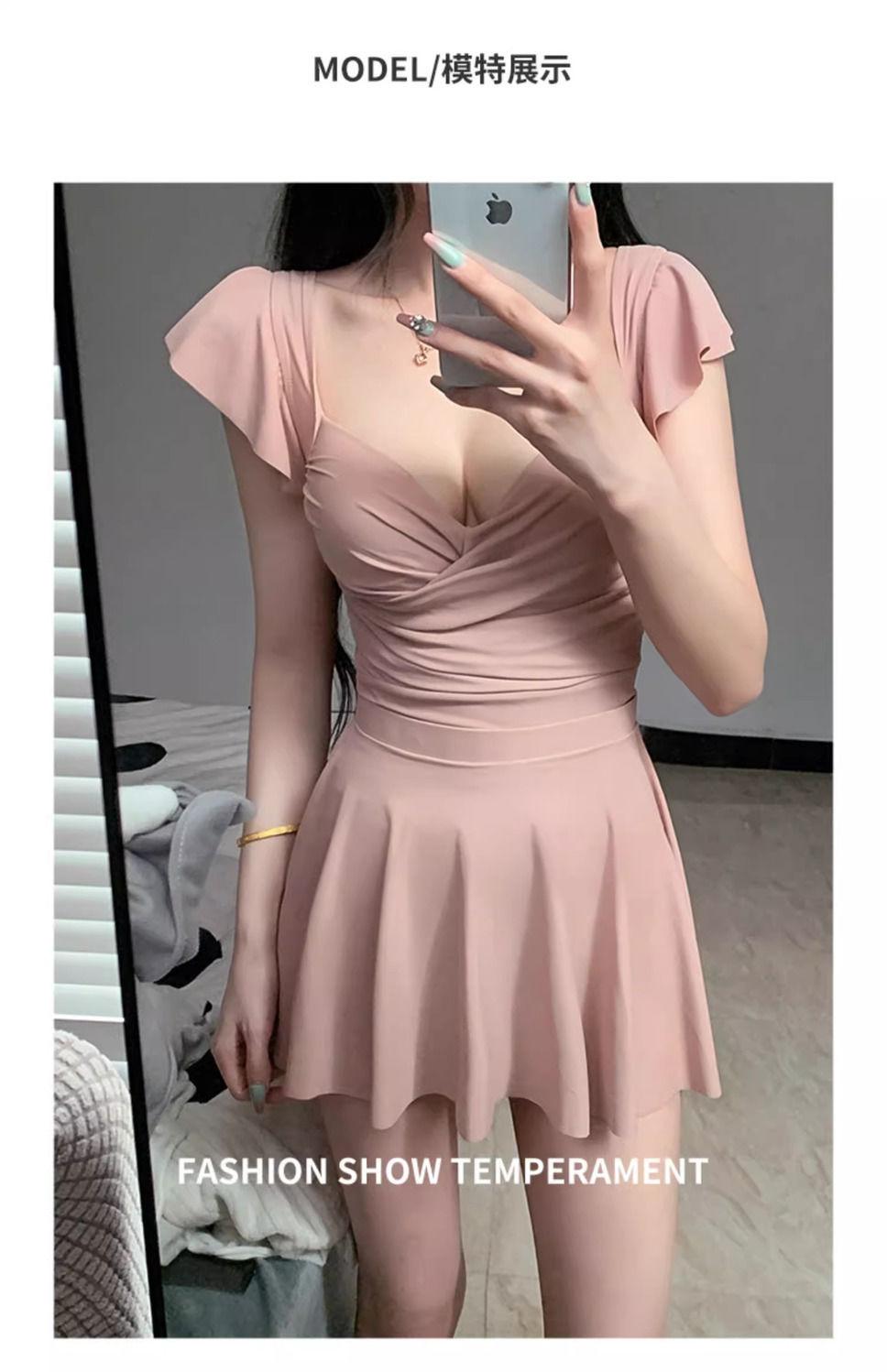 Traje de Baño Nuevo 2025 para Mujer Verano de Alta Gama Estilo Falda de Una Pieza Conservador Cubre Vientre Adelgazante con Varillas Push-Up Traje de Baño para Aguas Termales