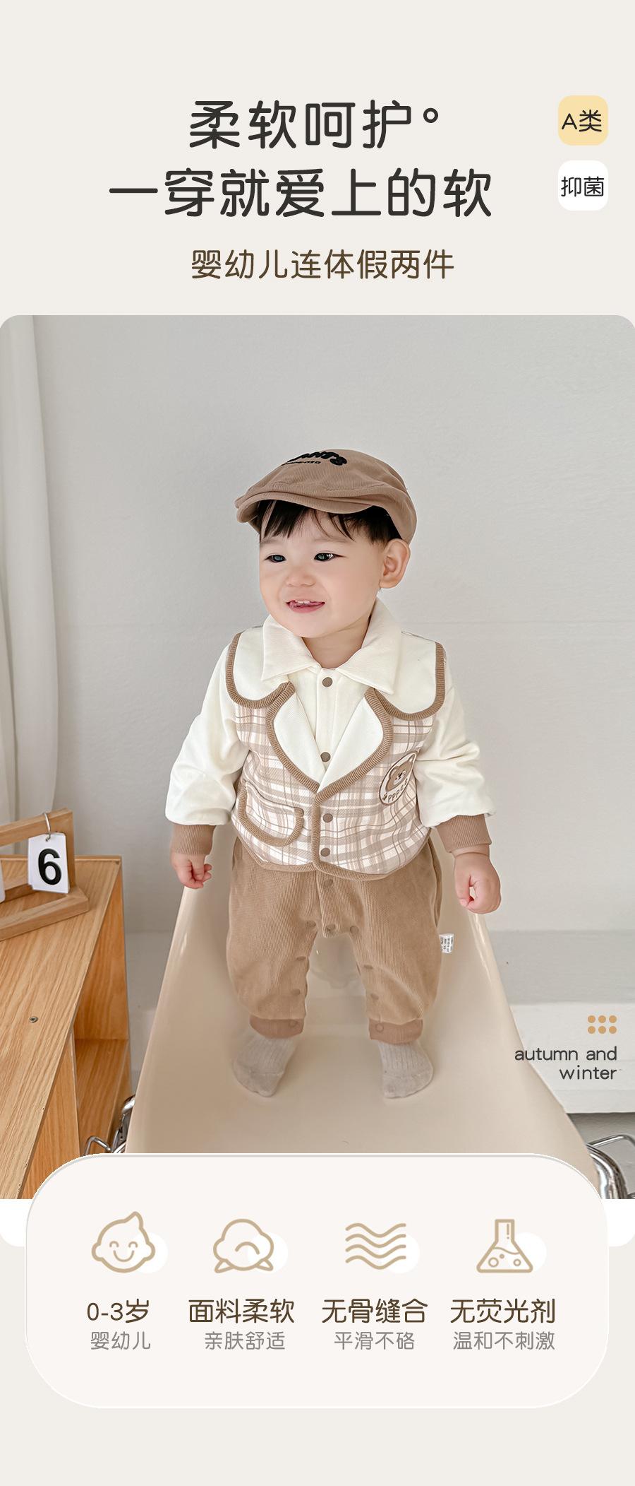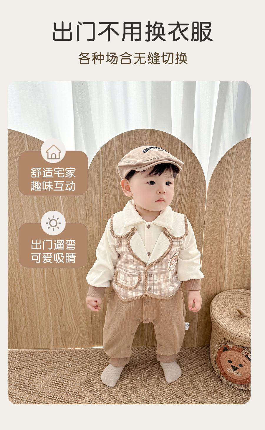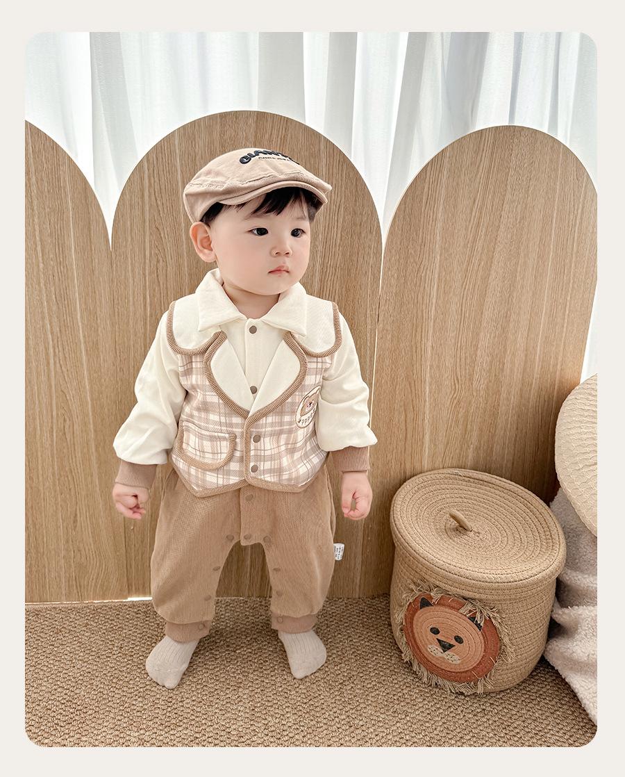 Ropa de Bebé Primavera y Otoño Traje Enterizo Tesoro de Caballero para Hombre Falso de Dos Piezas Traje de Pedos Clase A Algodón Puro Traje Ja-ja Ropa para Trepar para Salir 1
