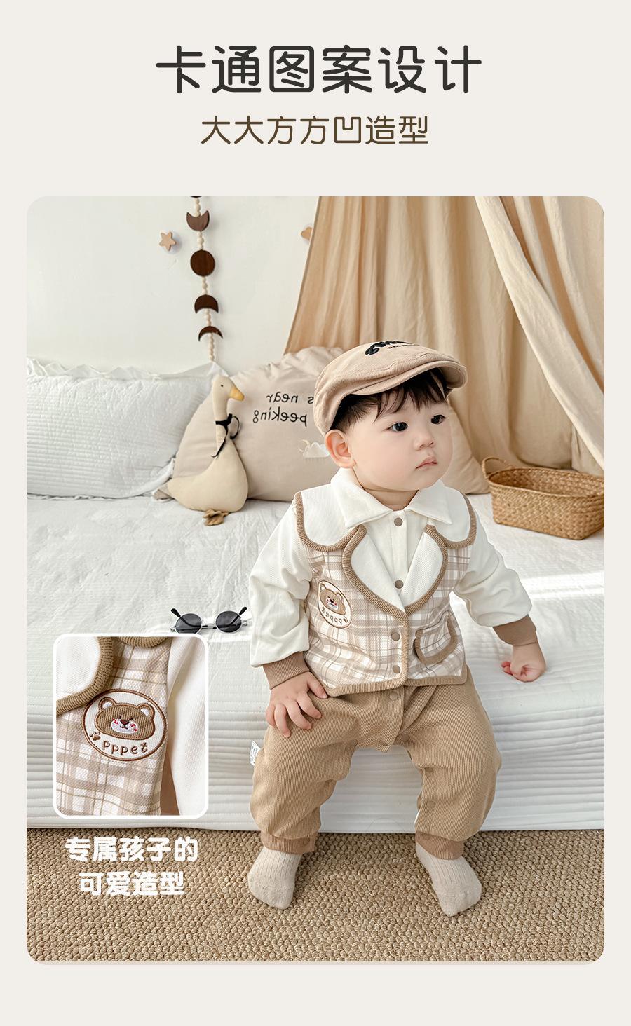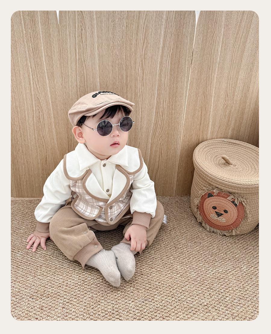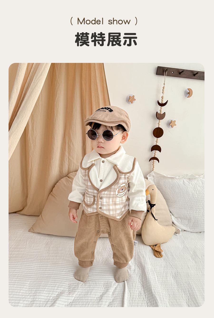 Ropa de Bebé Primavera y Otoño Traje Enterizo Tesoro de Caballero para Hombre Falso de Dos Piezas Traje de Pedos Clase A Algodón Puro Traje Ja-ja Ropa para Trepar para Salir 1