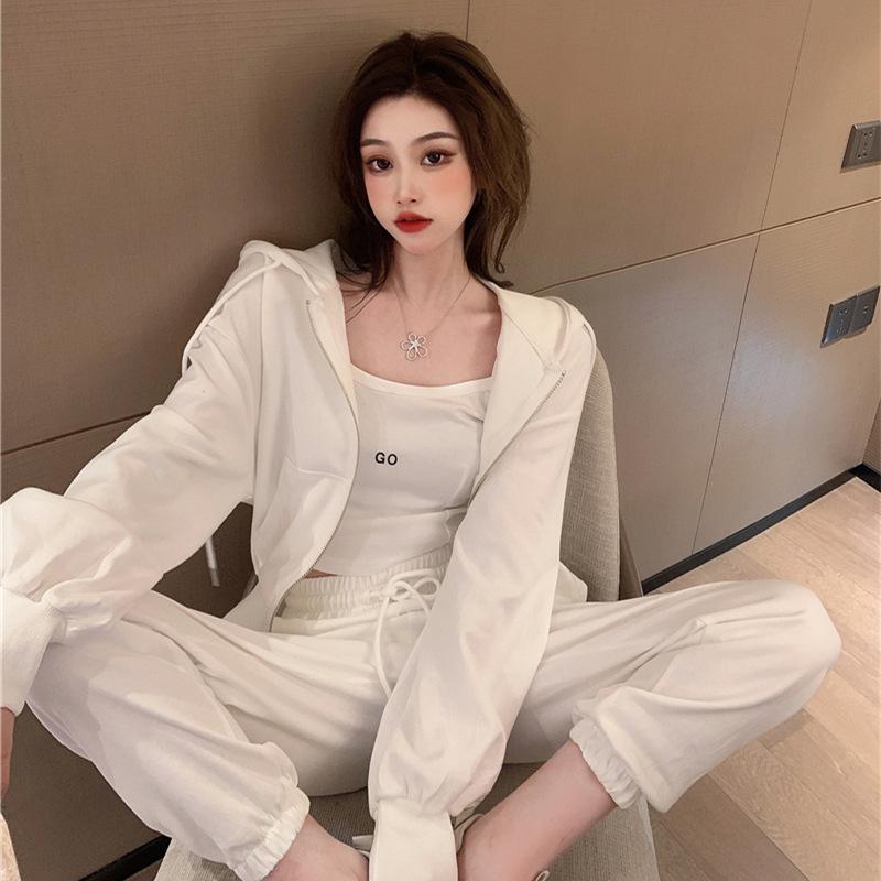 Sudadera Casual Versátil de Moda Deportiva Comercio Exterior Traje para Mujer 2024 Nuevo Primavera y Otoño Estilo Coreano Suelto Celebridad de Internet Traje de Tres Piezas