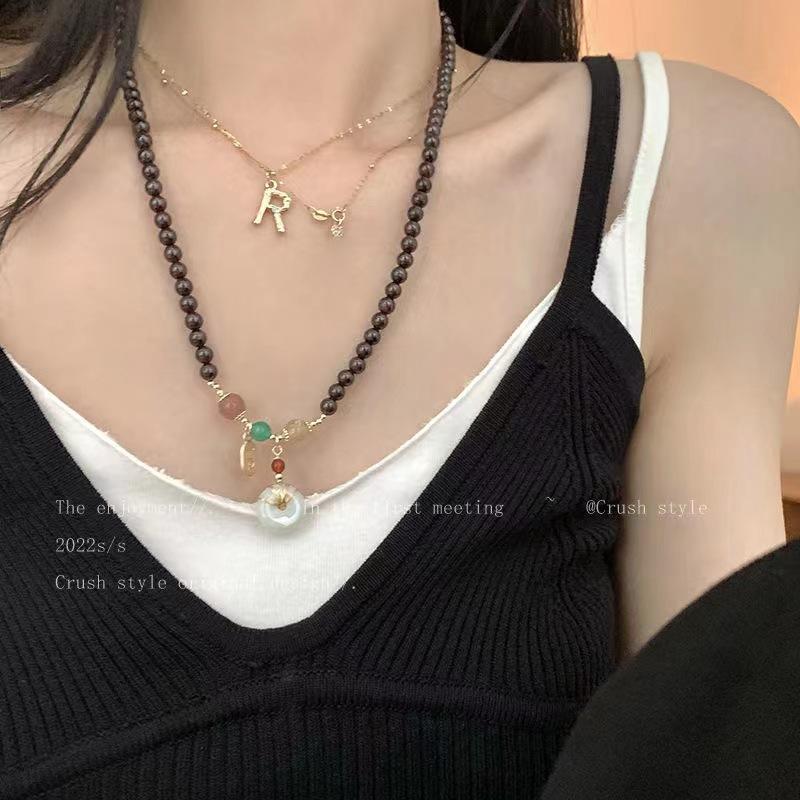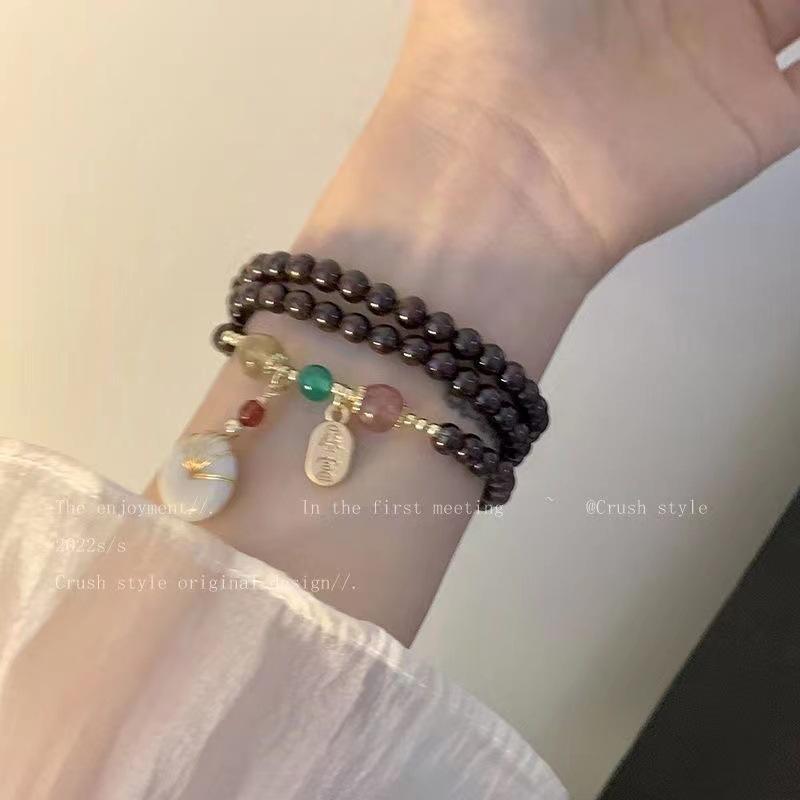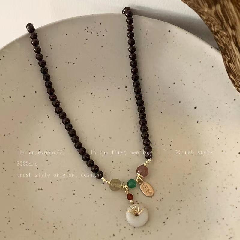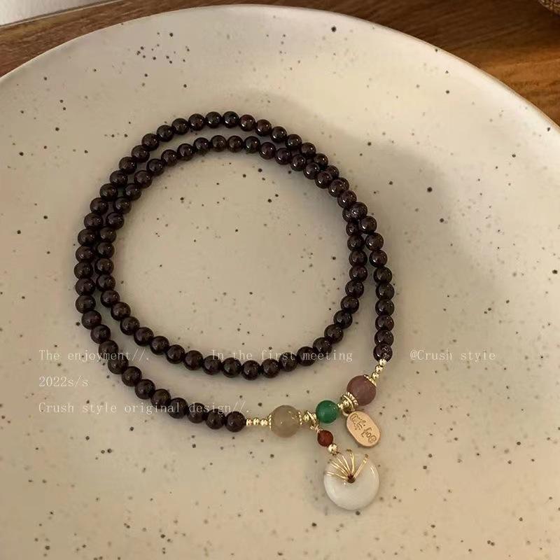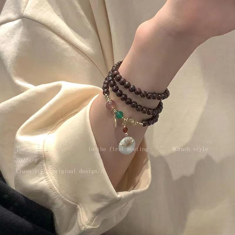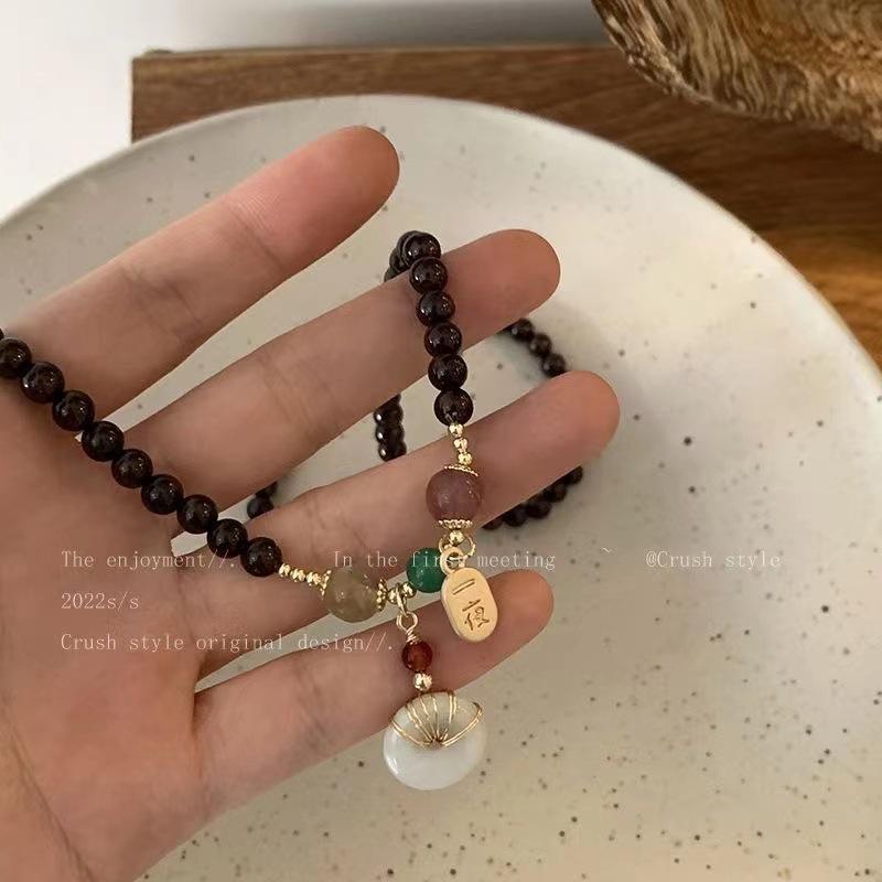 Pulsera de estilo chino vintage con hebilla de seguridad, diseño de nicho, imitación de granate, ligera, de lujo, de alta gama.