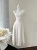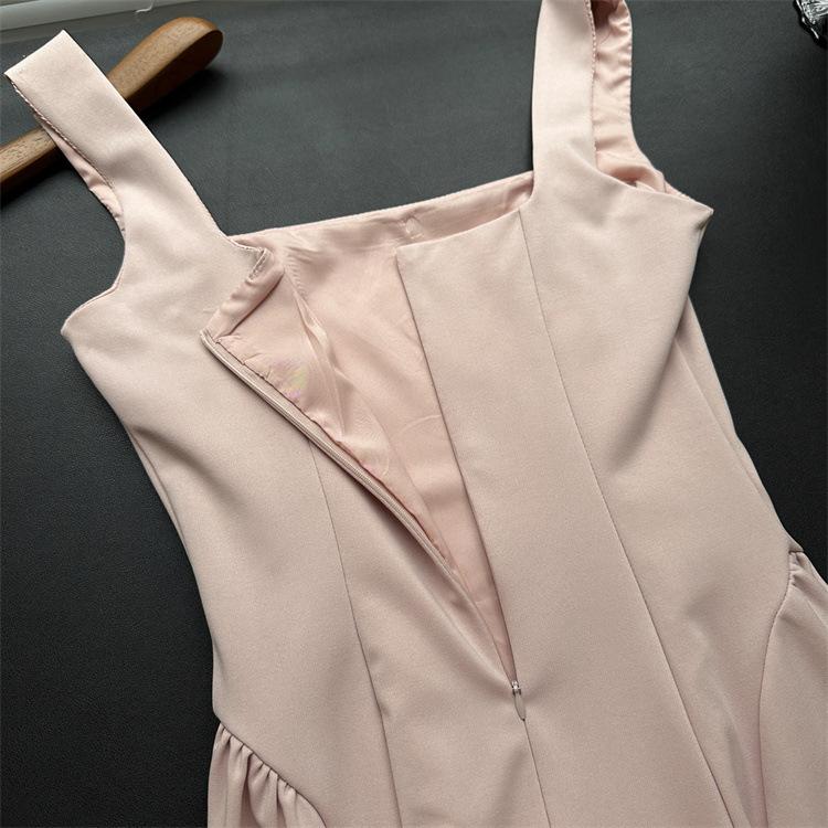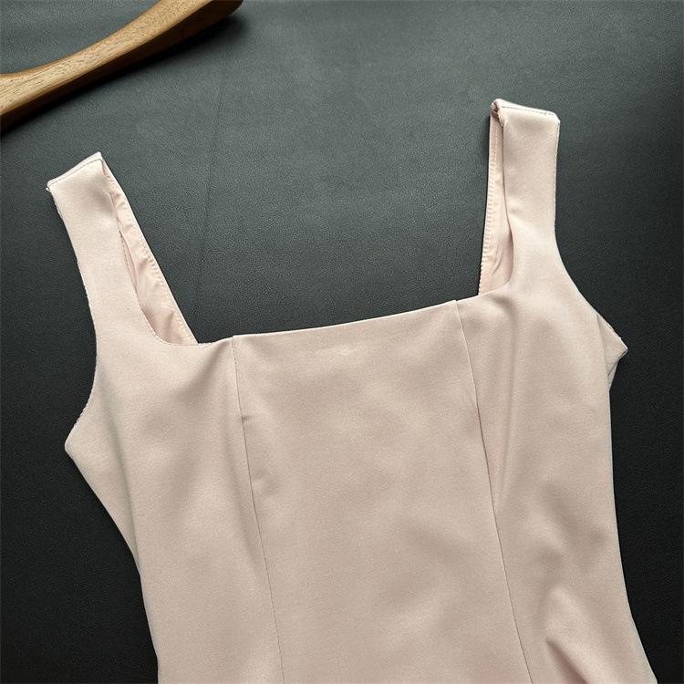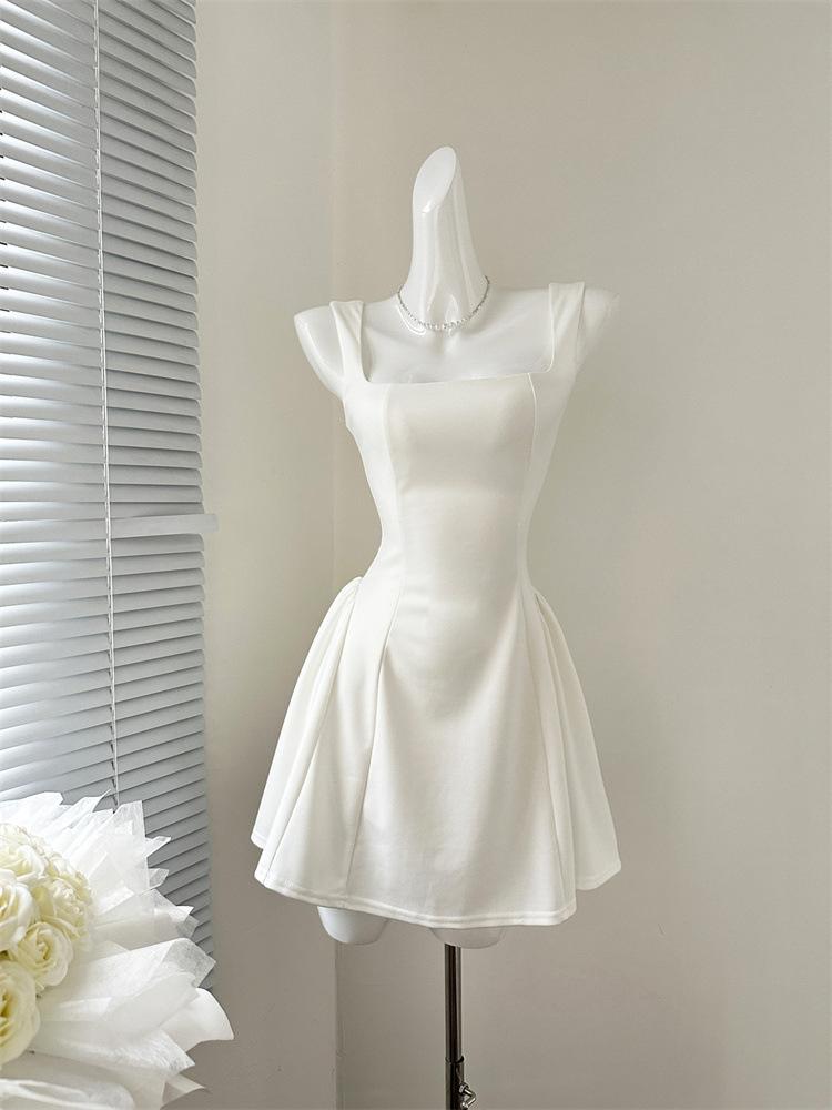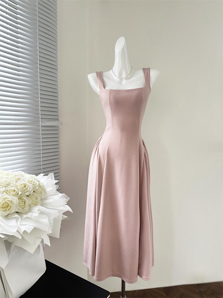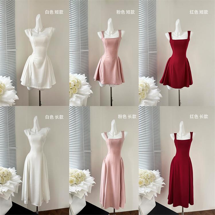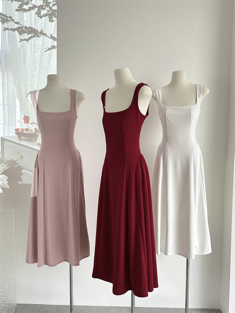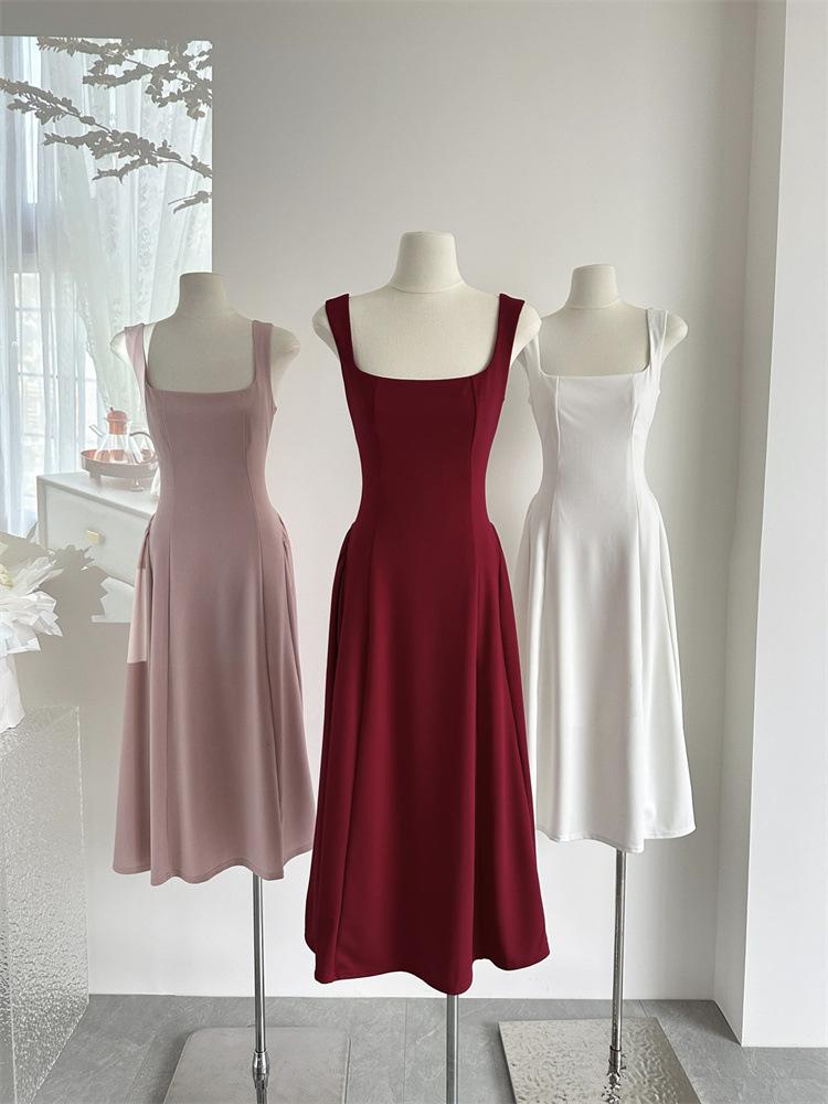 Vestido Rojo de Tirantes con Cuello en U para Mujer 2024 Nuevo Falda Línea A Francesa