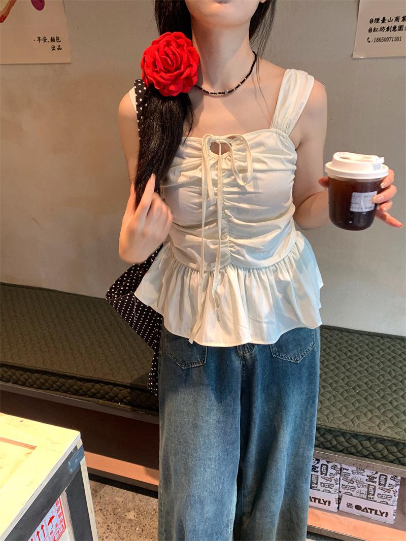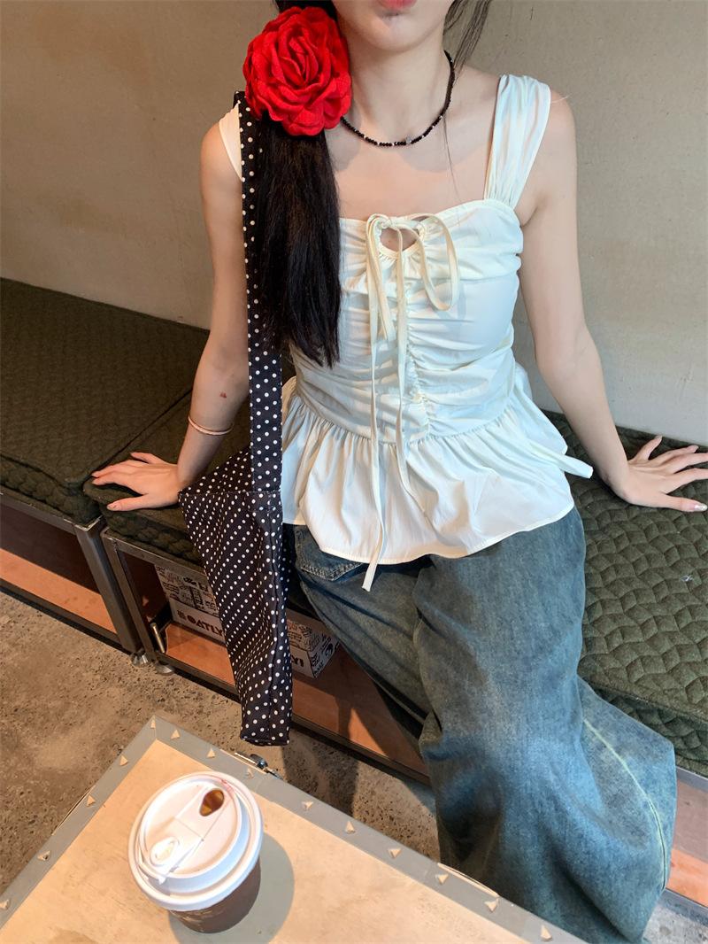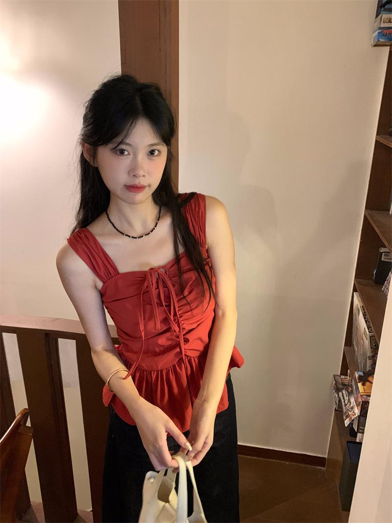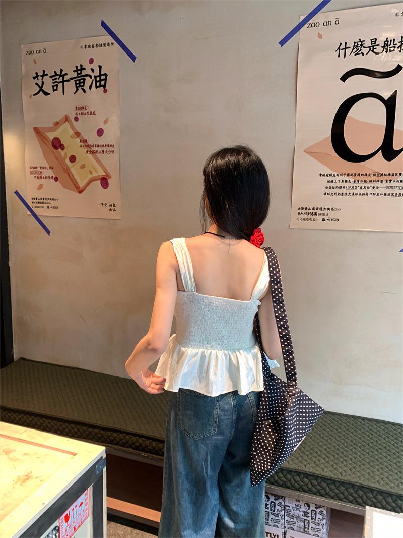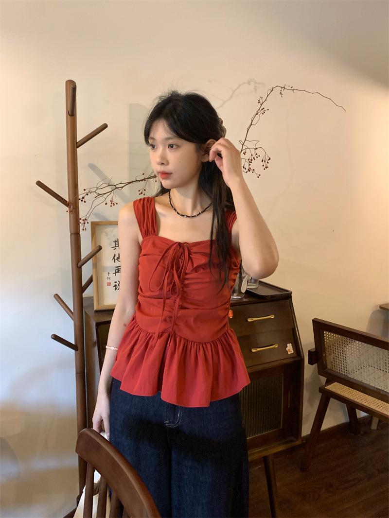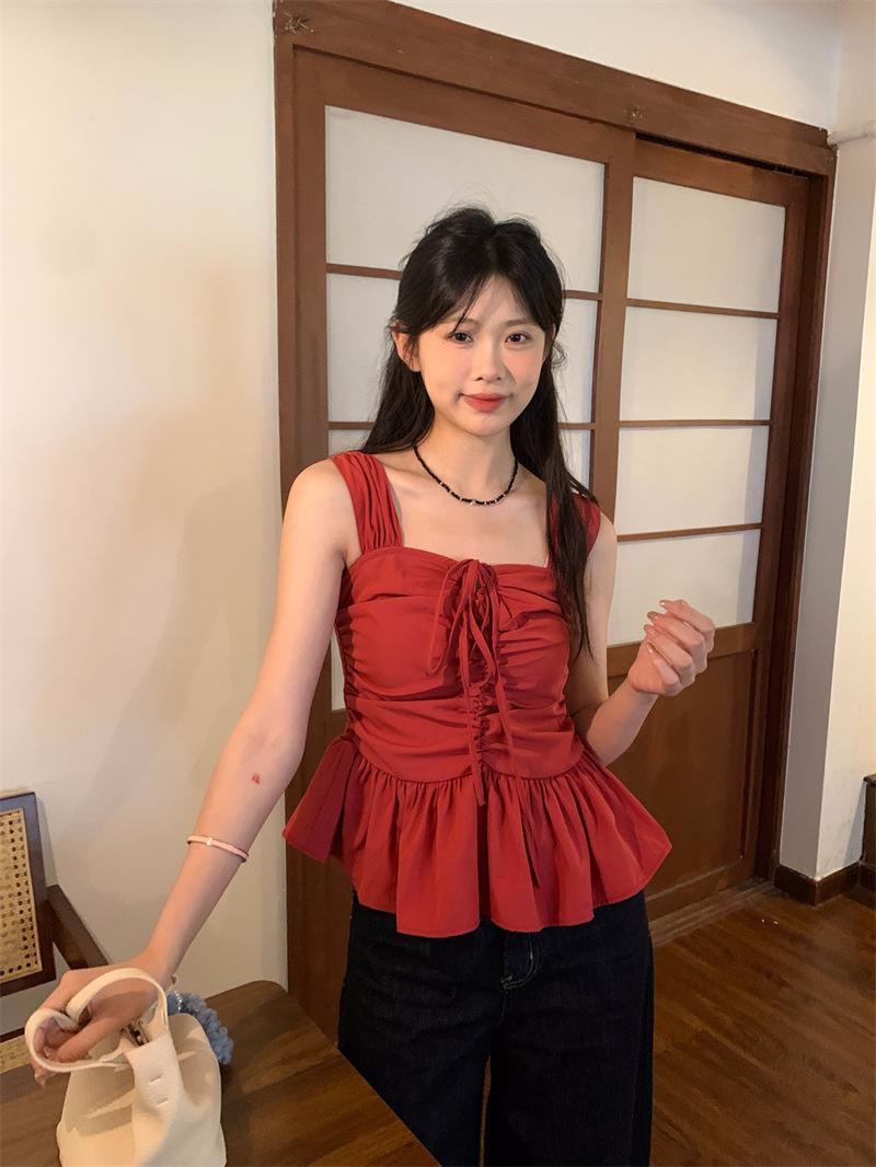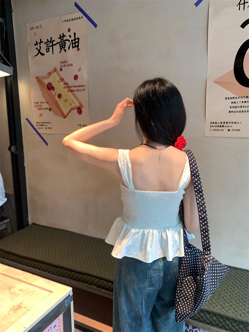 Top corto elegante de verano para mujer con cintura nueva y diseño elegante de nicho con tirantes pequeños 65954