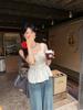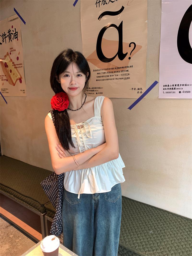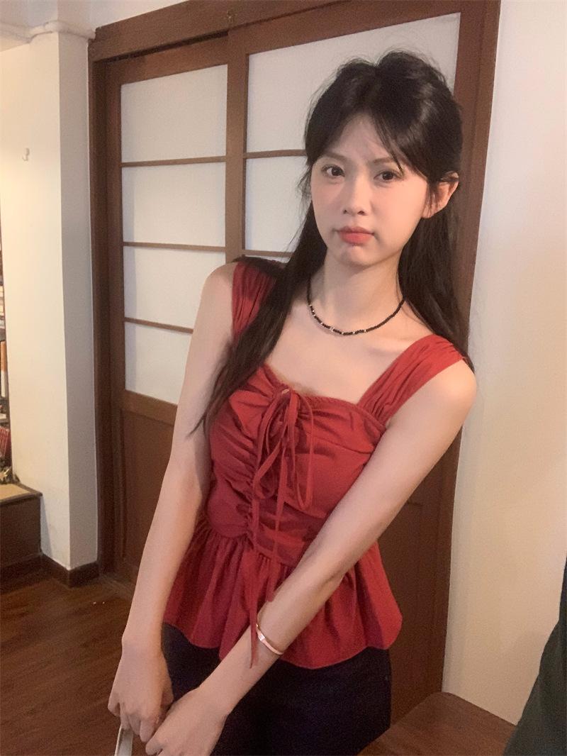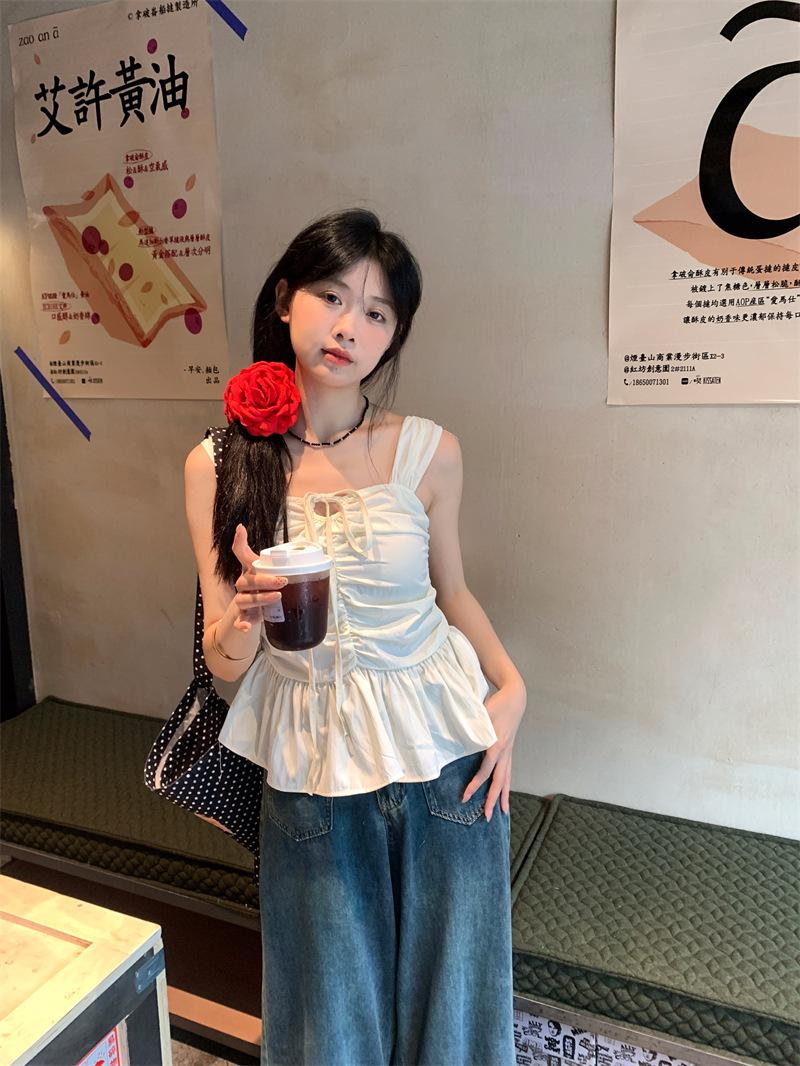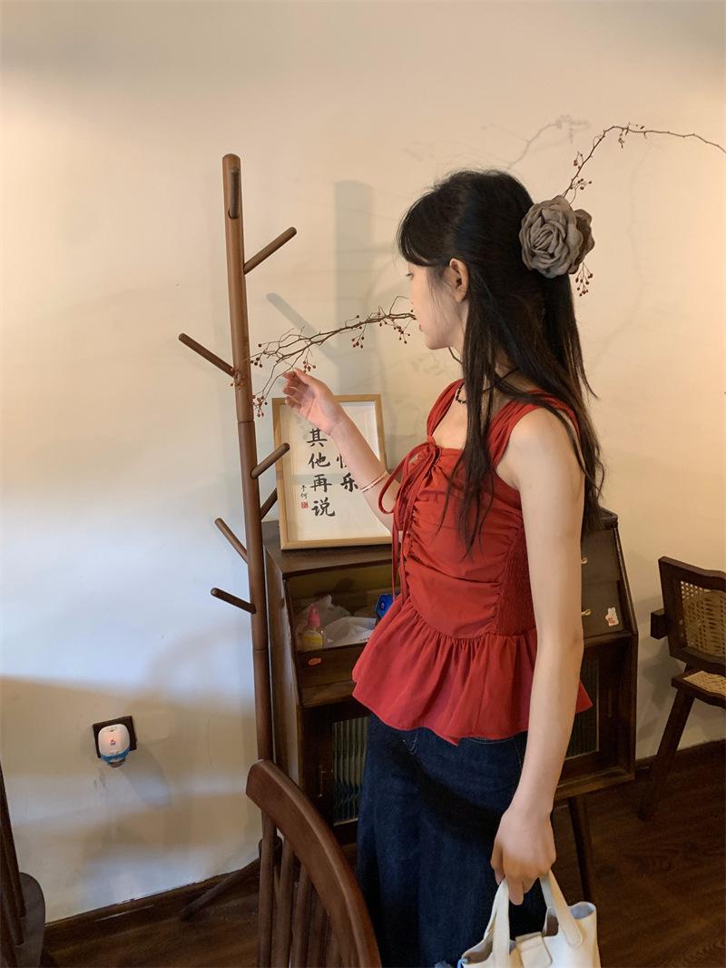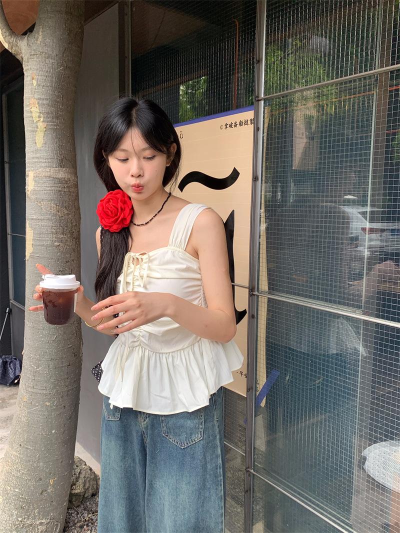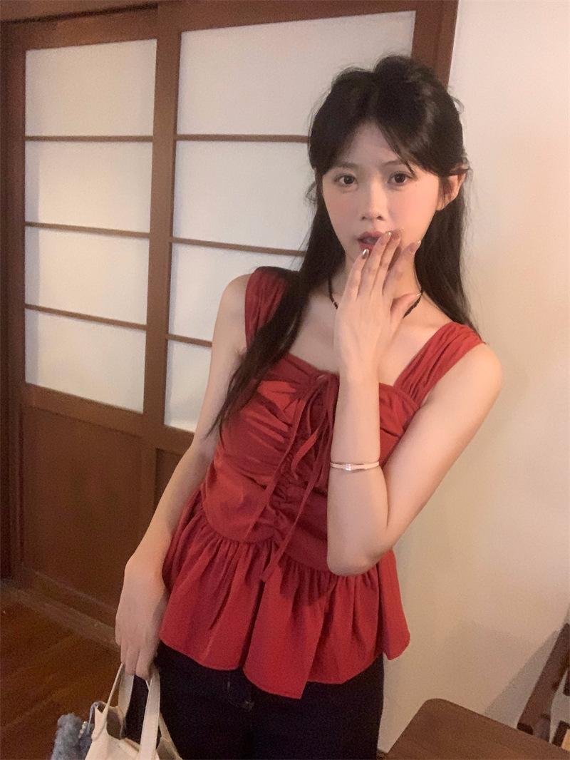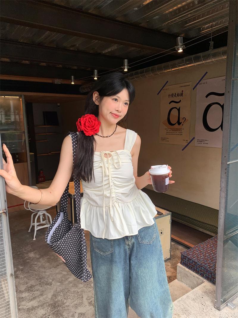 Top corto elegante de verano para mujer con cintura nueva y diseño elegante de nicho con tirantes pequeños 65954