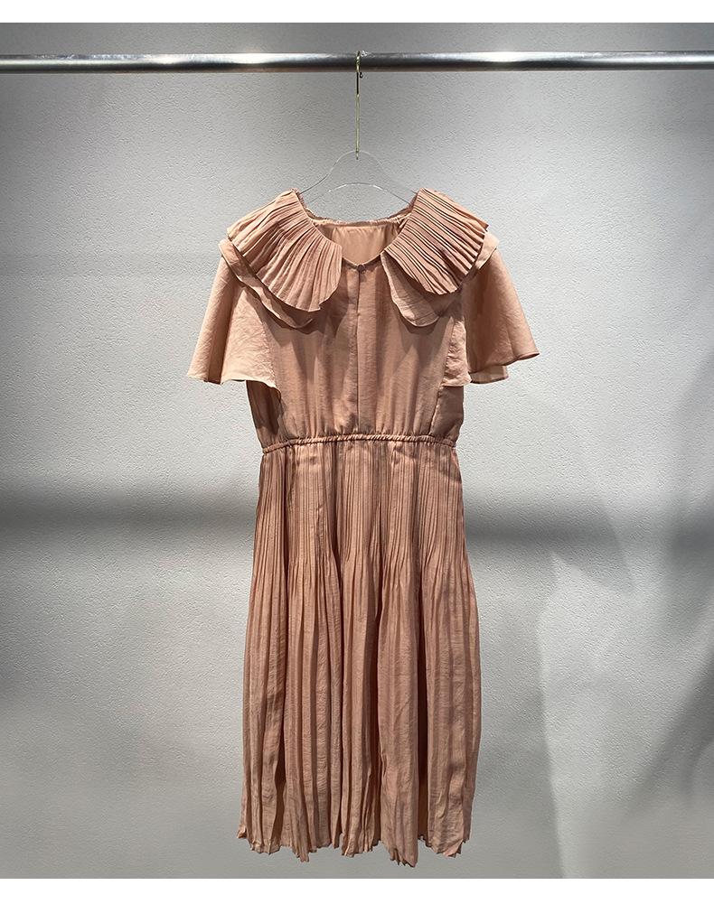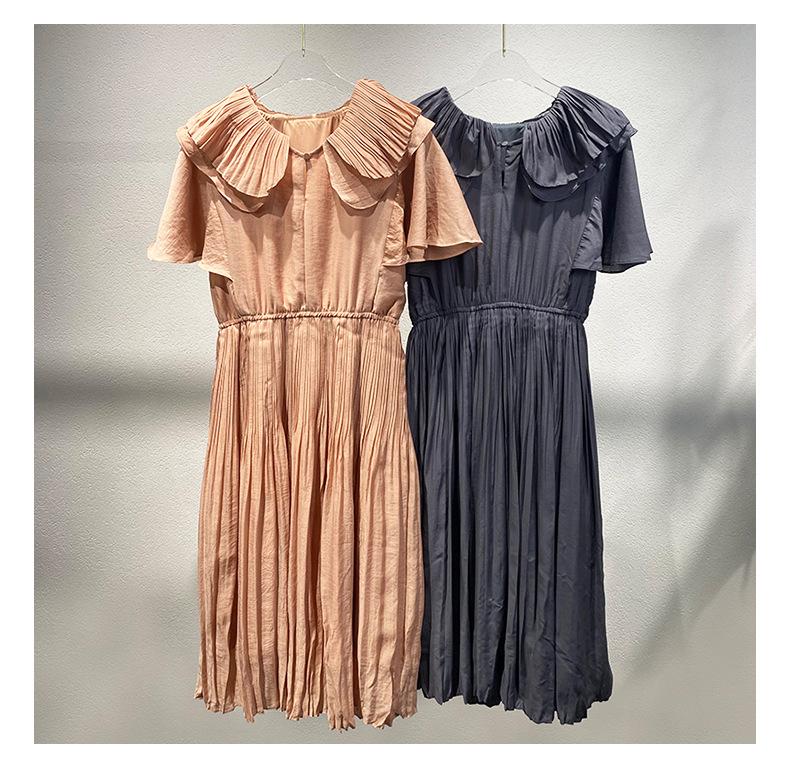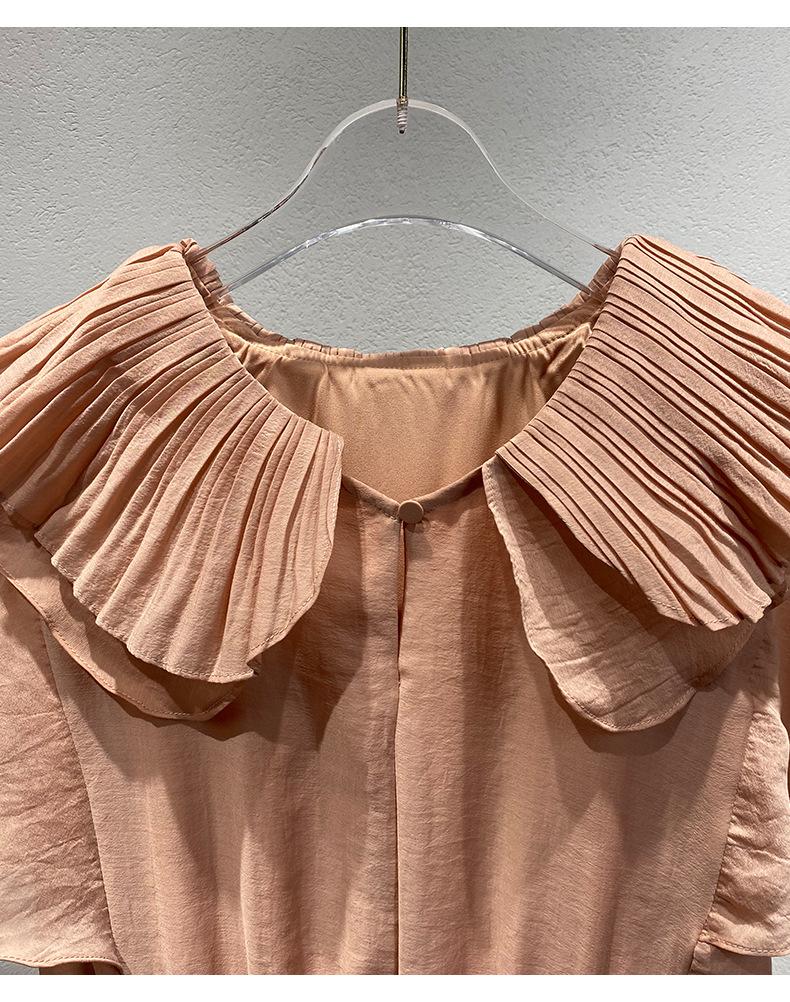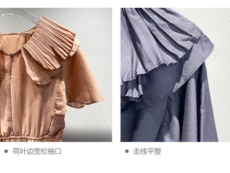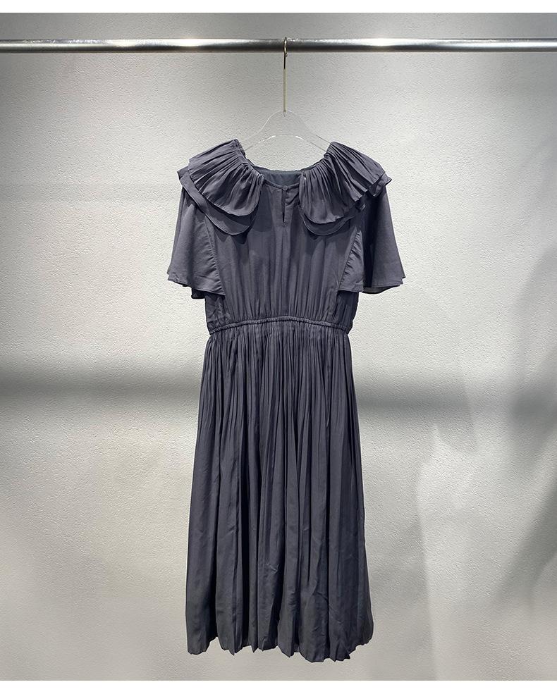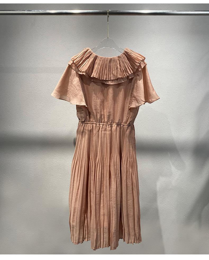 Oferta especial, vestido francés de verano 2024, nuevo, con volantes, antiedad, de manga corta, cuello de muñeca, vestido plisado para mujer