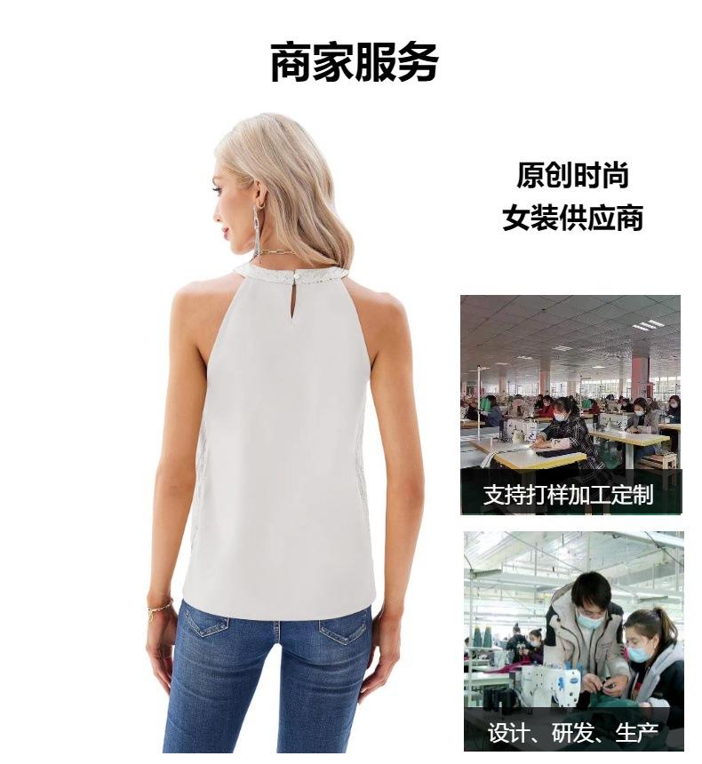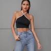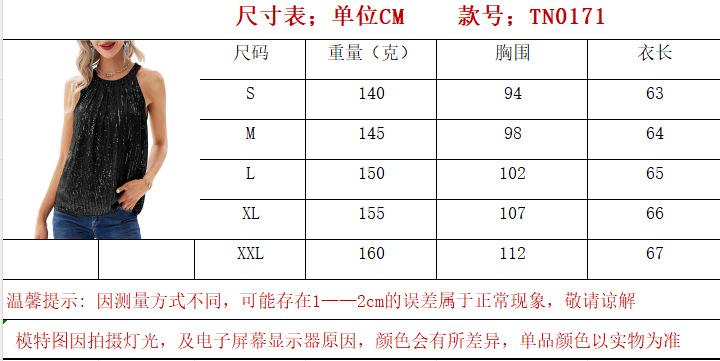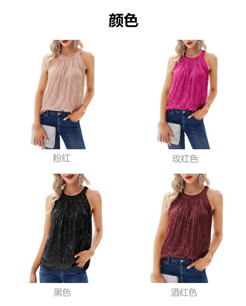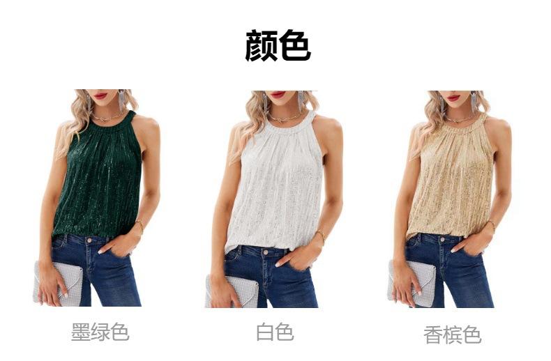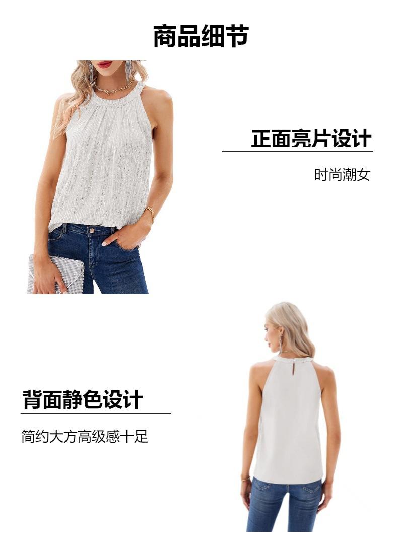 Verano 2023 Europeo y Americano Amazon Transfronterizo Nuevo Color Puro Estilo Halter para Mujer Lentejuelas Micro-Elástico Tirantes Lentejuelas Chaleco