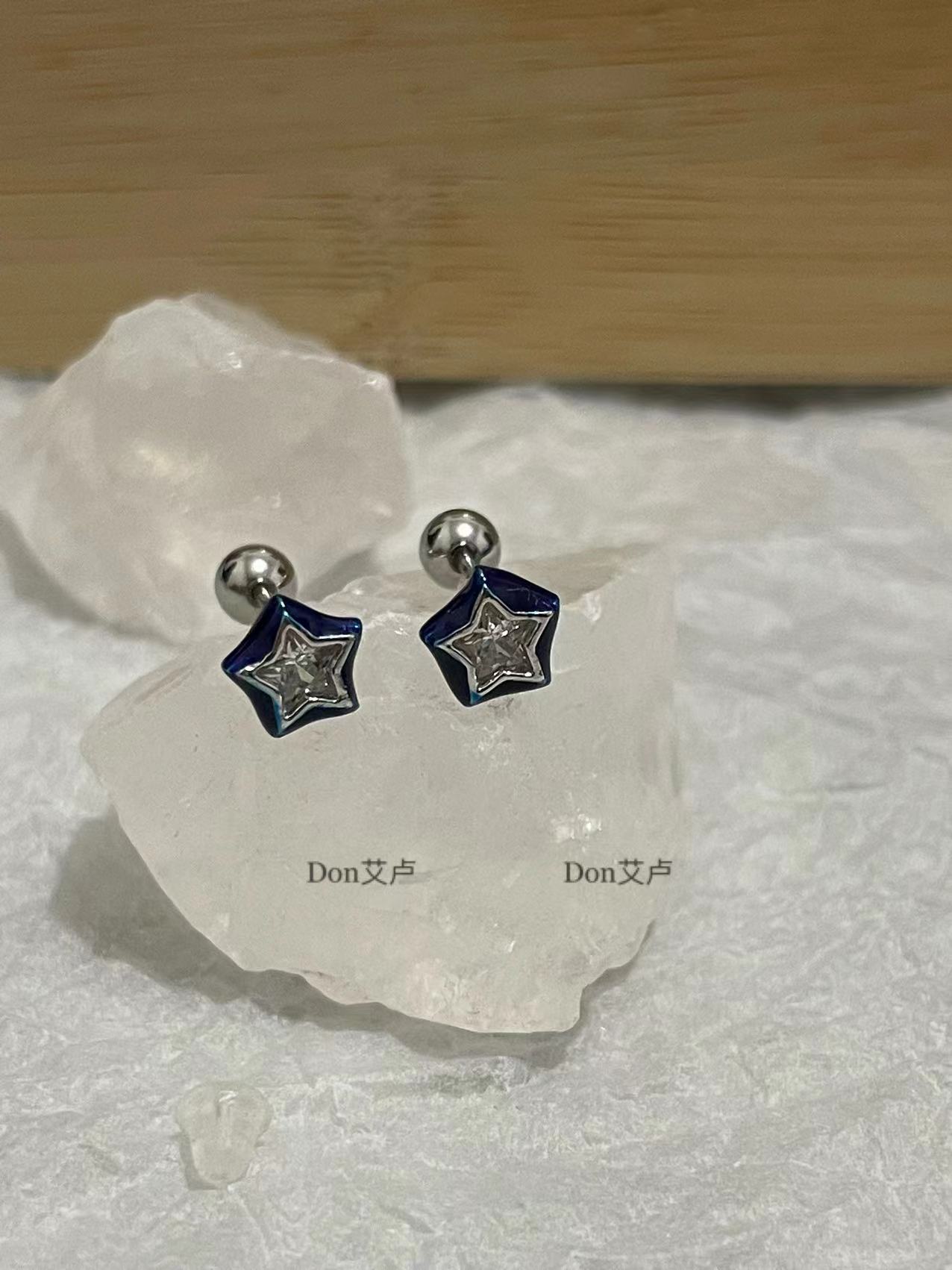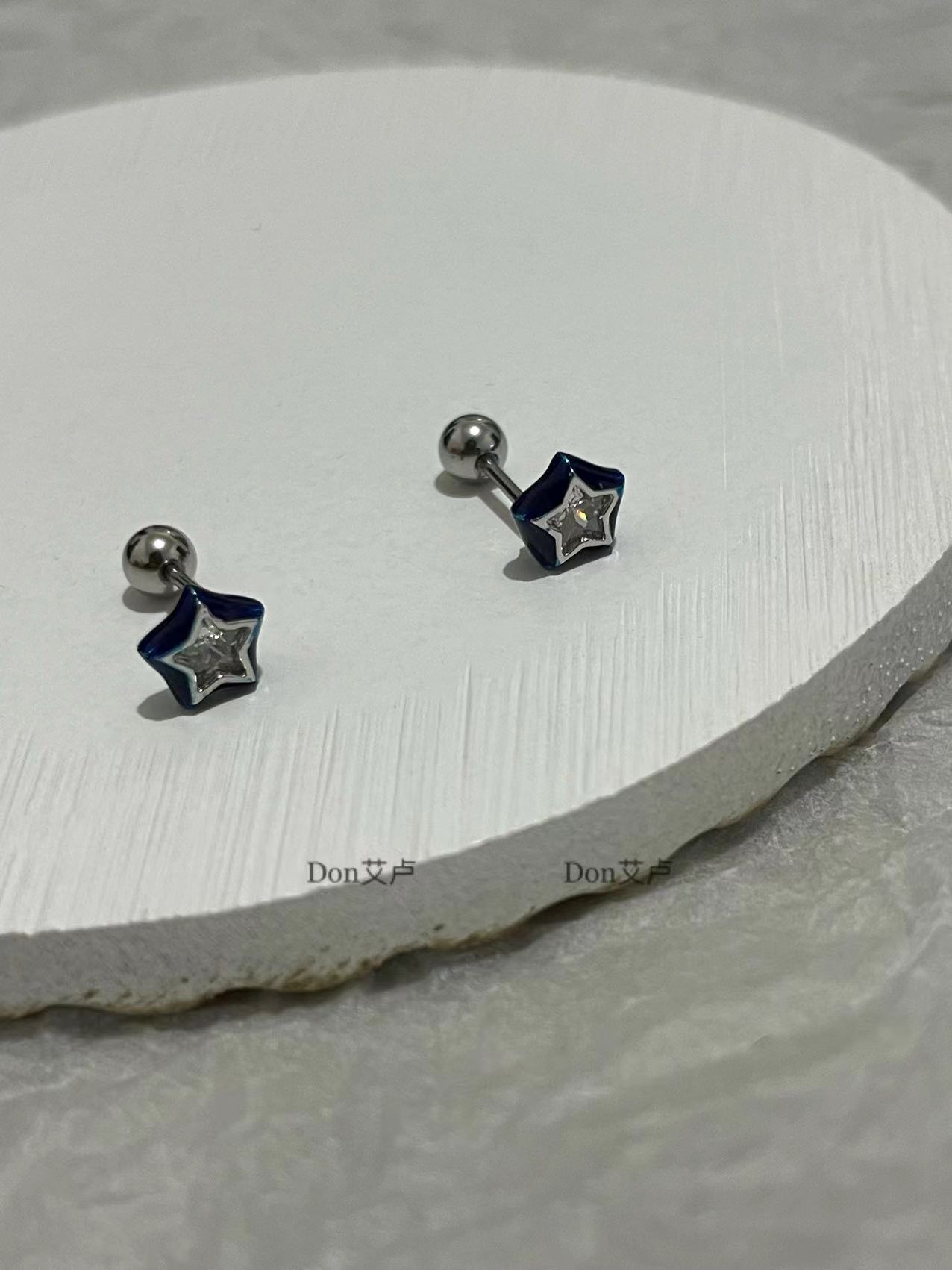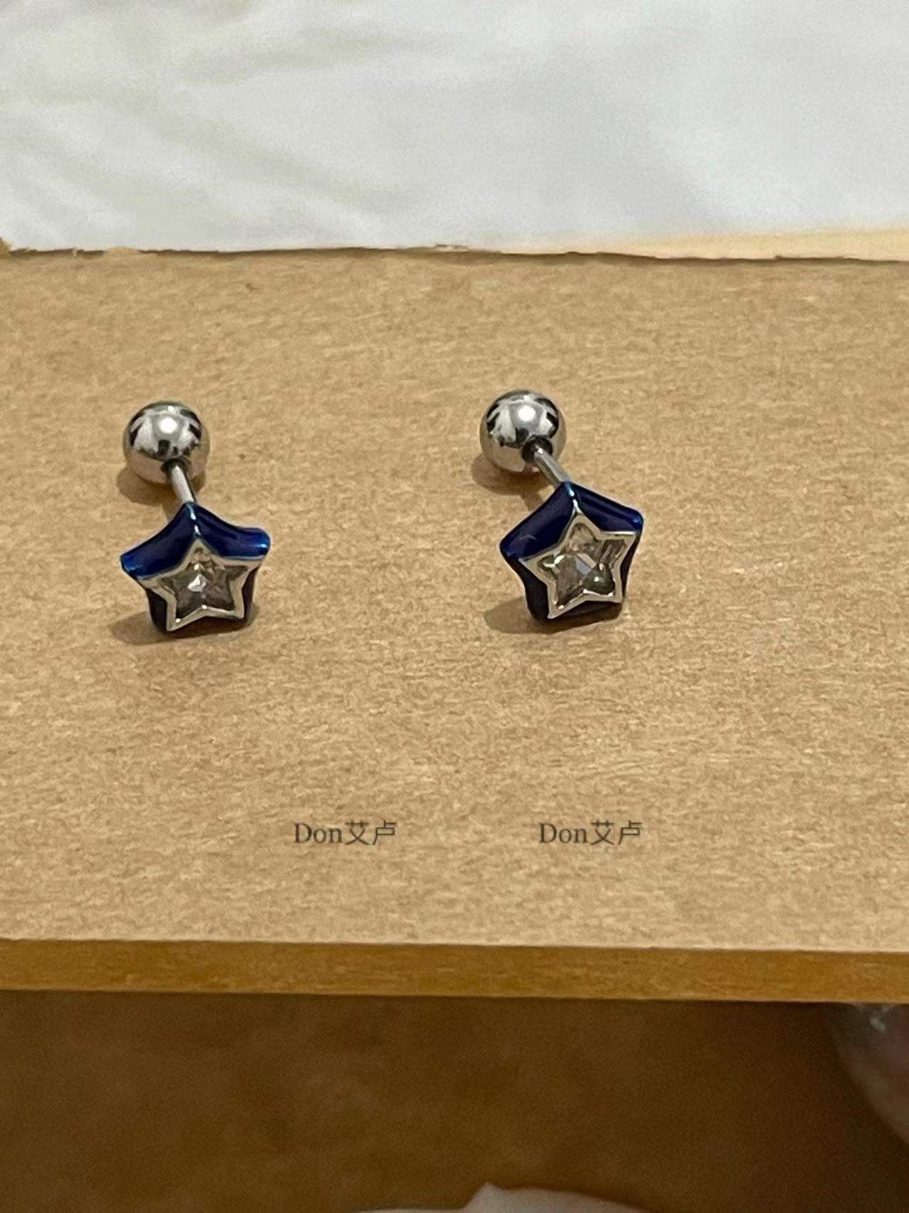 Pendiente con hebilla de tornillo de acero de titanio con forma de estrella de cinco puntas y gota de aceite azul, para mujer, dulce, fresco y atractivo, personalizado
