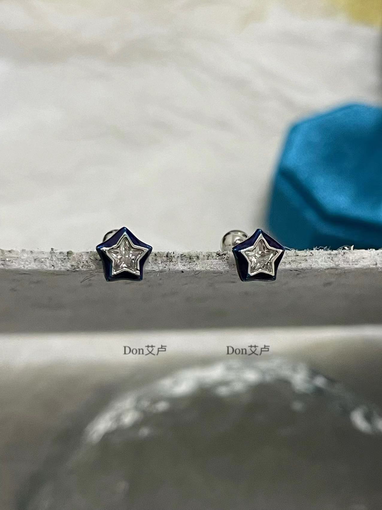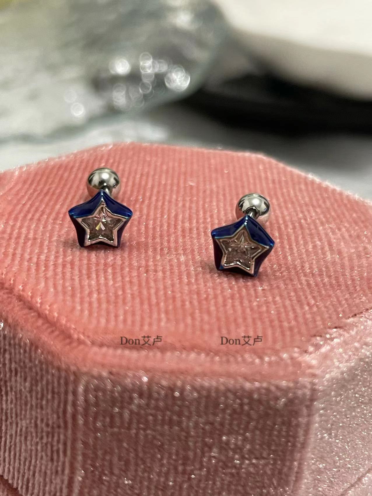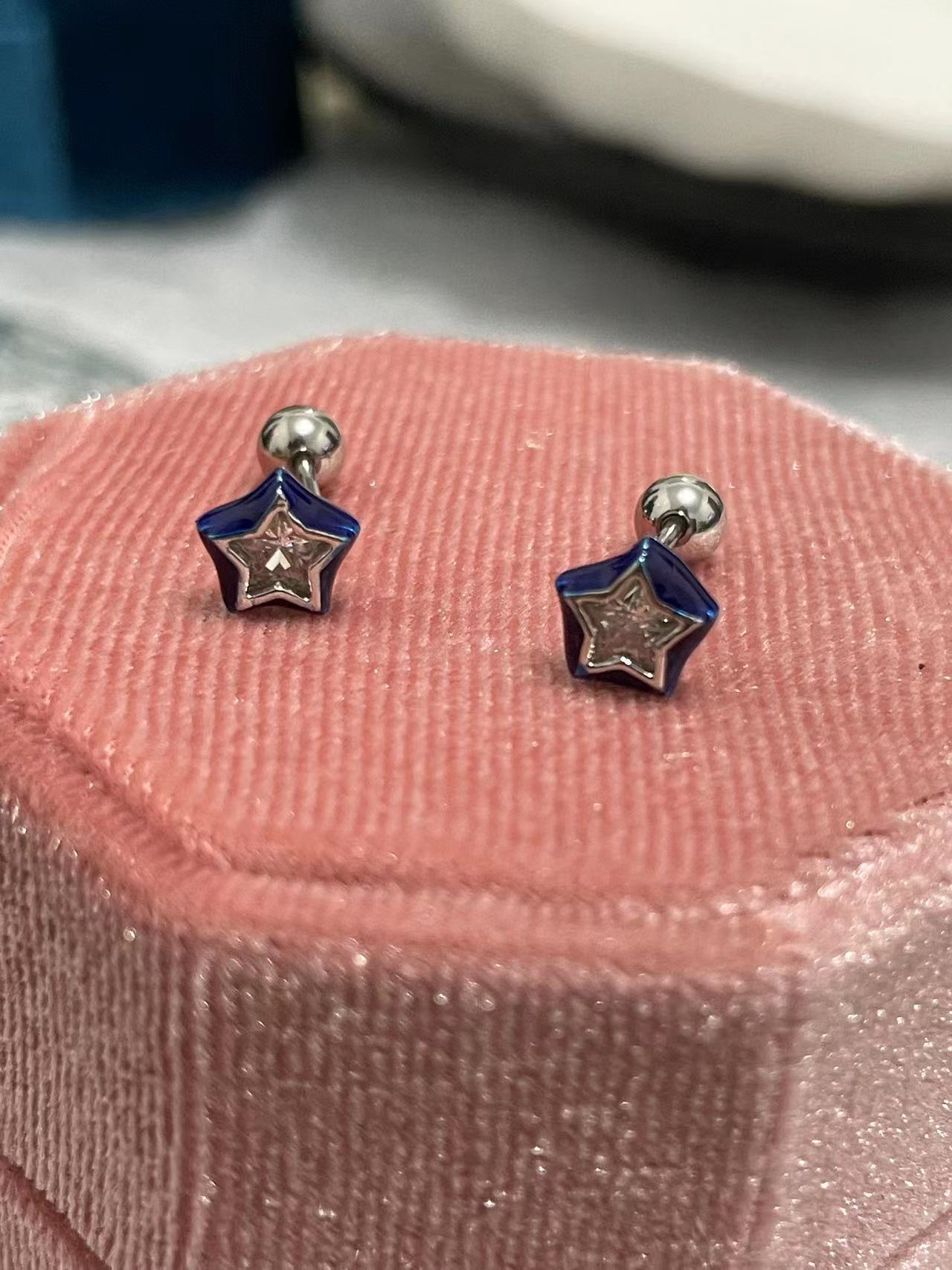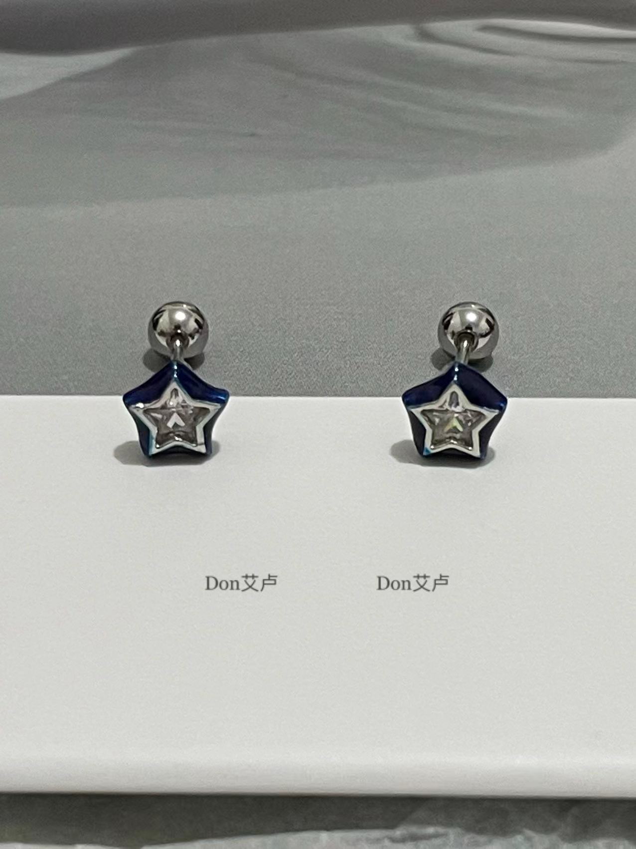 Pendiente con hebilla de tornillo de acero de titanio con forma de estrella de cinco puntas y gota de aceite azul, para mujer, dulce, fresco y atractivo, personalizado