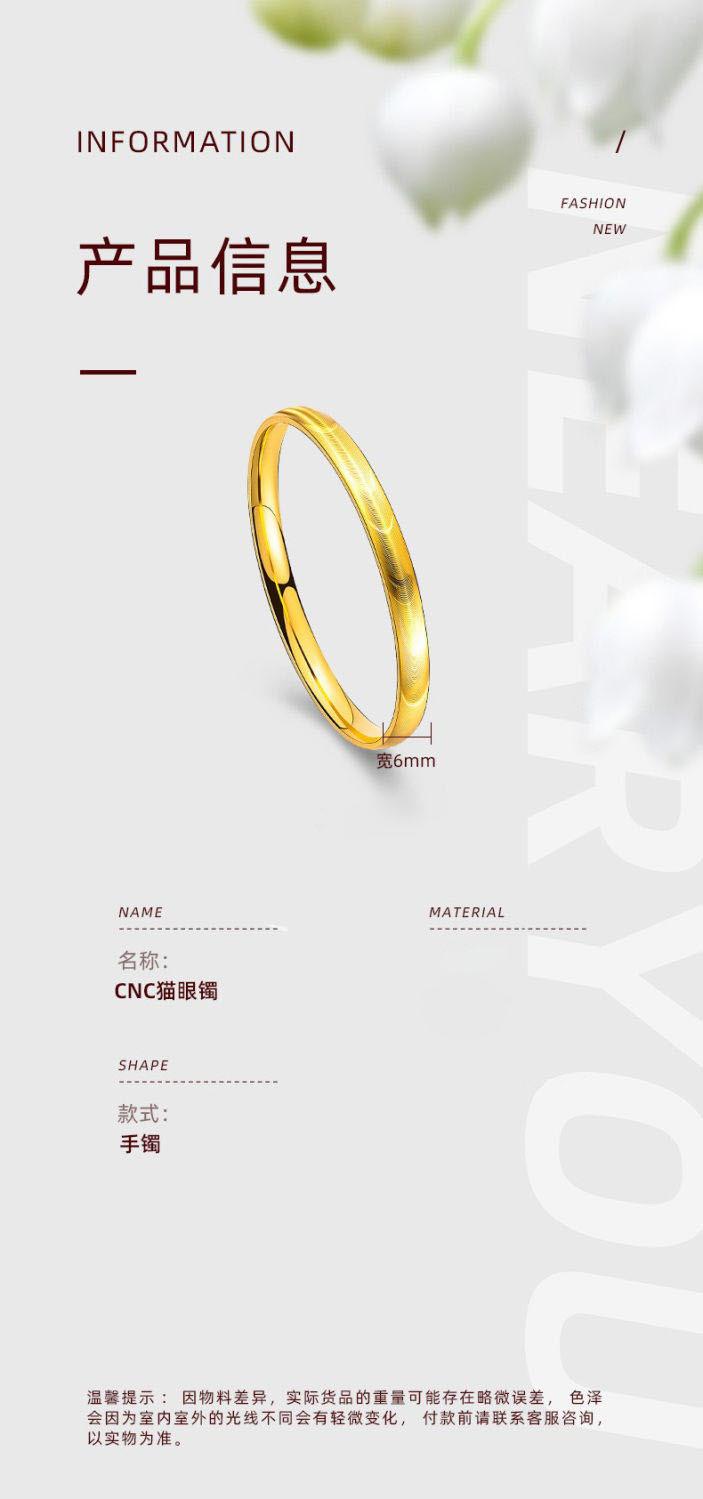 Pulsera boutique ojo de gato cnc para mujer pulsera tridimensional lisa de lujo ligero pulsera de moda popular pulsera brillante para regalo de novia