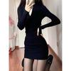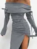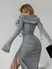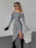 Vestido Europeo y Americano Gris de Punto sin Tirantes Vestido de Mujer Otoño/Invierno 2024 Ajustado Manga Trompeta Falda Base Cadera