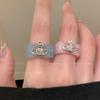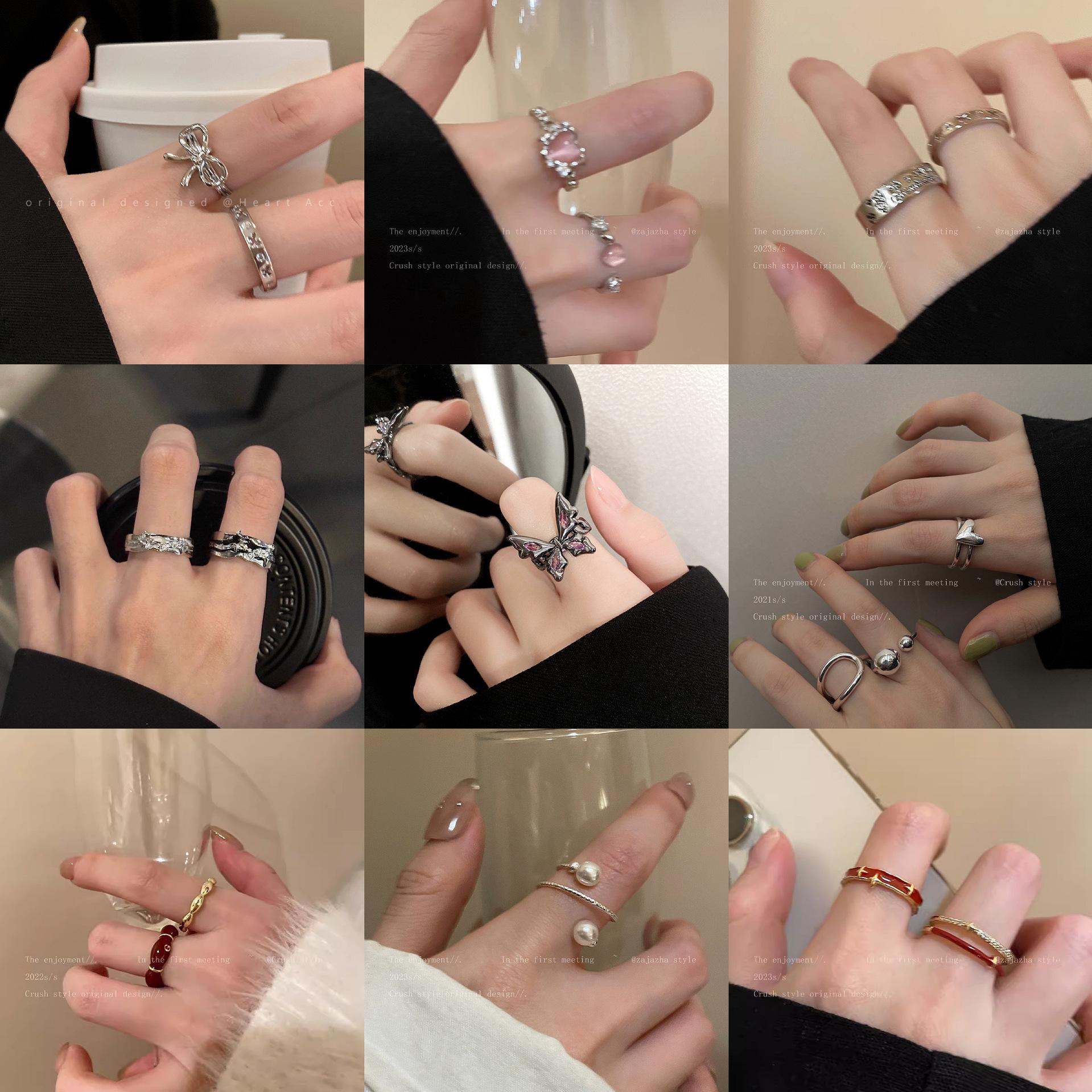 Bow line open ring, Hollow butterfly open ring, Letter style, Double girl ring, Dark starburst ring, Pure whit...