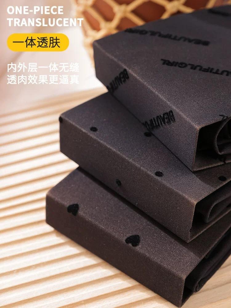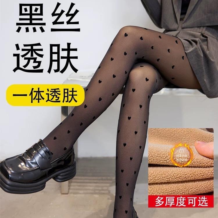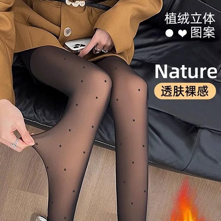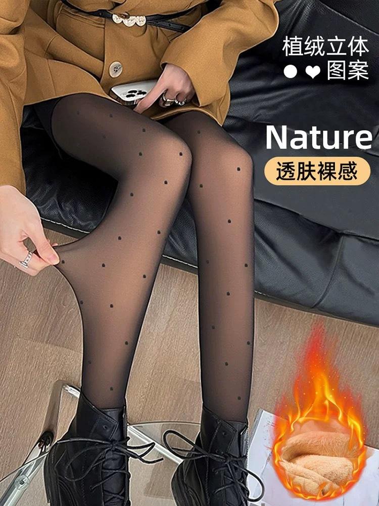 Artefacto de pierna ligera de seda negra con puntos ondulados, pantalones transparentes de una sola capa para mujer, leggings negros sexys, calcetines con forro polar para otoño e invierno.