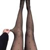 Pantyhose de seda negra transparente con estampado de ondas y lunares, amor, de una sola capa, flocado, negro, sexy, forrado de vellón, cálido, medias gruesas