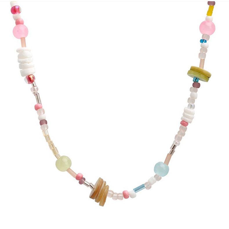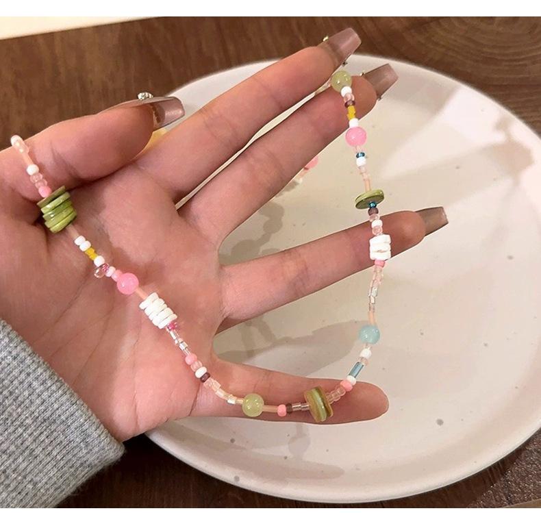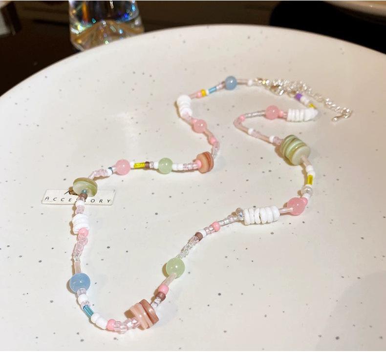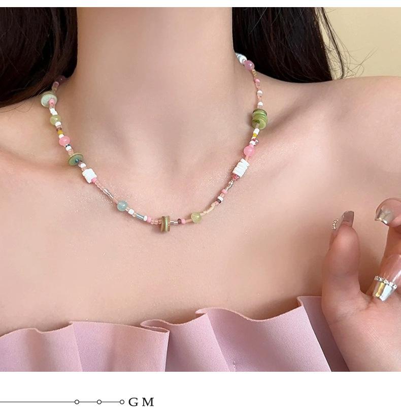Collar de cuentas coloridas de estilo frío para mujer, ligero, de lujo, de nicho, de moda, elegante, combinable con todo, dulce, simple, con personalidad, cadena de clavícula a la moda.
