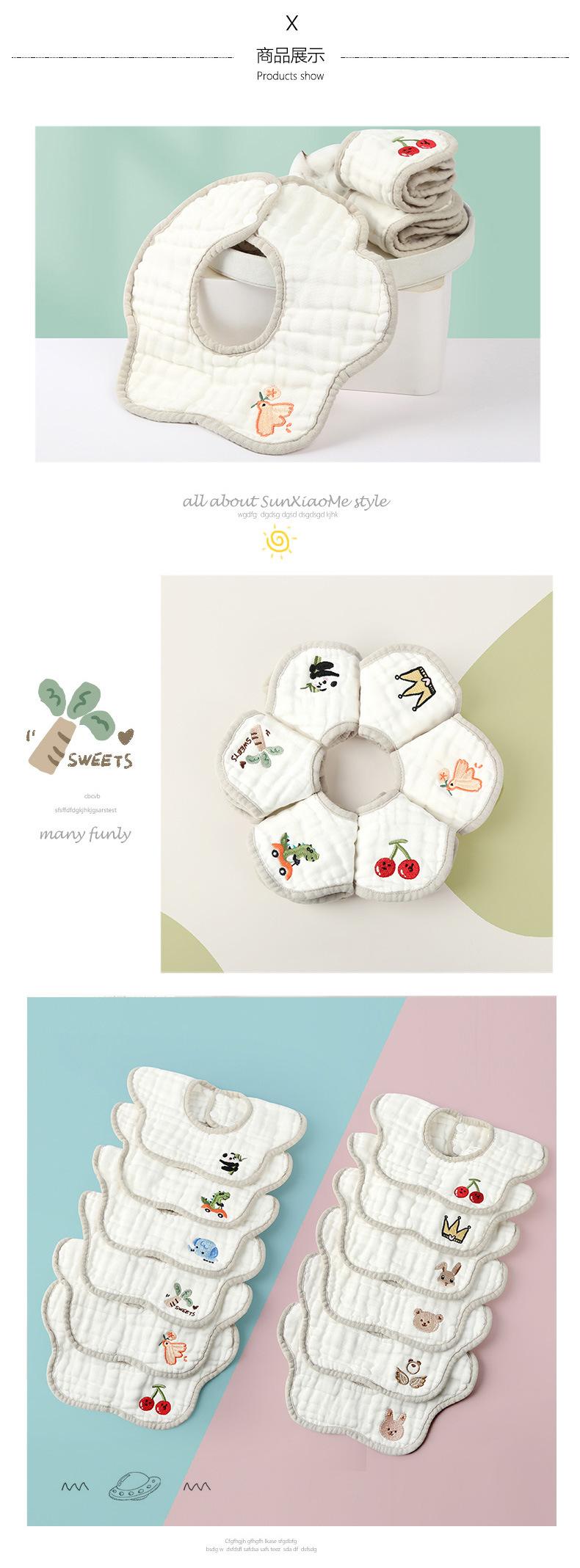 Babero de Gasa de Algodón Puro de 8 Capas con Pétalos Bordados para Bebé, Toalla para la Baba de Dibujos Animados para Recién Nacido, Babero Anti-Regurgitación, Espesor de Ocho Capas