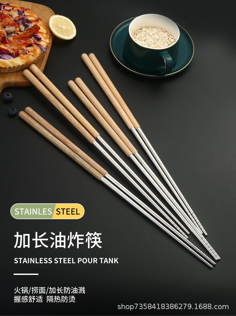 Compra Palillos de acero inoxidable 304, palillos fritos, palillos largos, palillos domésticos para ollas calientes, palillos de madera maciza antideslizantes y antiescaldaduras, palillos alargados, venta al por mayor al por mayor en Joom.pro