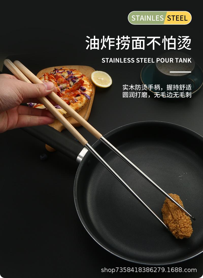 Palillos de acero inoxidable 304, palillos fritos, palillos largos, palillos domésticos para ollas calientes, palillos de madera maciza antideslizantes y antiescaldaduras, palillos alargados, venta al por mayor