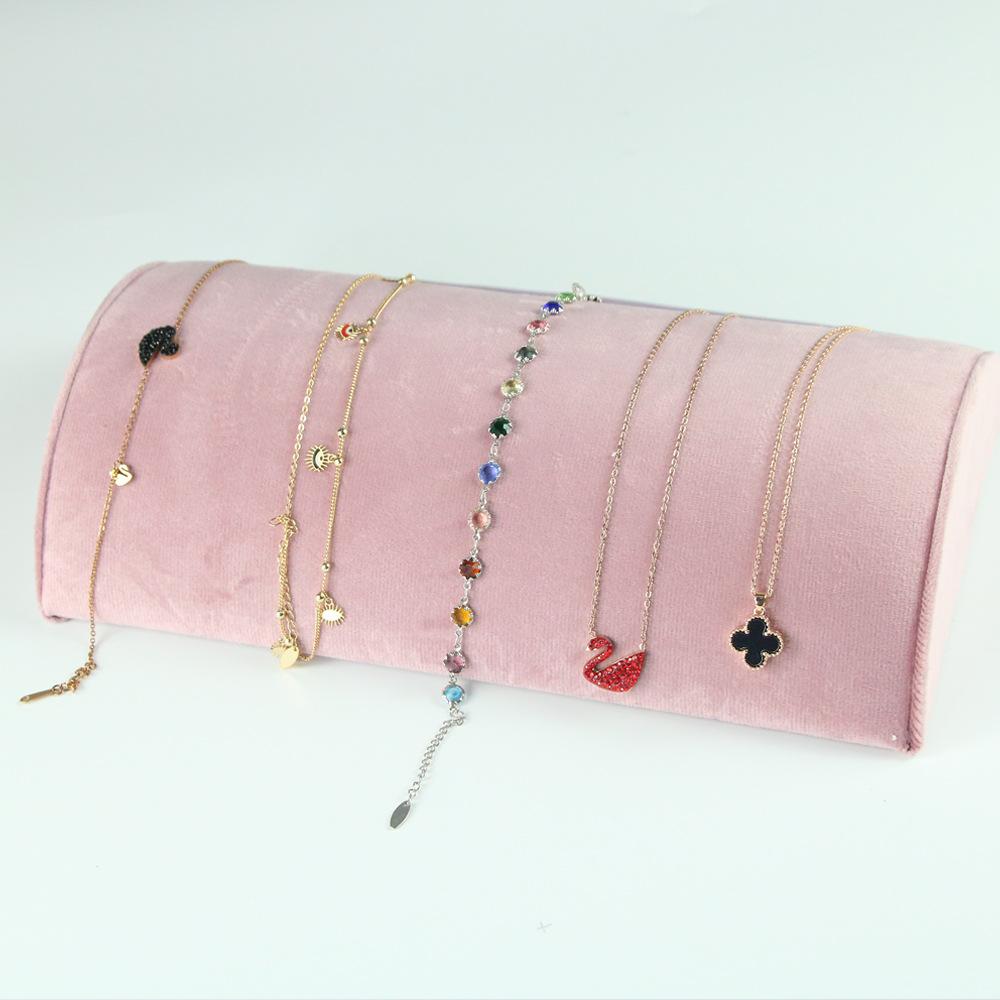Exhibidor de Joyería Estante de Exhibición Terciopelo Rosa Ventana Collar Anillo Accesorios de Exhibición de Joyería Accesorios de Exhibición de Joyería de Alta Gama