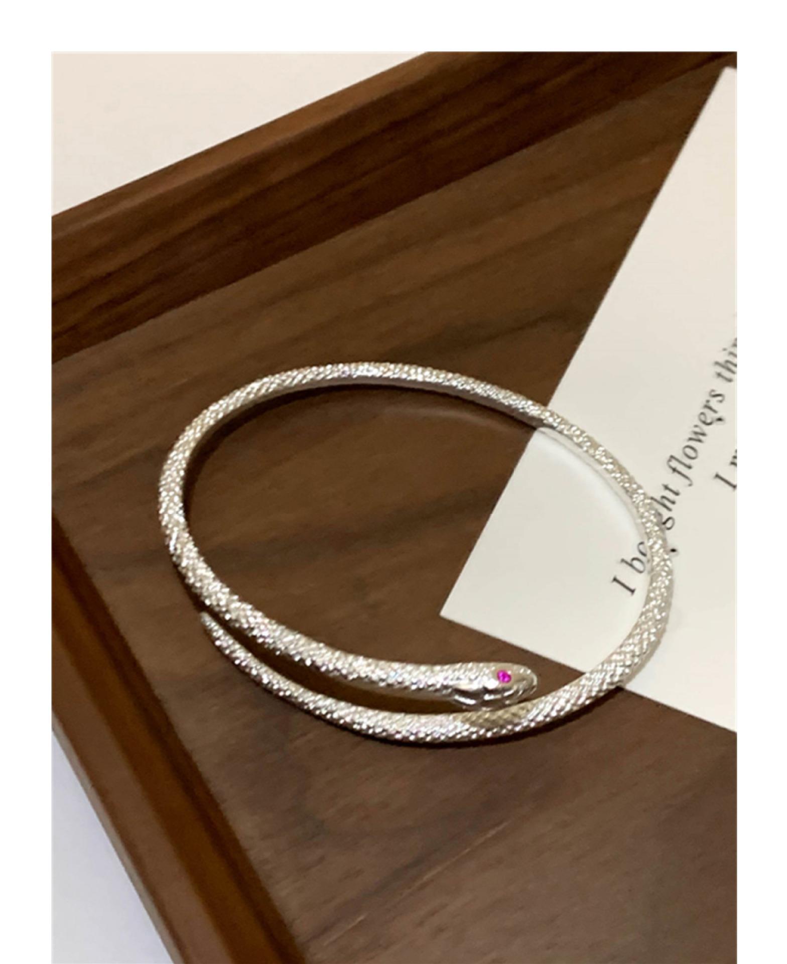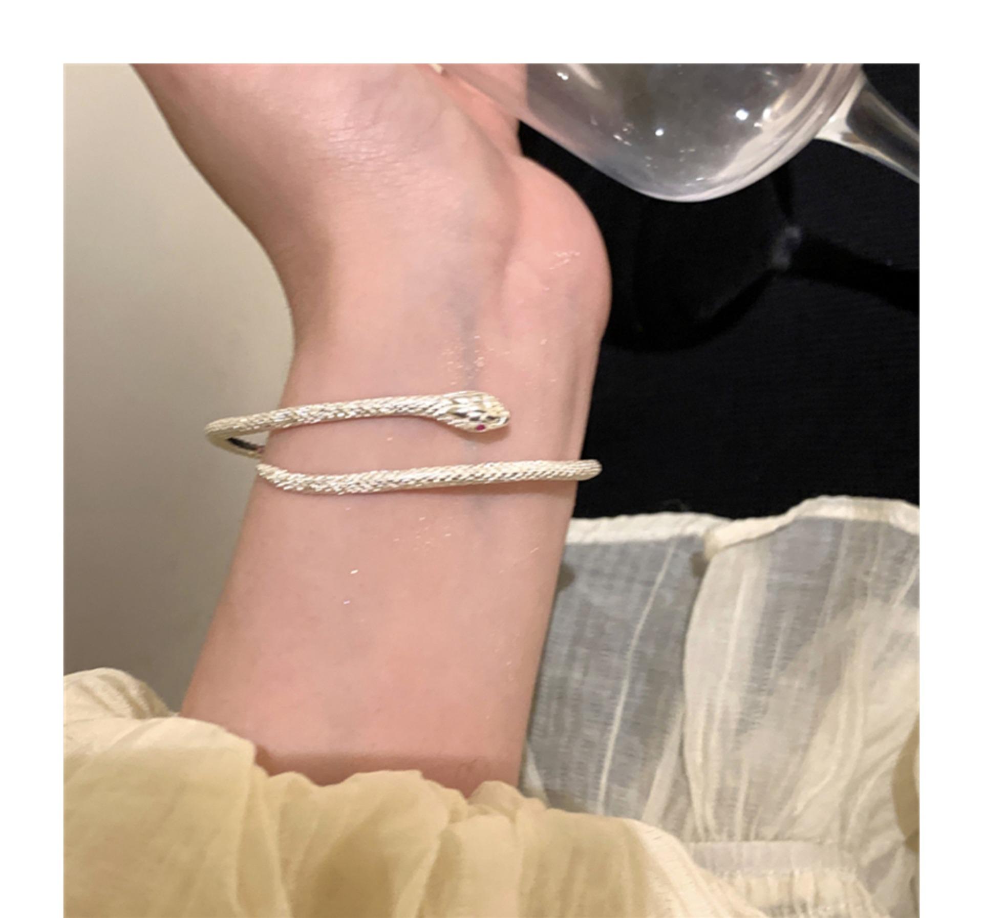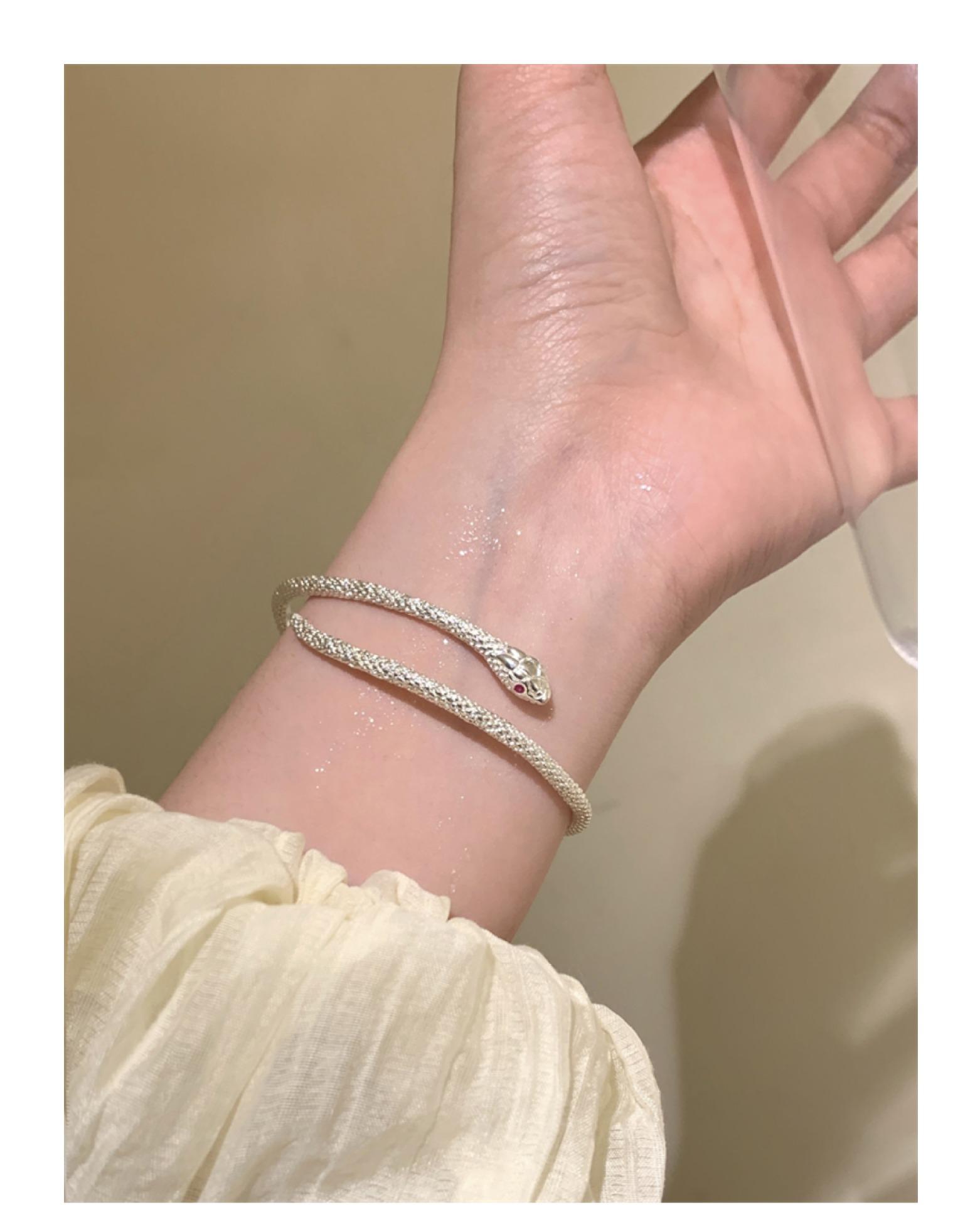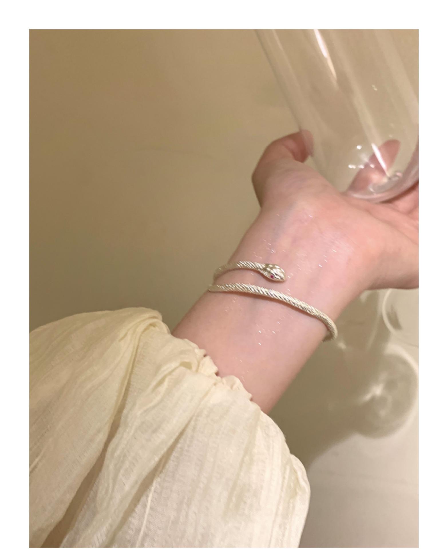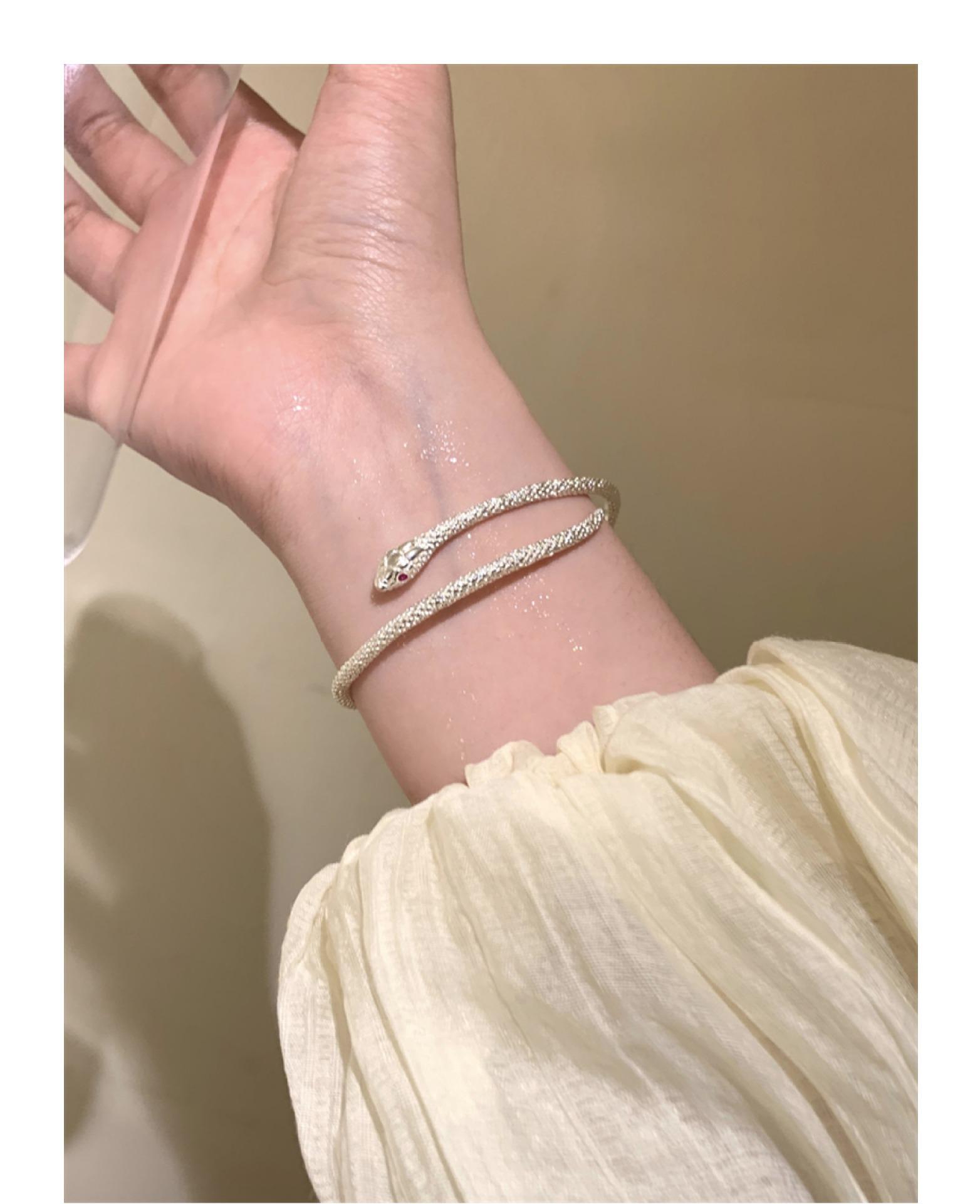 Pulsera plateada de serpiente enrollada, diseño de nicho de lujo ligero, sentido de la personalidad, pulsera exquisita de estilo frío, forma de serpiente