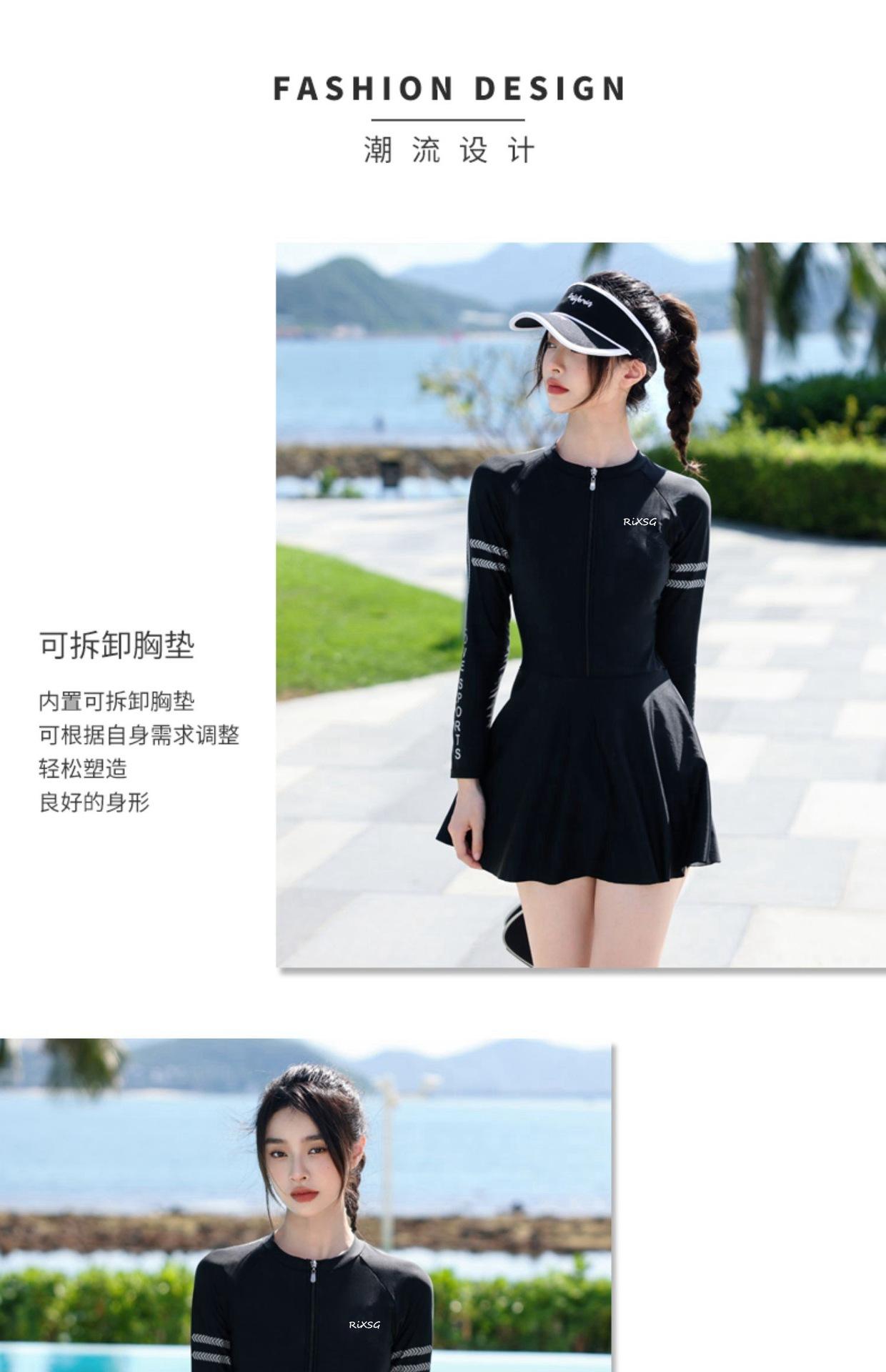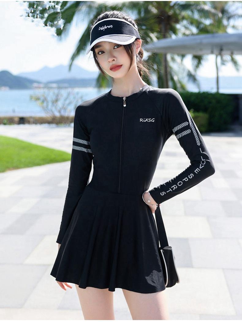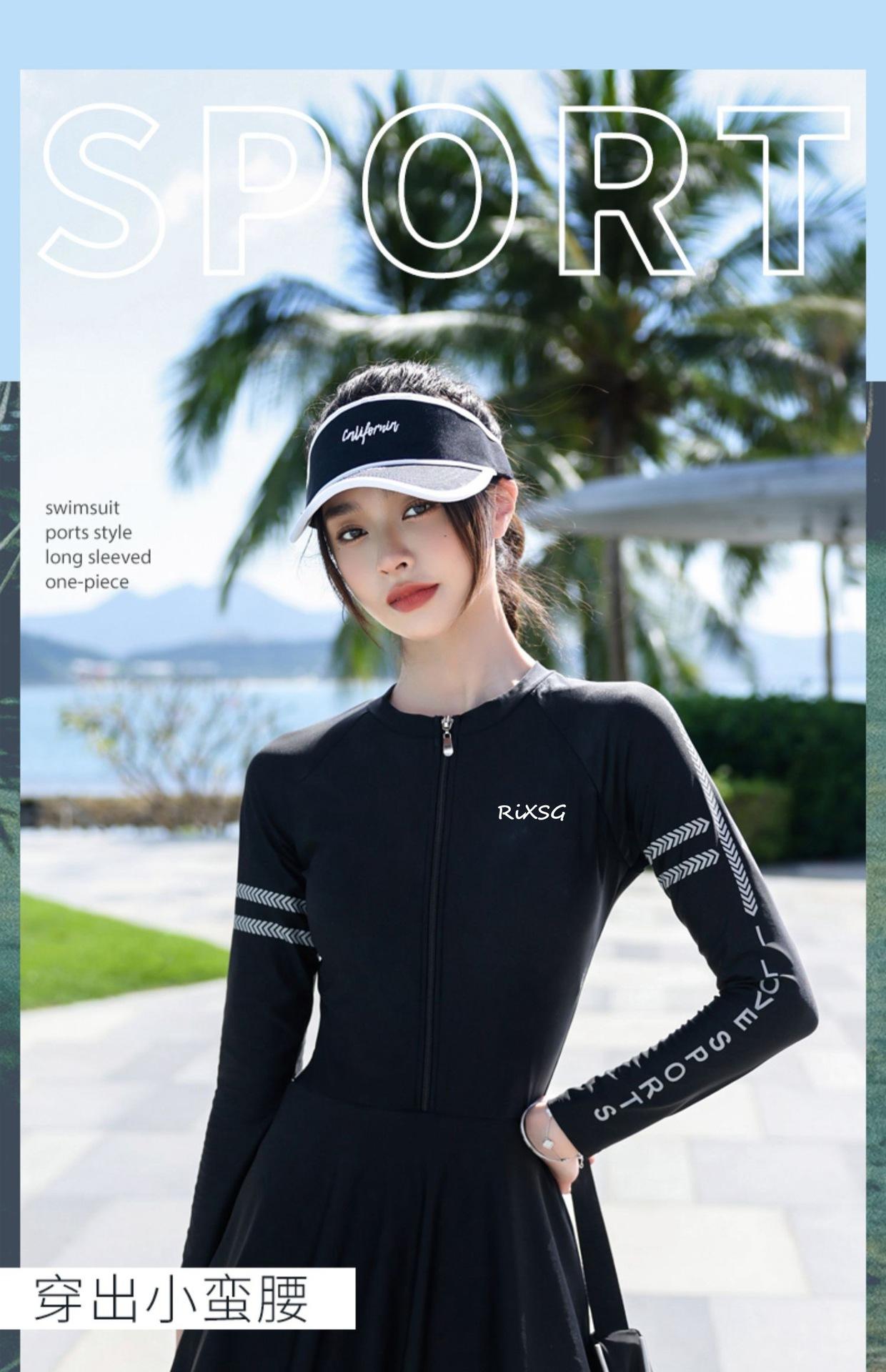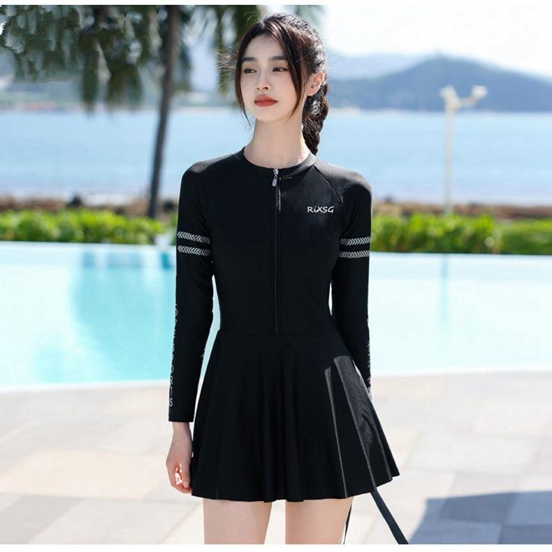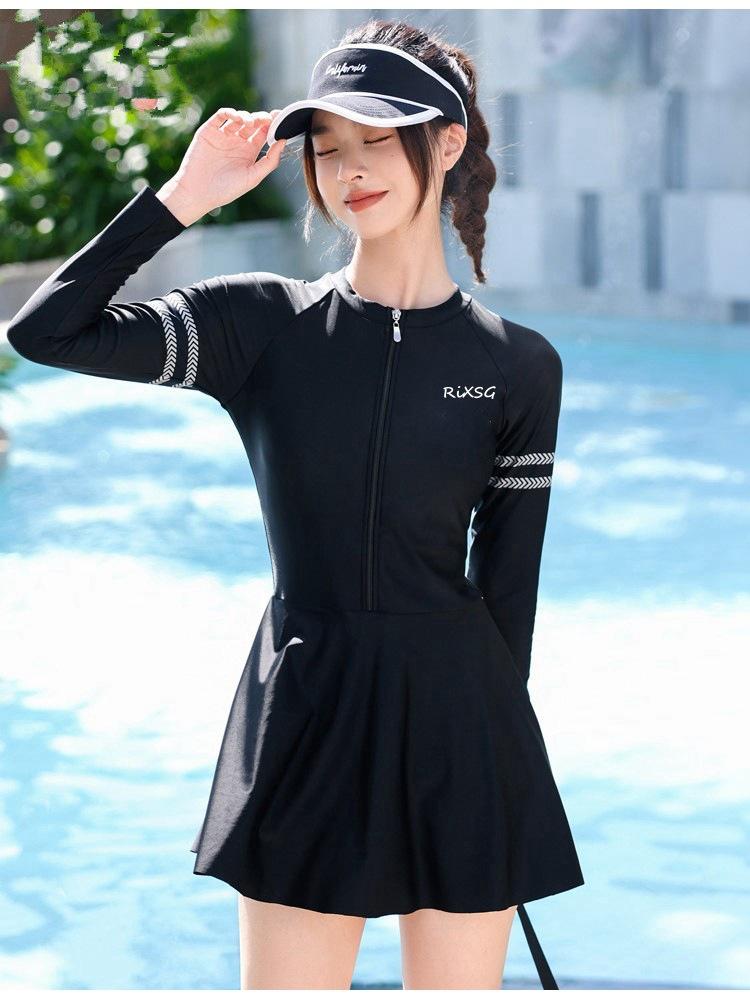Traje de Baño Nuevo 2023 para Mujer Dividido de Ángulo Plano Conservador Adelgazante Cubre Vientre Deportivo Manga Larga Traje de Baño de Entrenamiento para Aguas Termales para Estudiantes