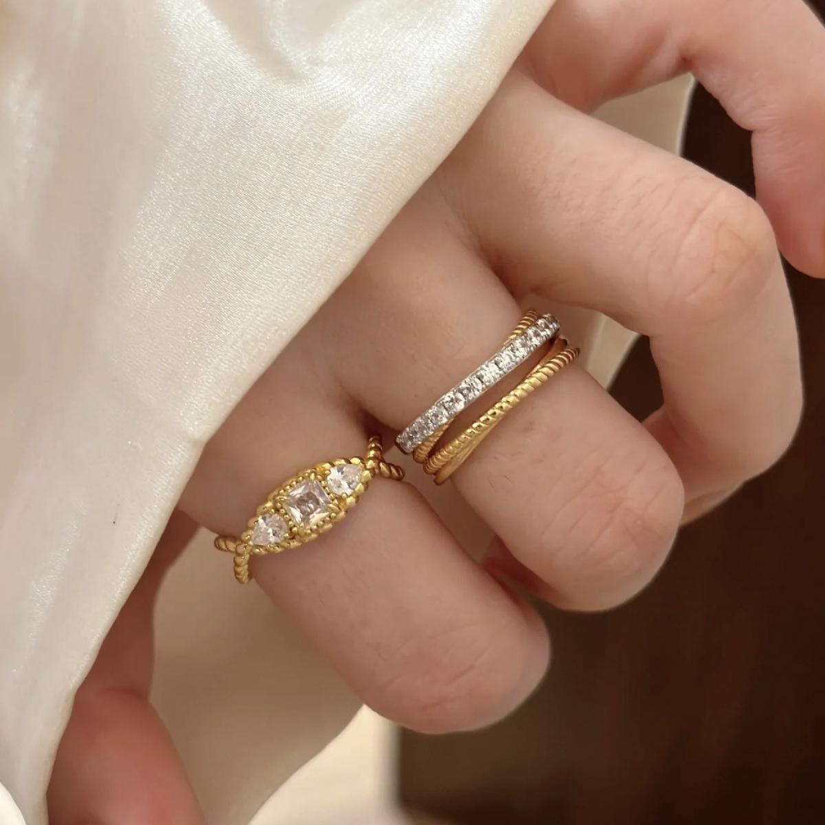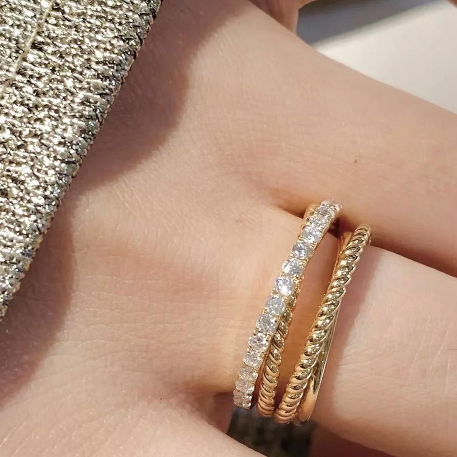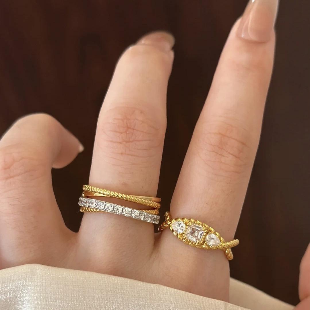 Anillo Retro y Antiguo de Doble Capa con Cruz Incrustada de Diamantes Rai Anillo Twist de Diseño Nicho Nuevo de Lujo Ligero de Alta Gama