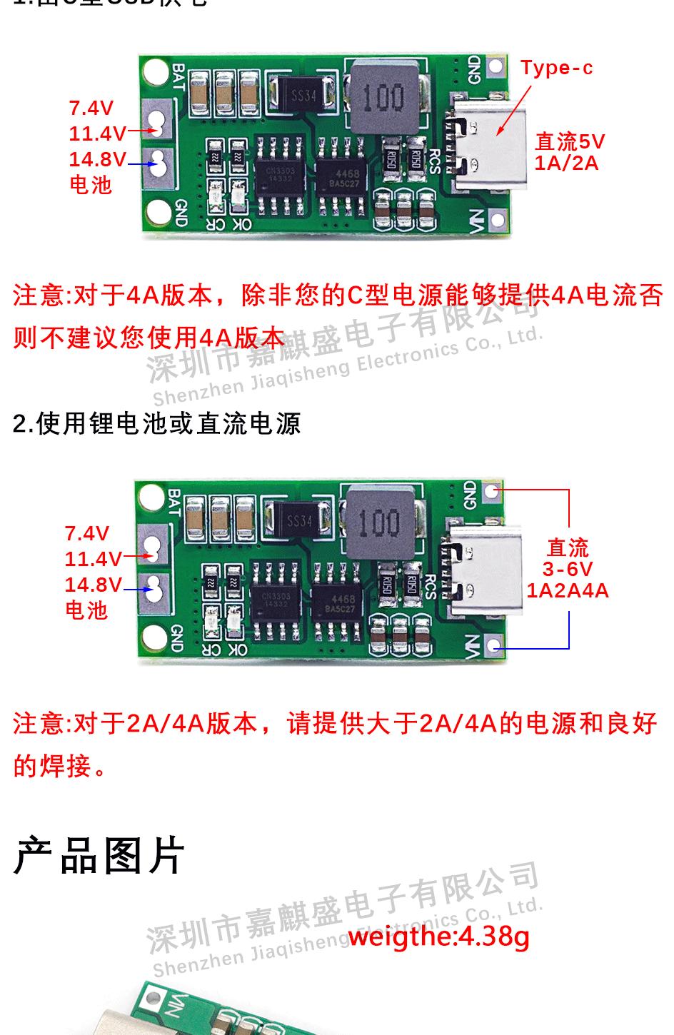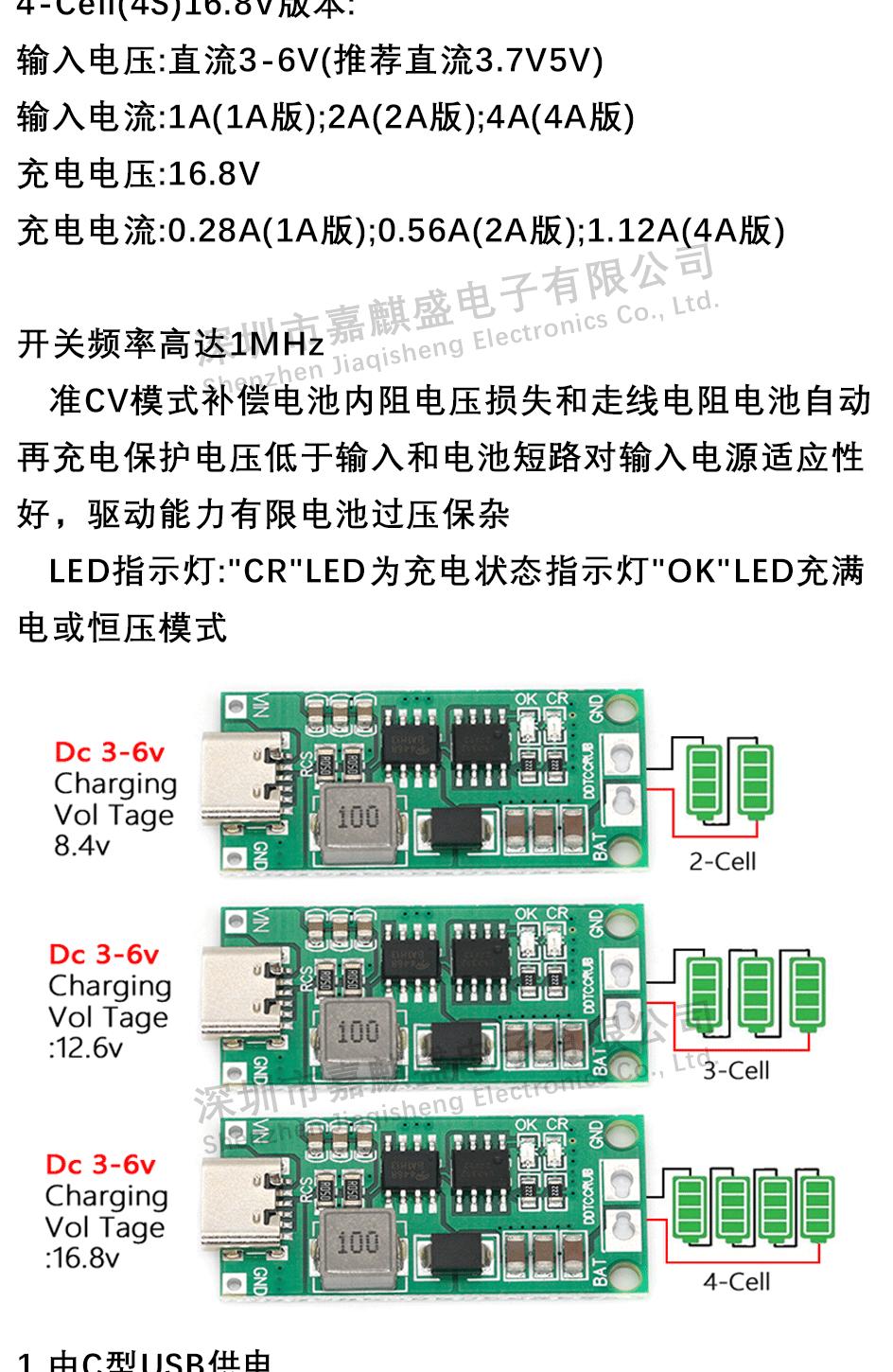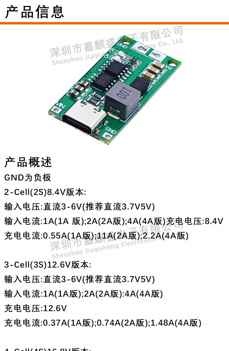 Módulo elevador 2S/3s/4S 1-4A módulo de carga de batería de polímero de litio polímero de litio ion DC 3-6V
