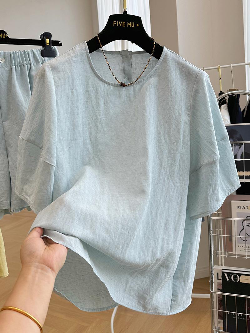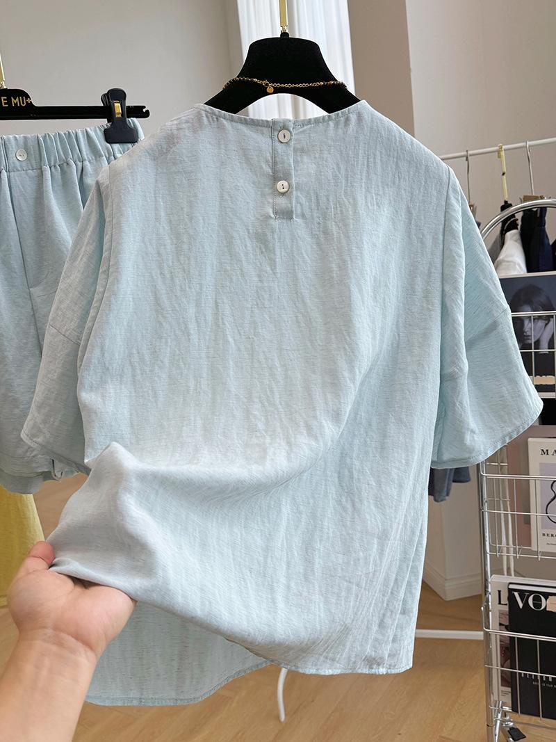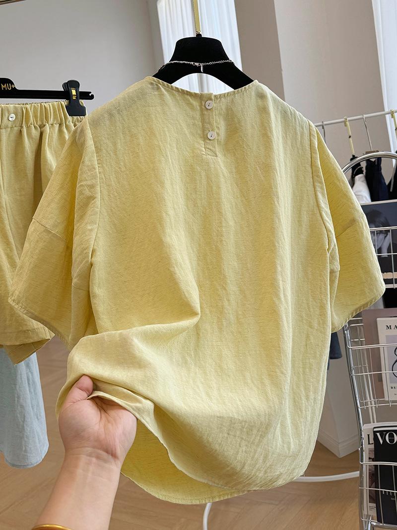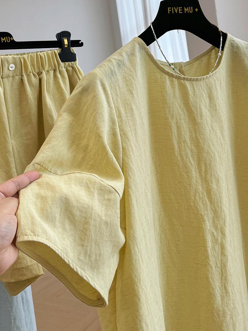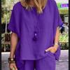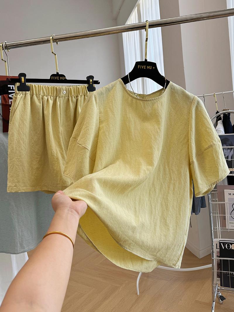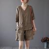 Camisa de Lino de Manga Corta Shorts Traje de Dos Piezas a la Moda Set de Ropa Elegante Fina de Verano para Mujer