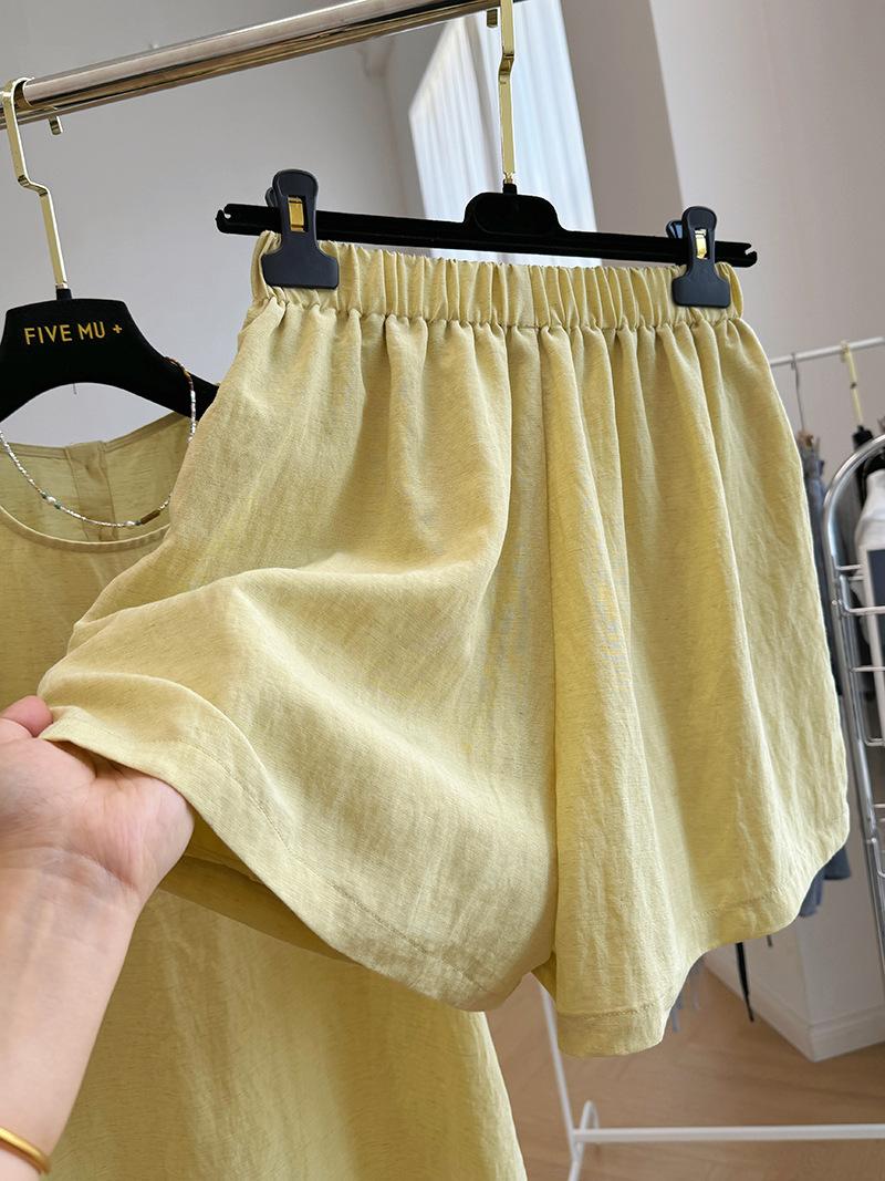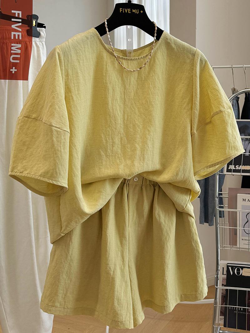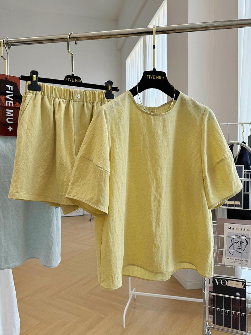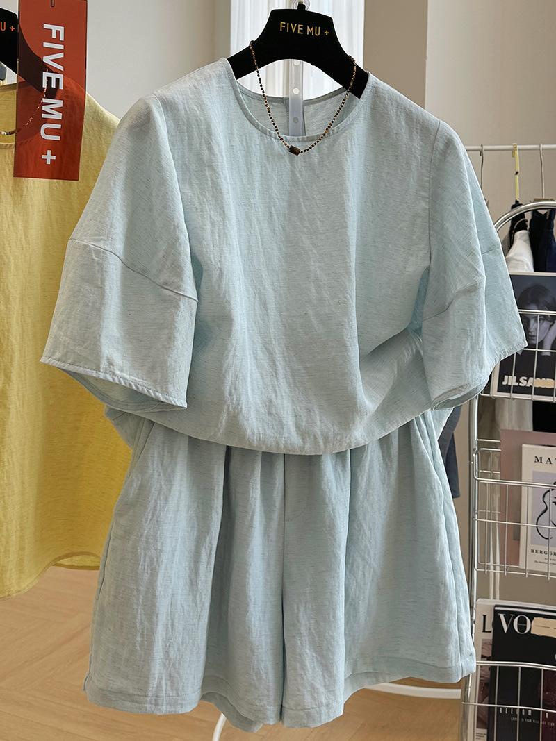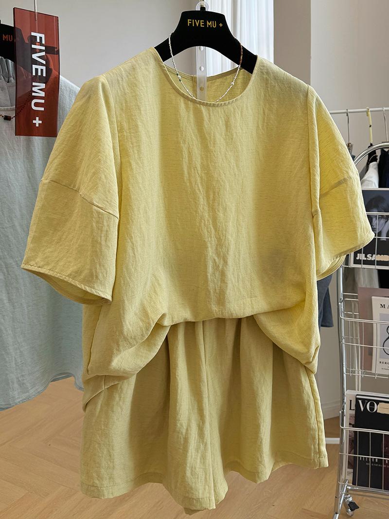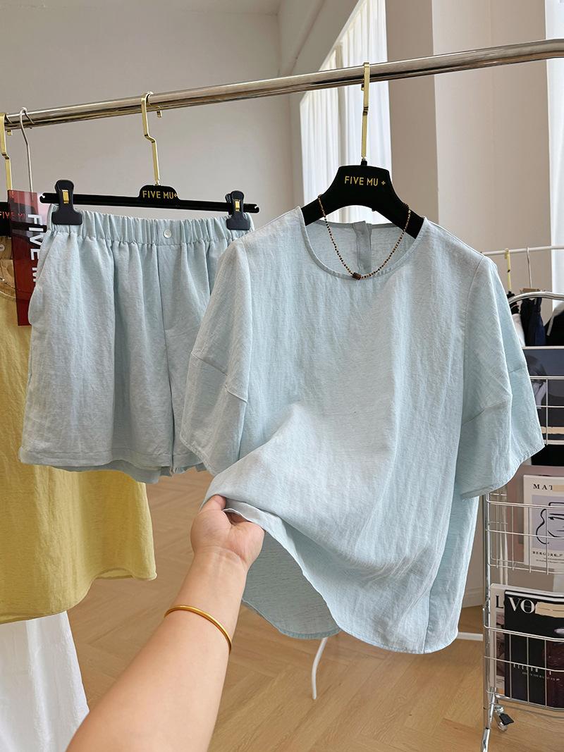 Camisa de Lino de Manga Corta Shorts Traje de Dos Piezas a la Moda Set de Ropa Elegante Fina de Verano para Mujer