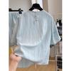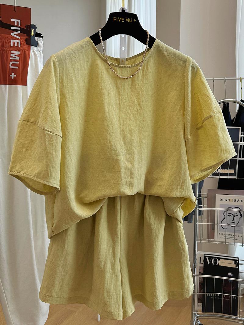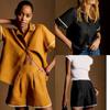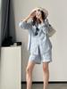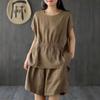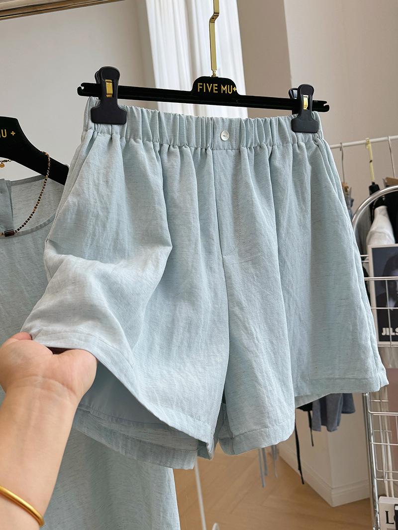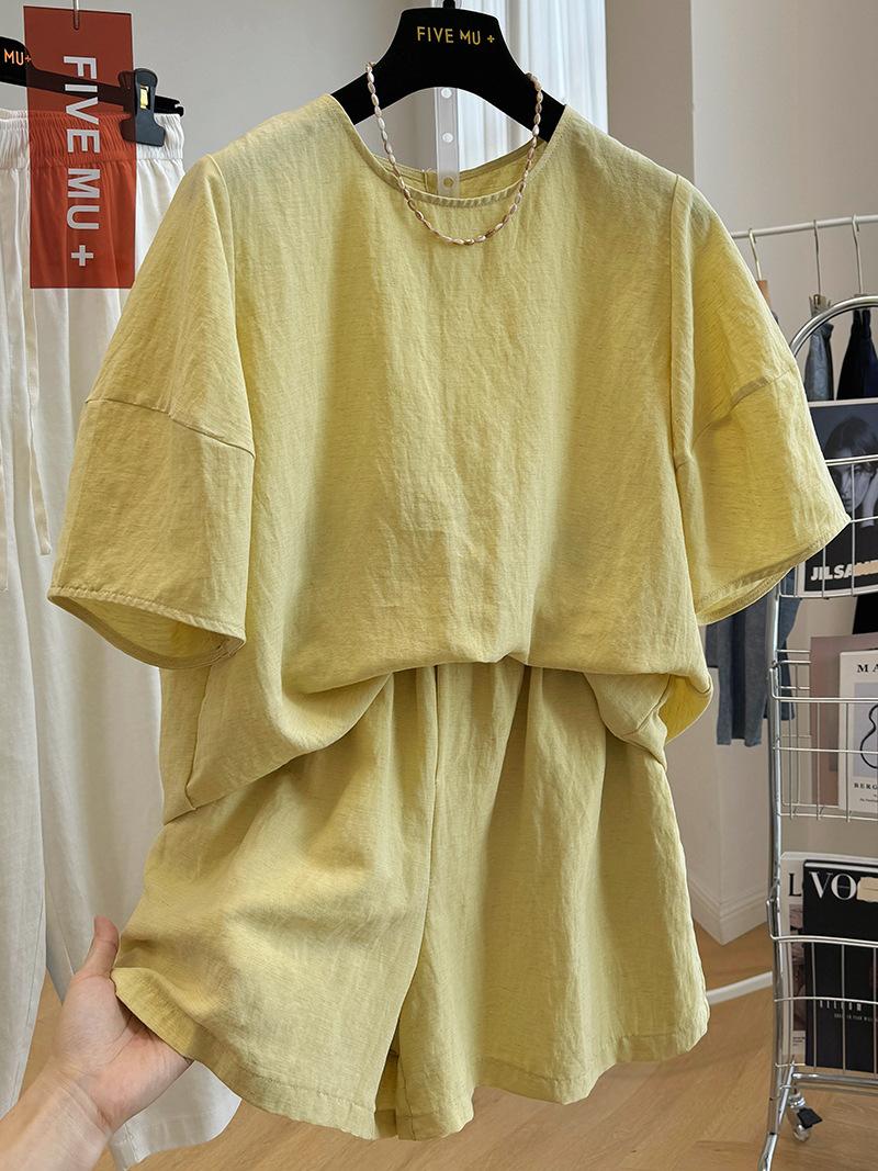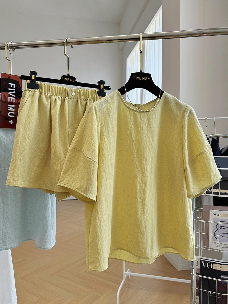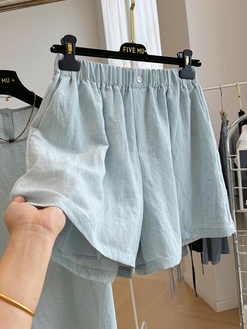 Camisa de Lino de Manga Corta Shorts Traje de Dos Piezas a la Moda Set de Ropa Elegante Fina de Verano para Mujer