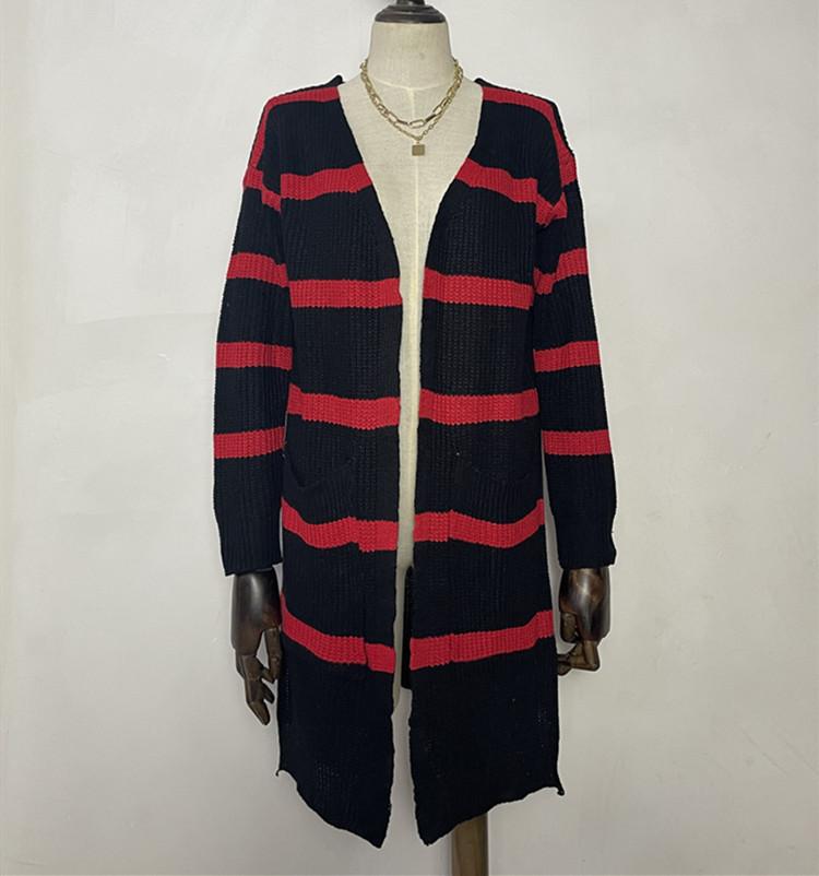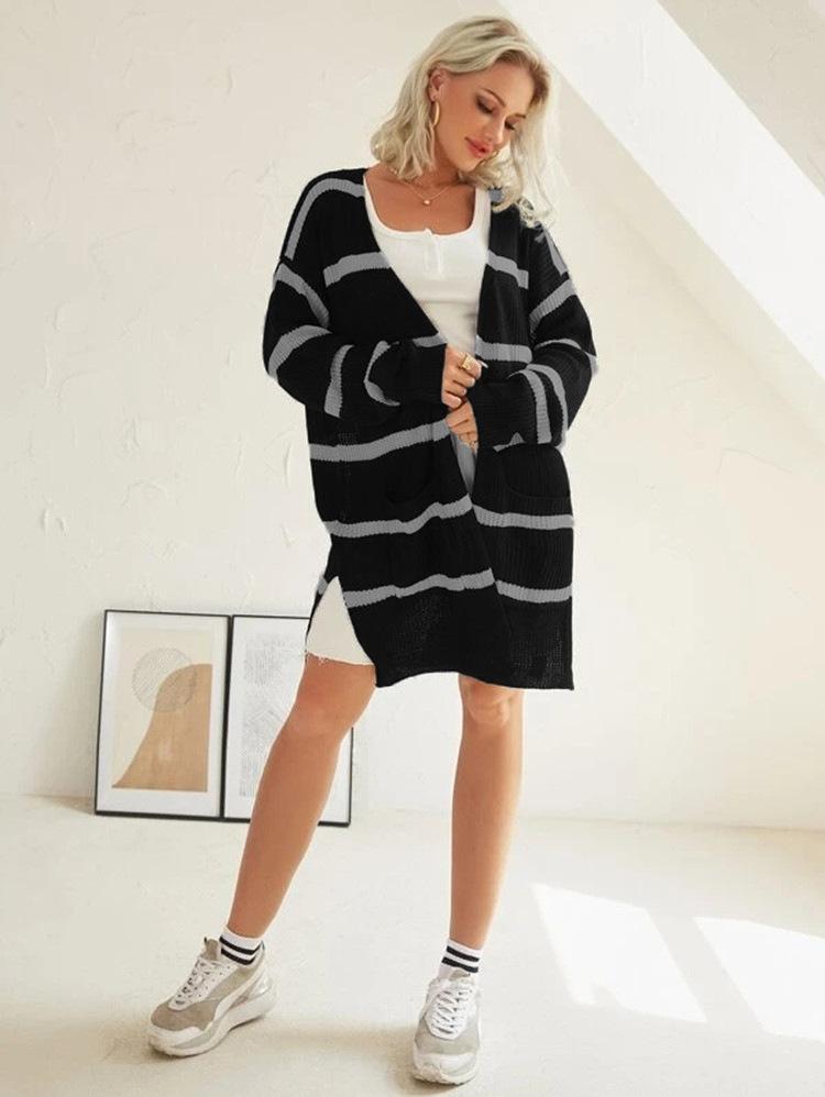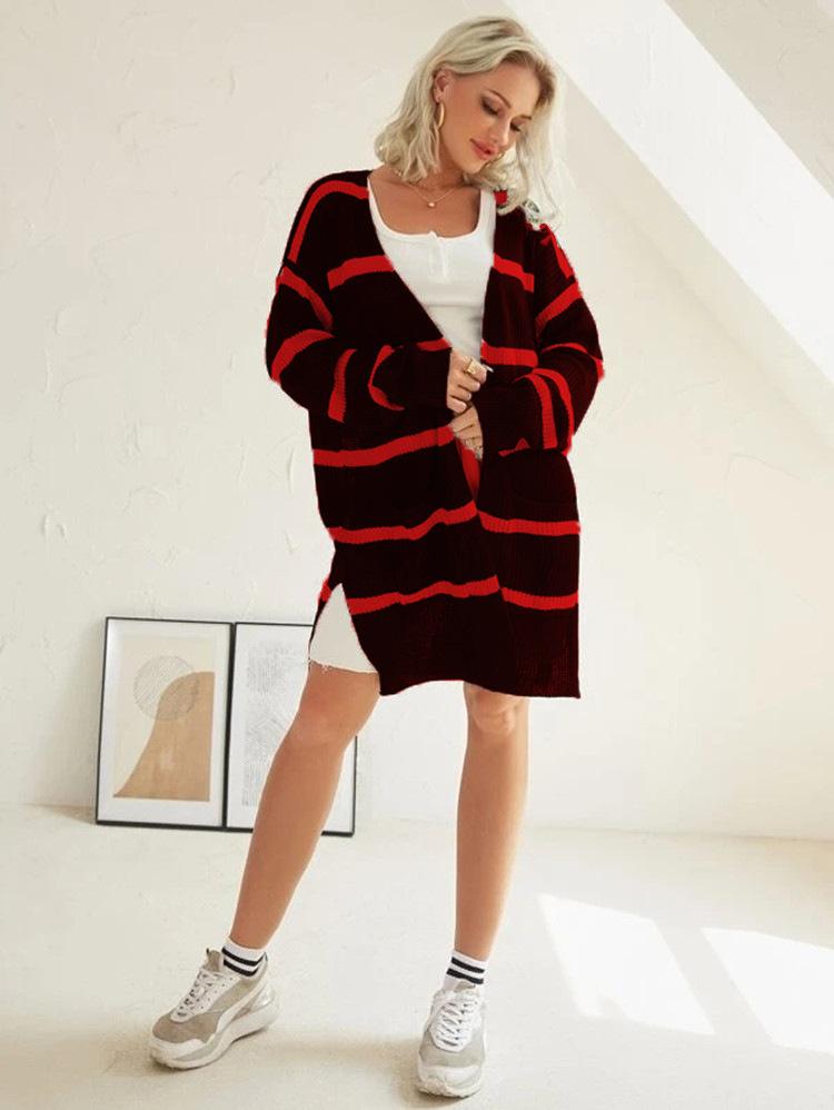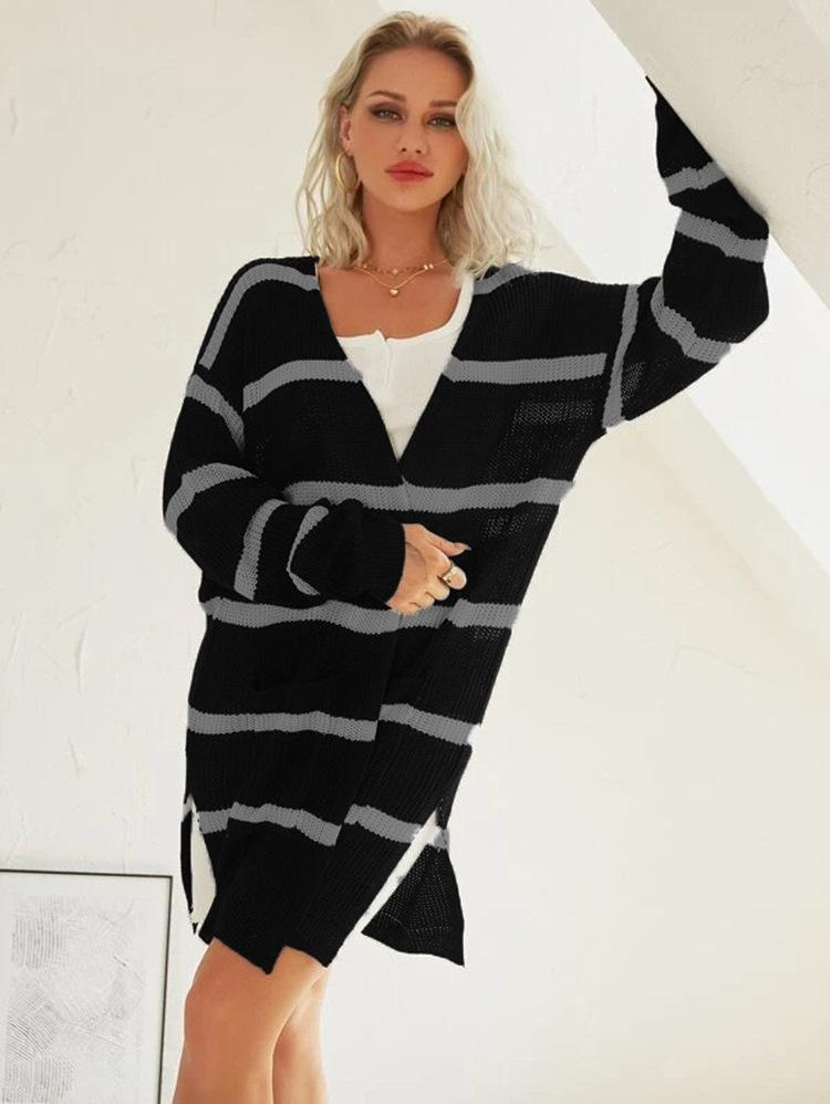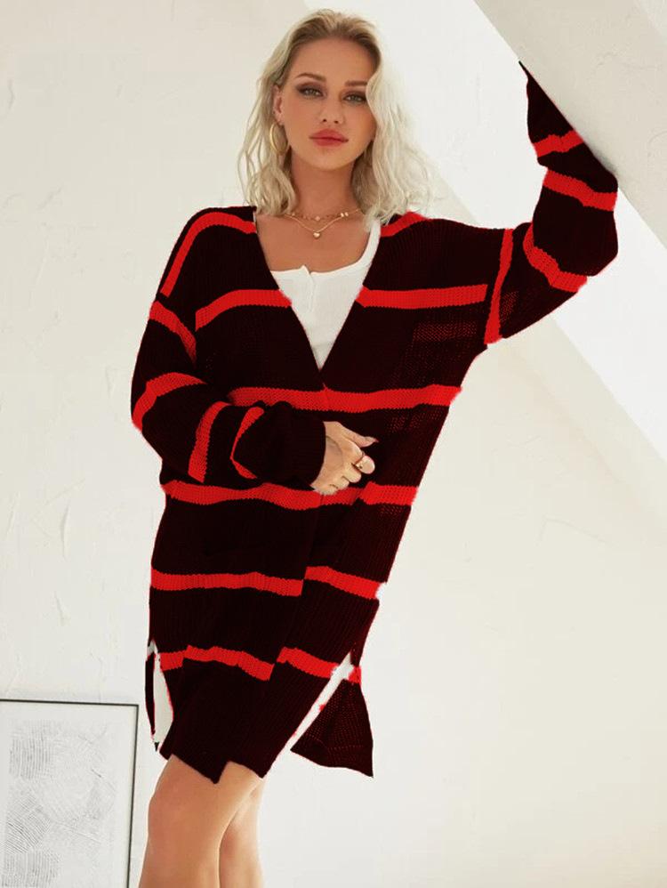 Suéter de punto a rayas de manga larga con cuello en V para mujer, cárdigan de punto de talla grande, nuevo, de comercio exterior europeo y americano, para otoño e invierno