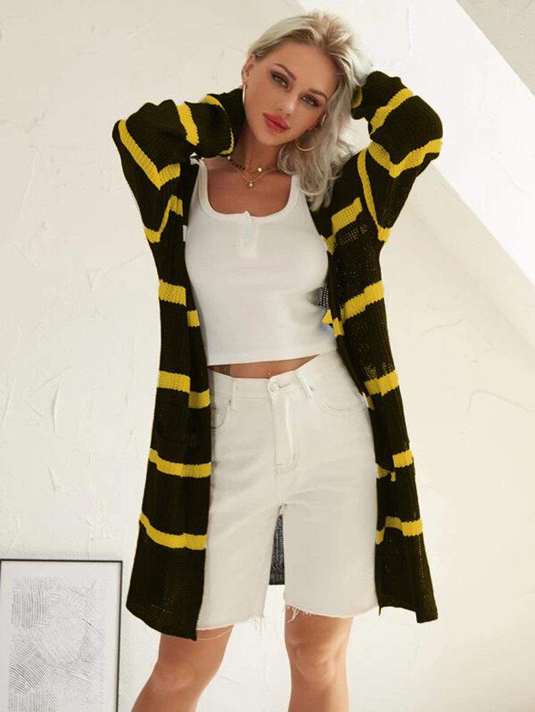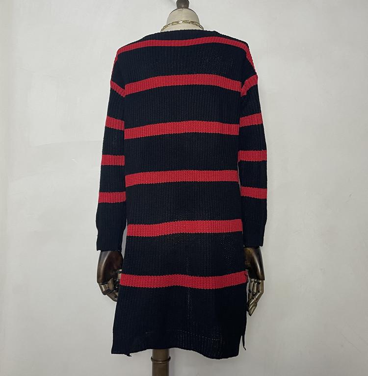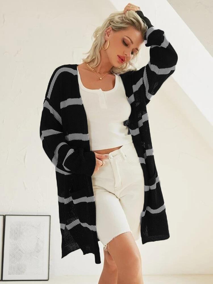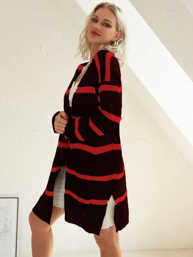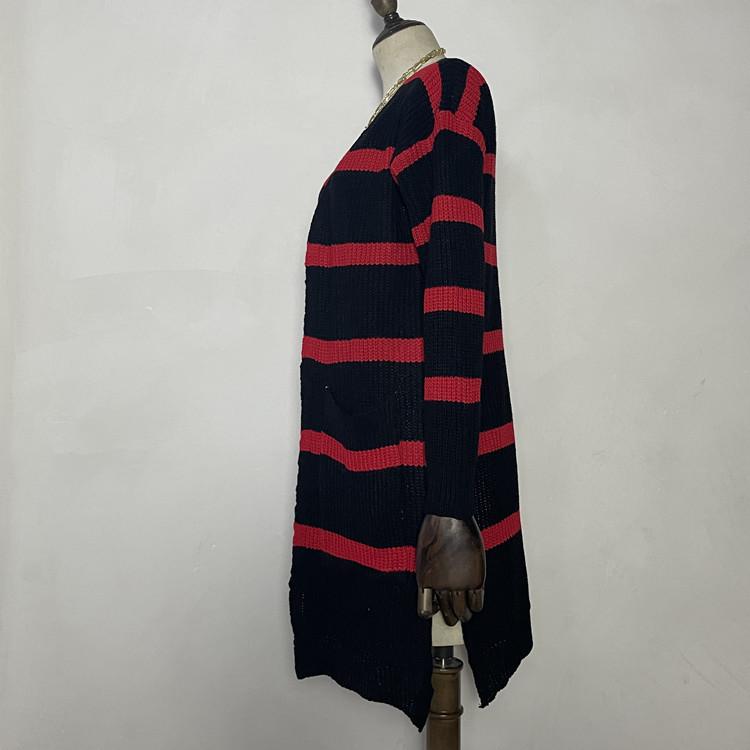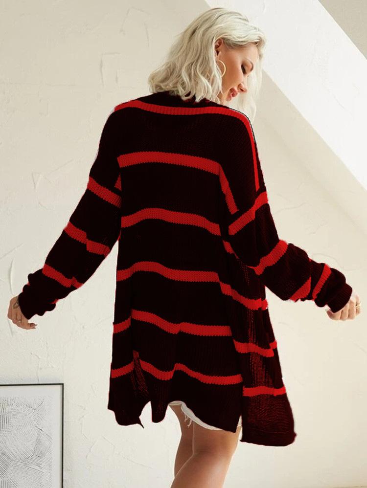 Suéter de punto a rayas de manga larga con cuello en V para mujer, cárdigan de punto de talla grande, nuevo, de comercio exterior europeo y americano, para otoño e invierno