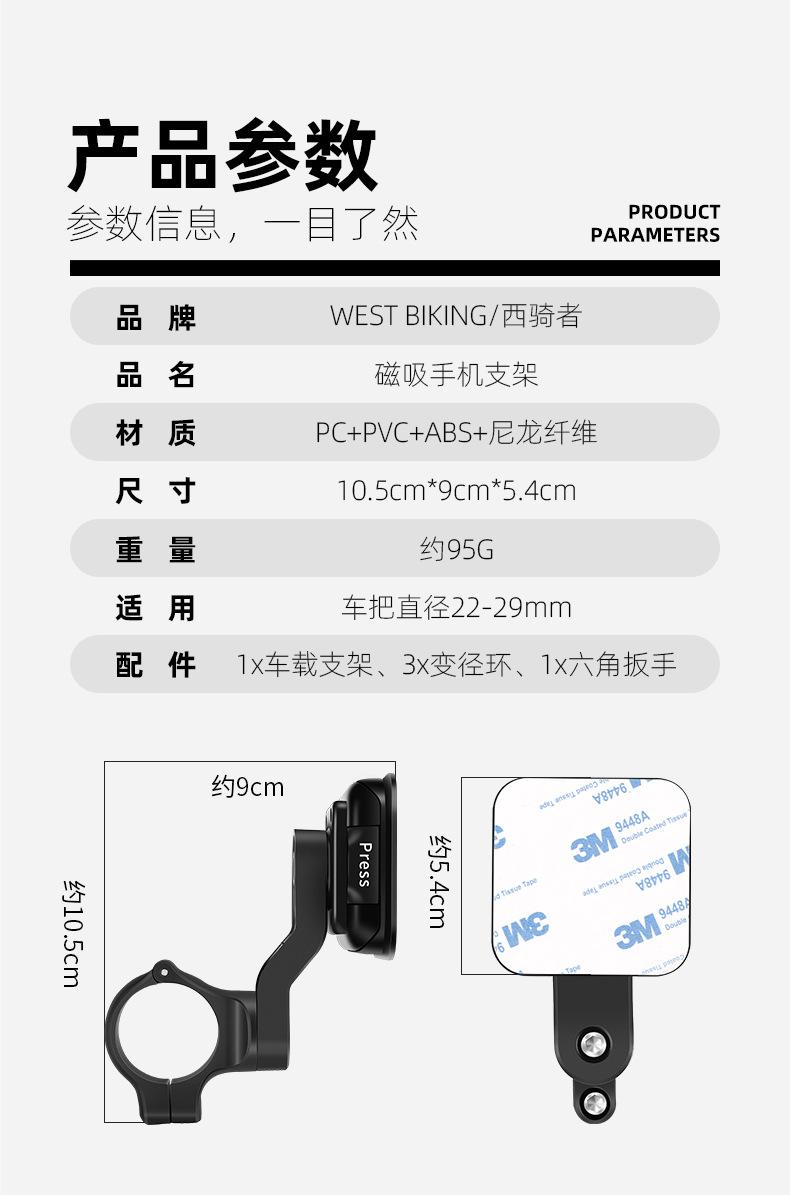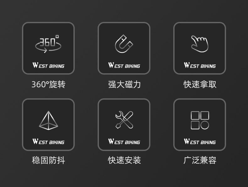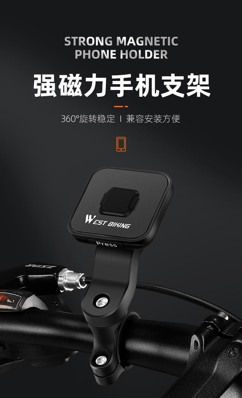 Soporte para Teléfono Móvil para Bicicleta West Rider Fuerte Succión Magnética Soporte para Teléfono Móvil Rotación de 360 Grados Soporte de Navegación Equipo de Ciclismo