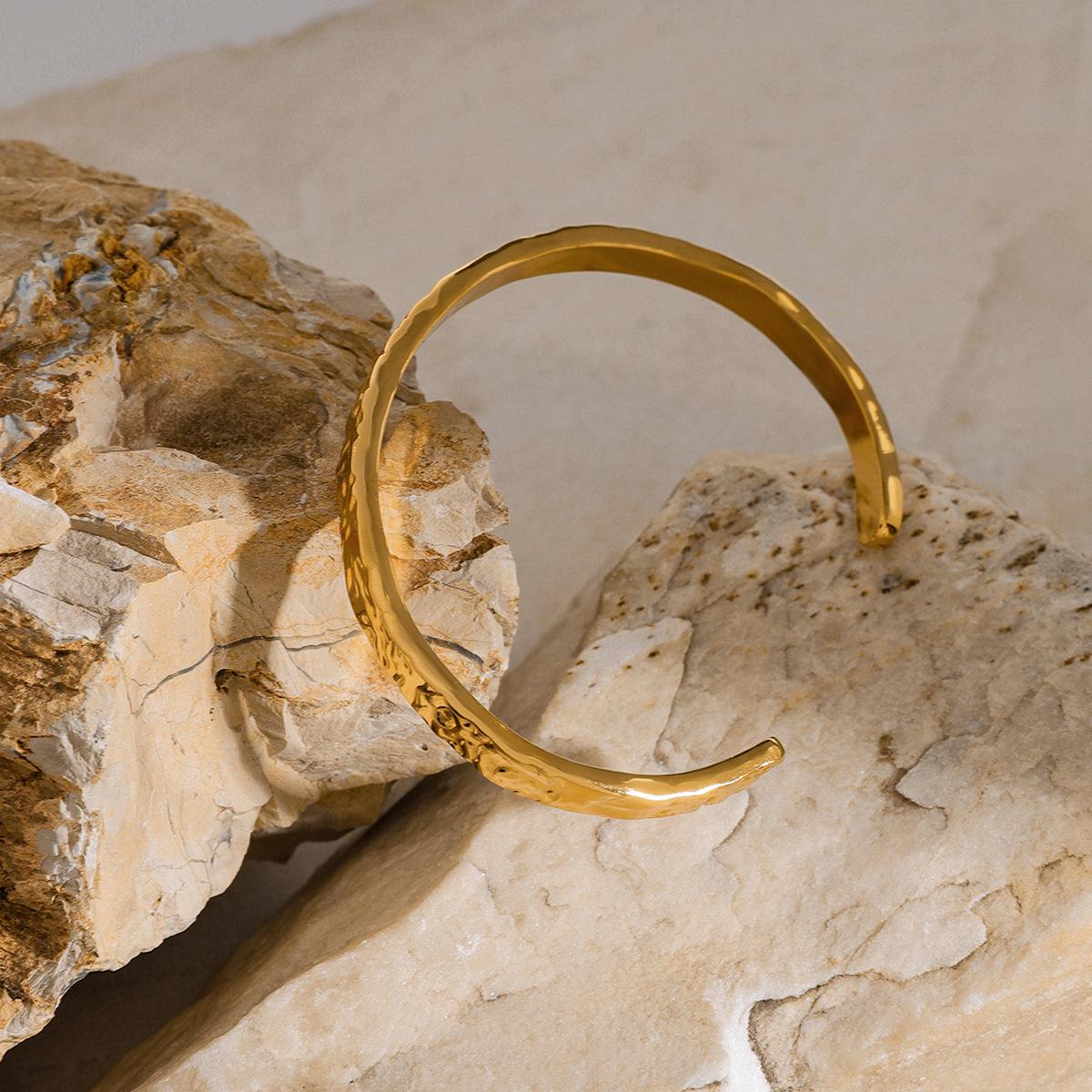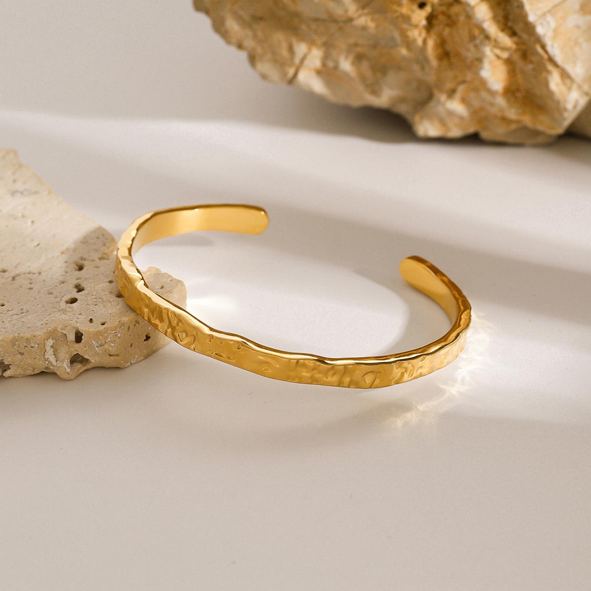 Pulsera Abierta de Acero Inoxidable Transfronteriza Europea y Americana con Patrón de Onda para Mujer, Pulsera Simple de Moda Nicho de Alta Gama con Acabado Brillante