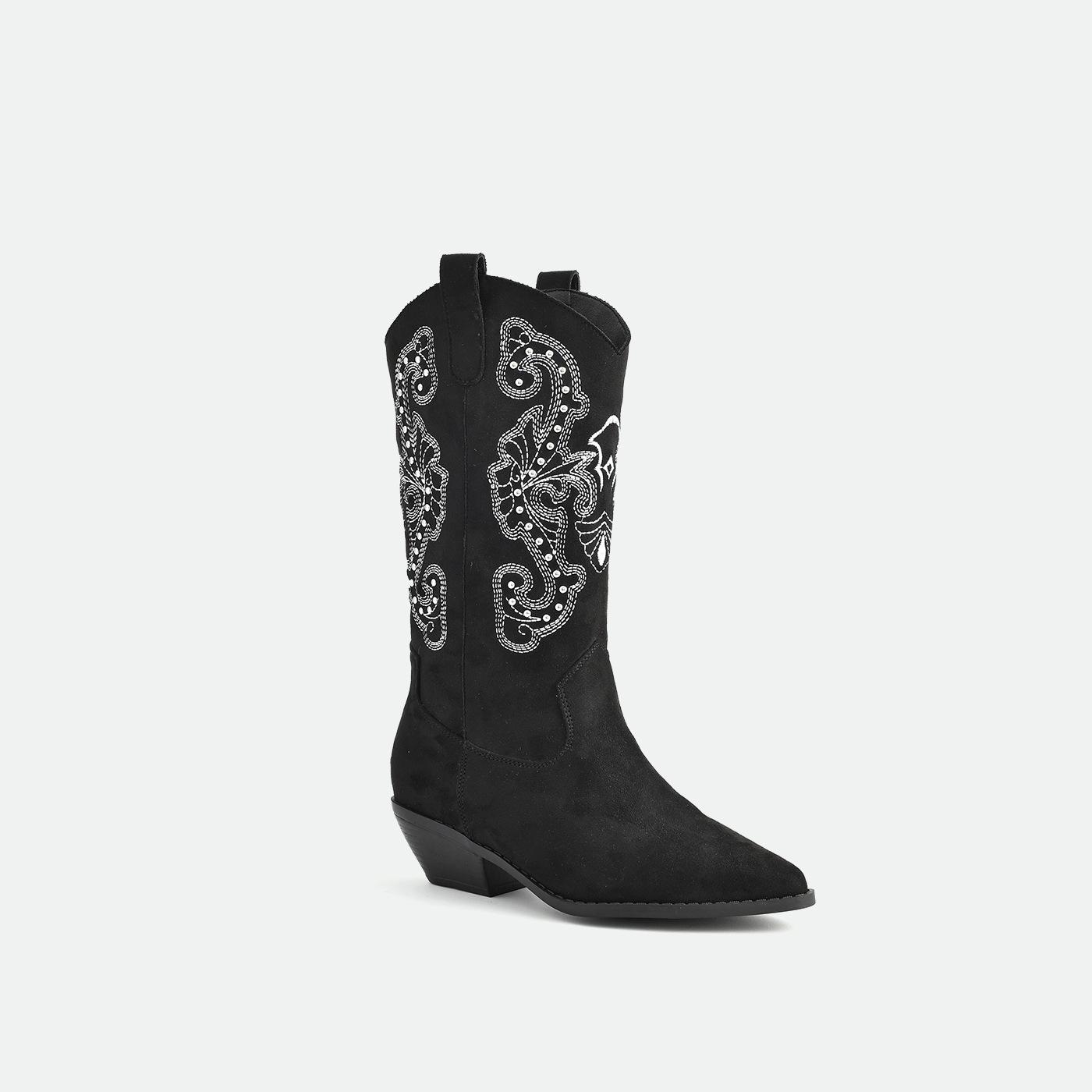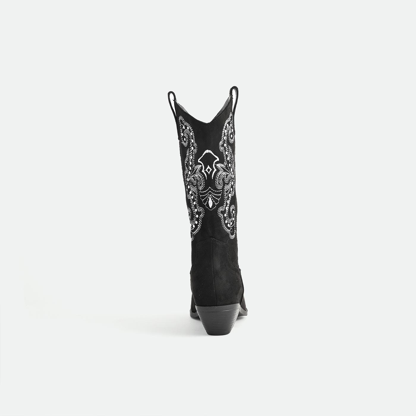 Botas largas para mujer, botas personalizadas nuevas retro bordadas, botas altas de caballero con tacón grueso, botas vaqueras occidentales, botas largas