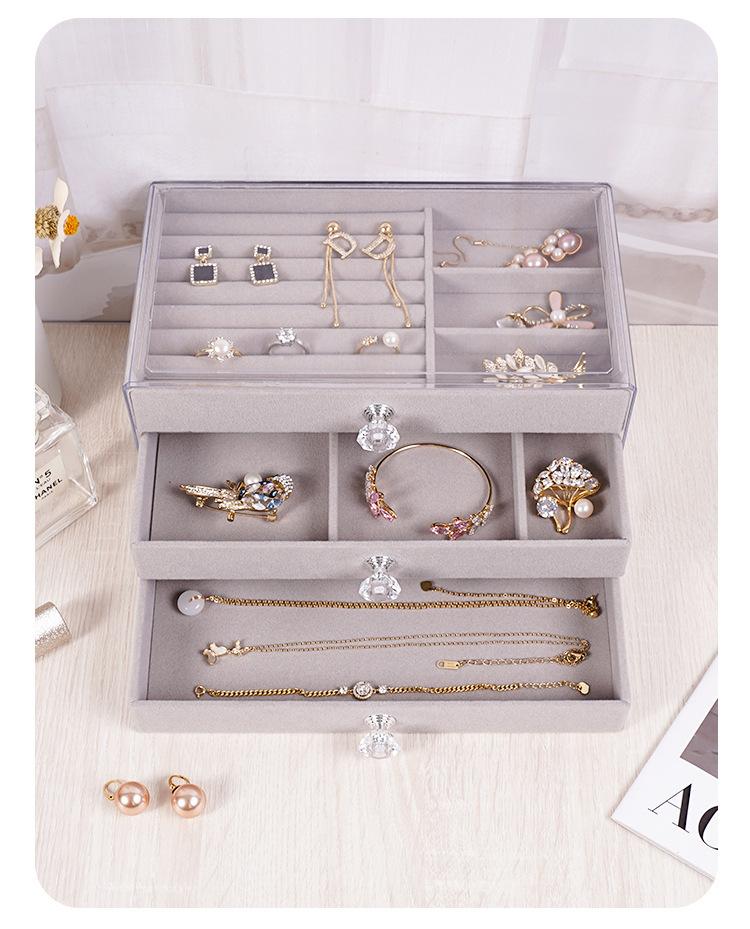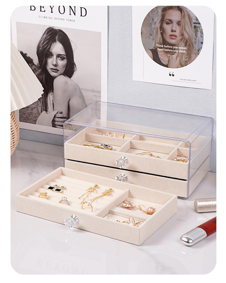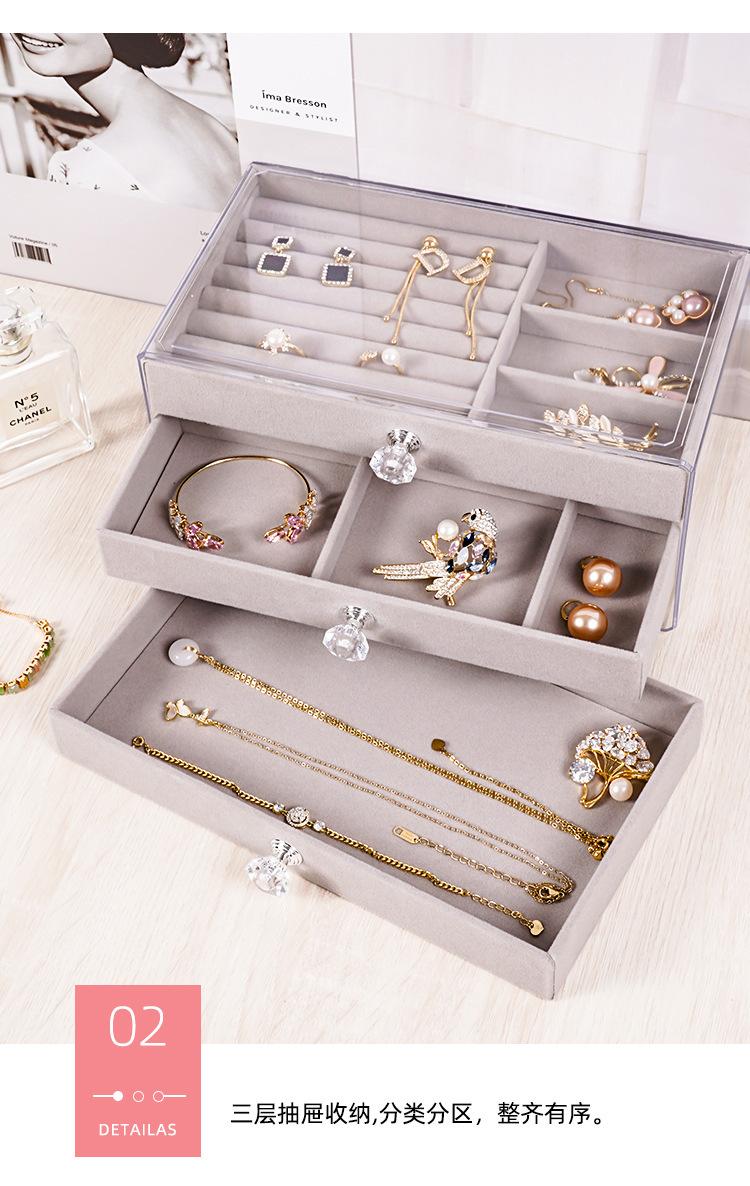 Joyero tipo cajón, multifuncional, de tres capas, para el hogar, escritorio, artículos diversos, expositor de joyas